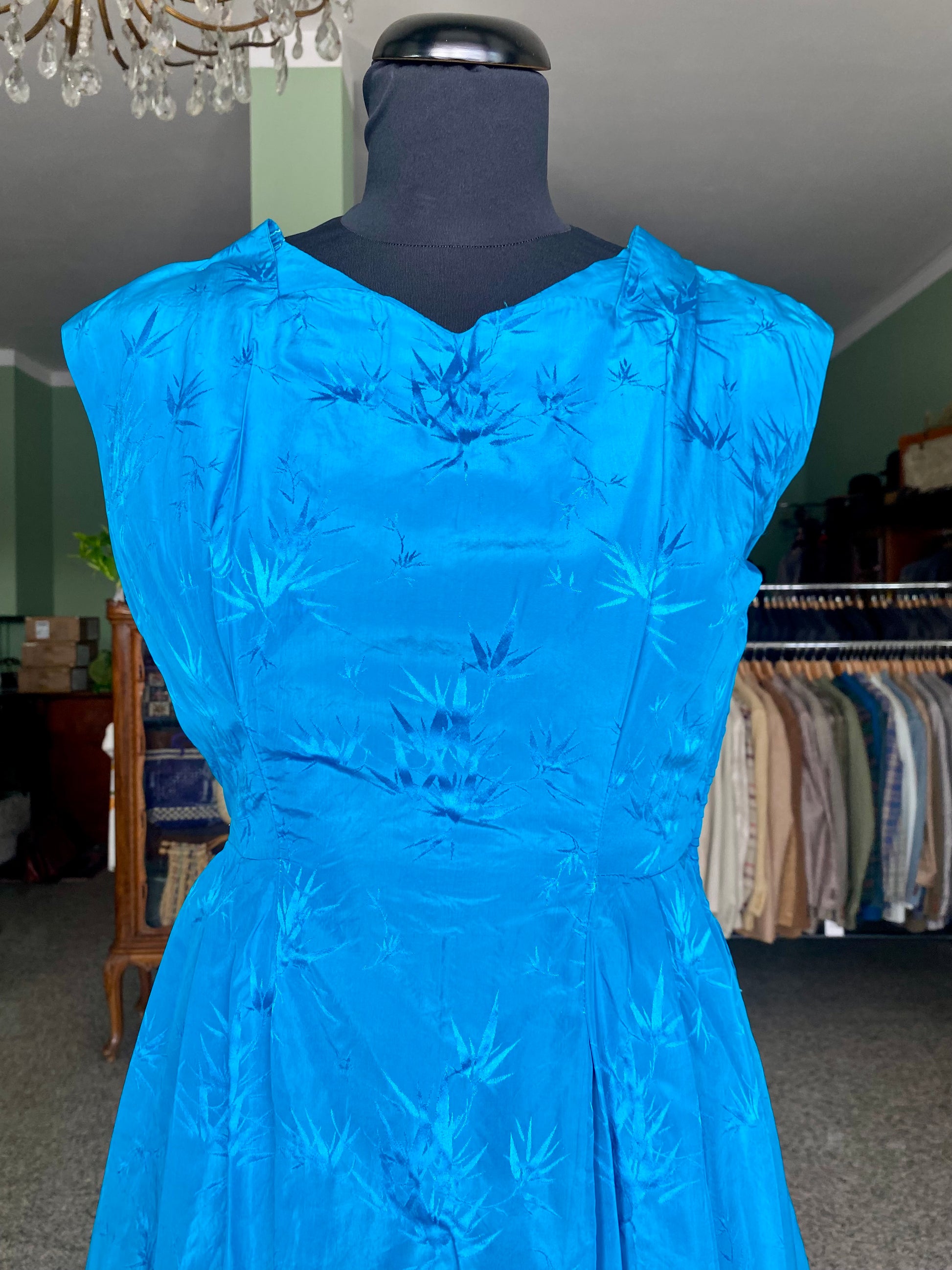 Abito anni ‘50 turchese in seta - TG. 40