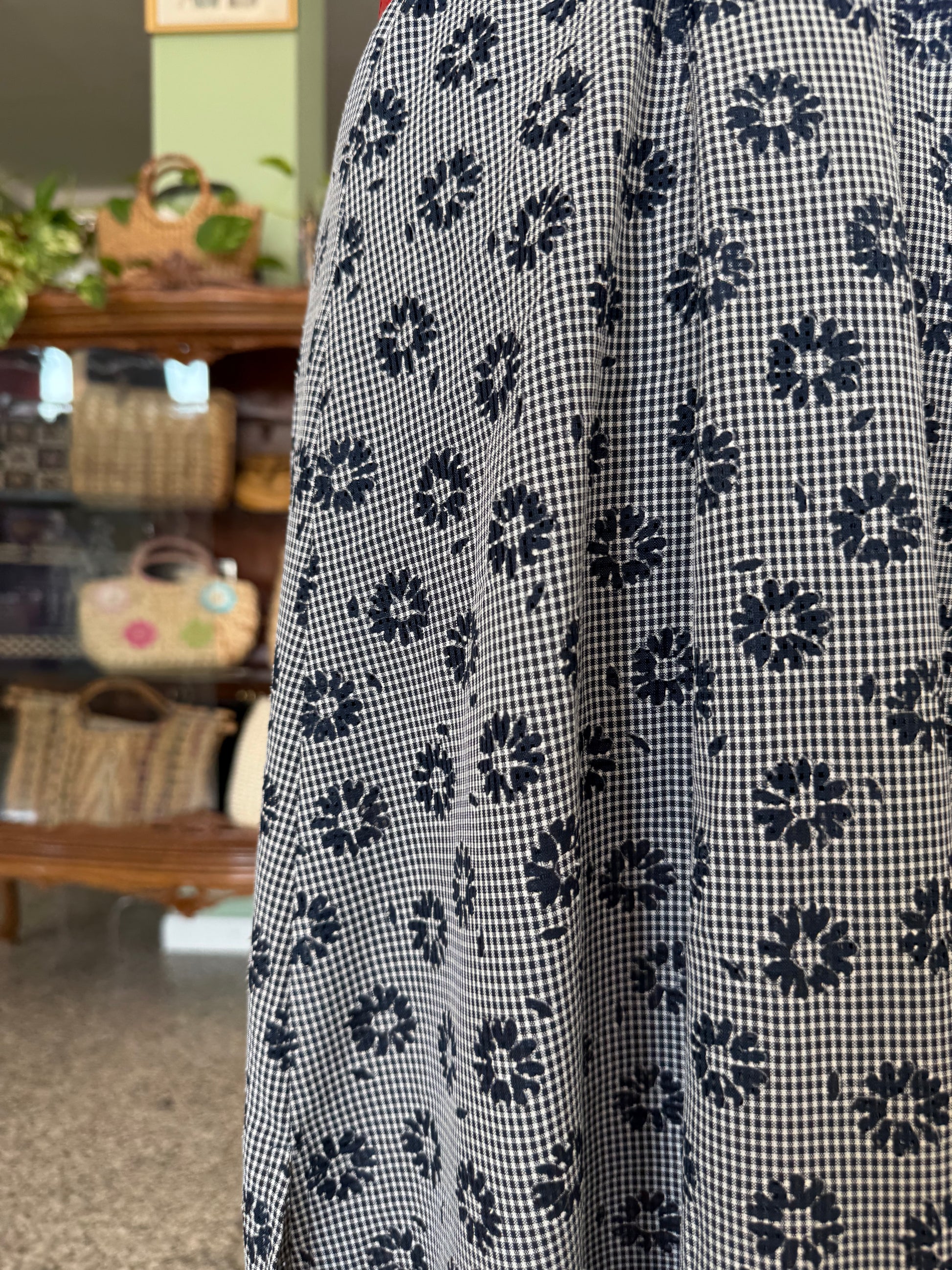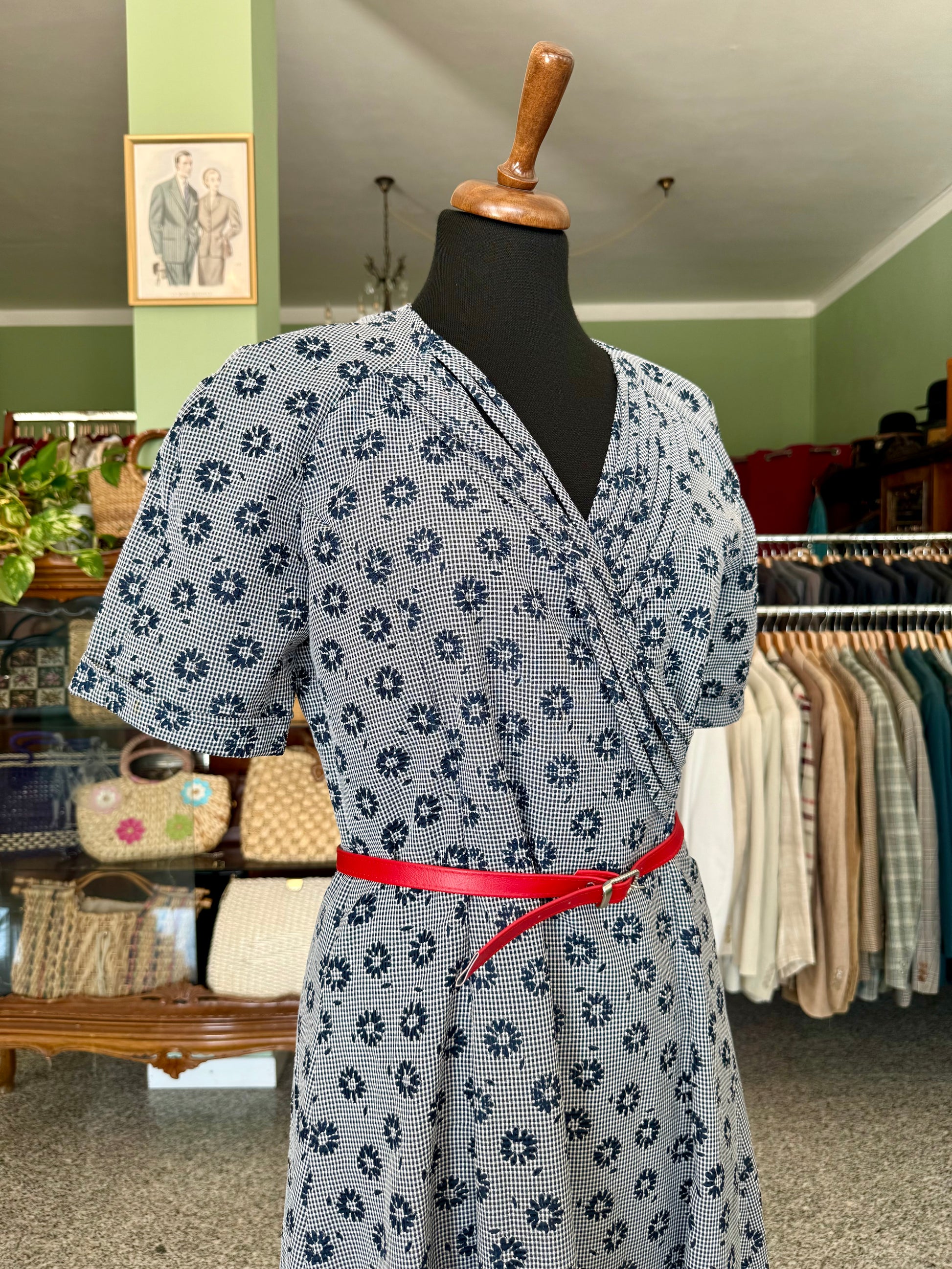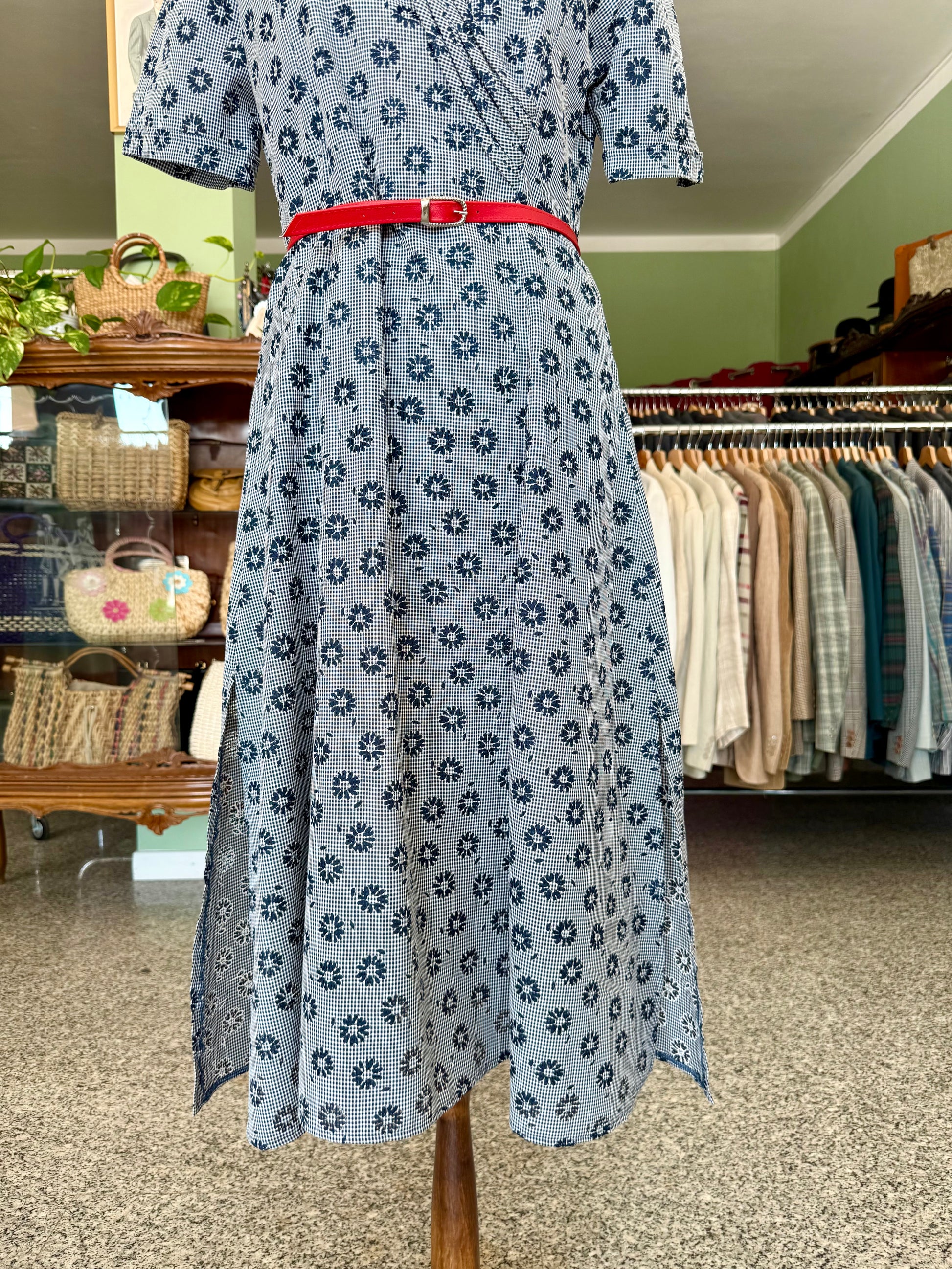 Abito anni ’70 a quadretti con margherite blu - TG. 44 circa