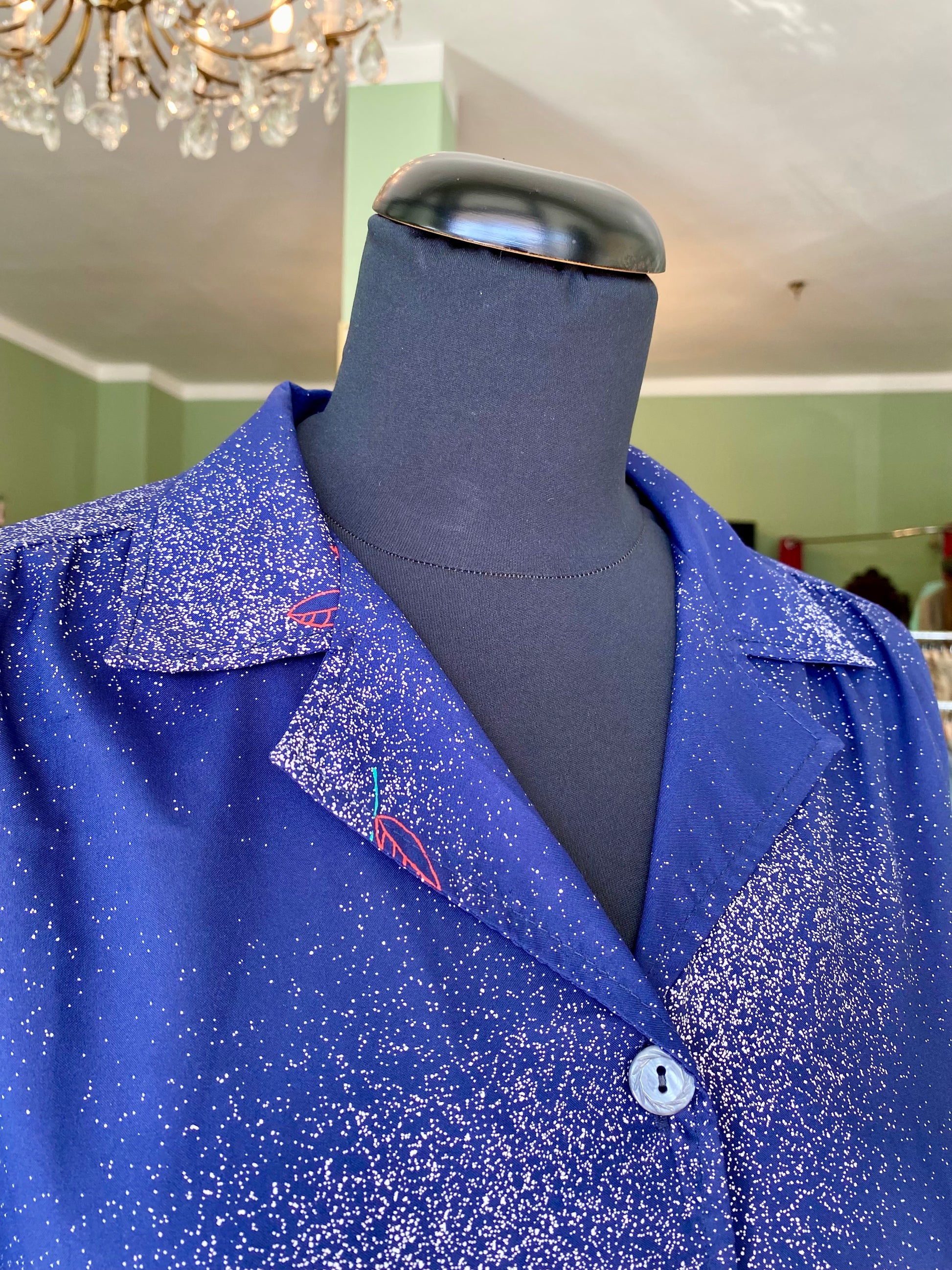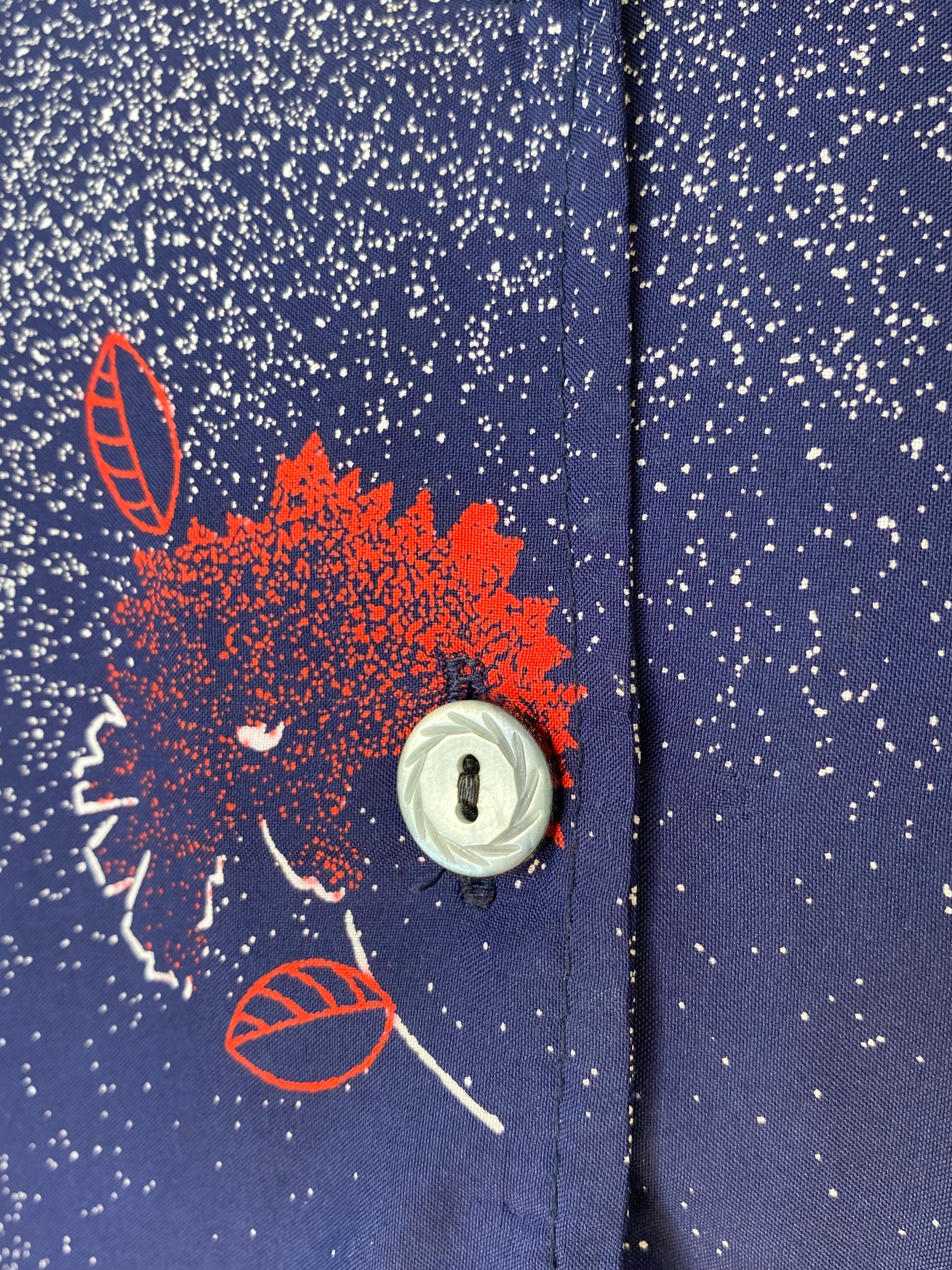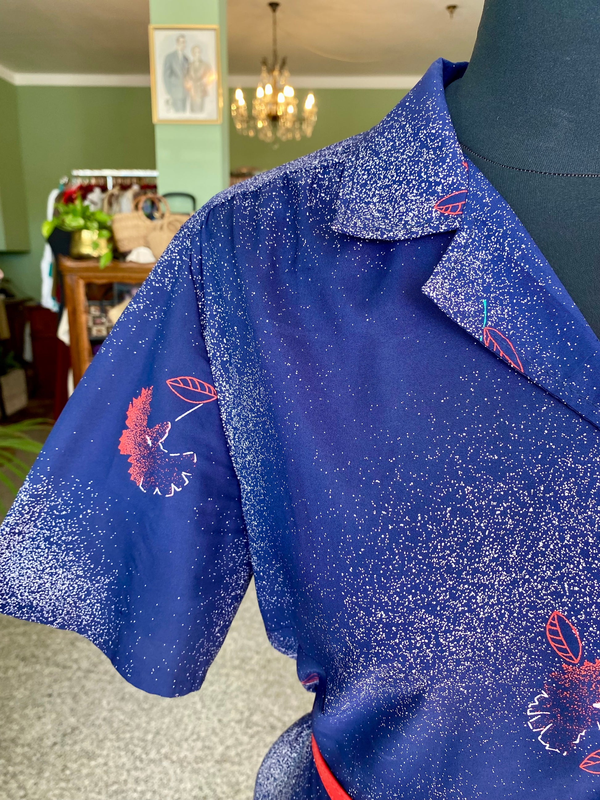 Abito anni ‘70 blu con fiori rossi - TG. 44/46