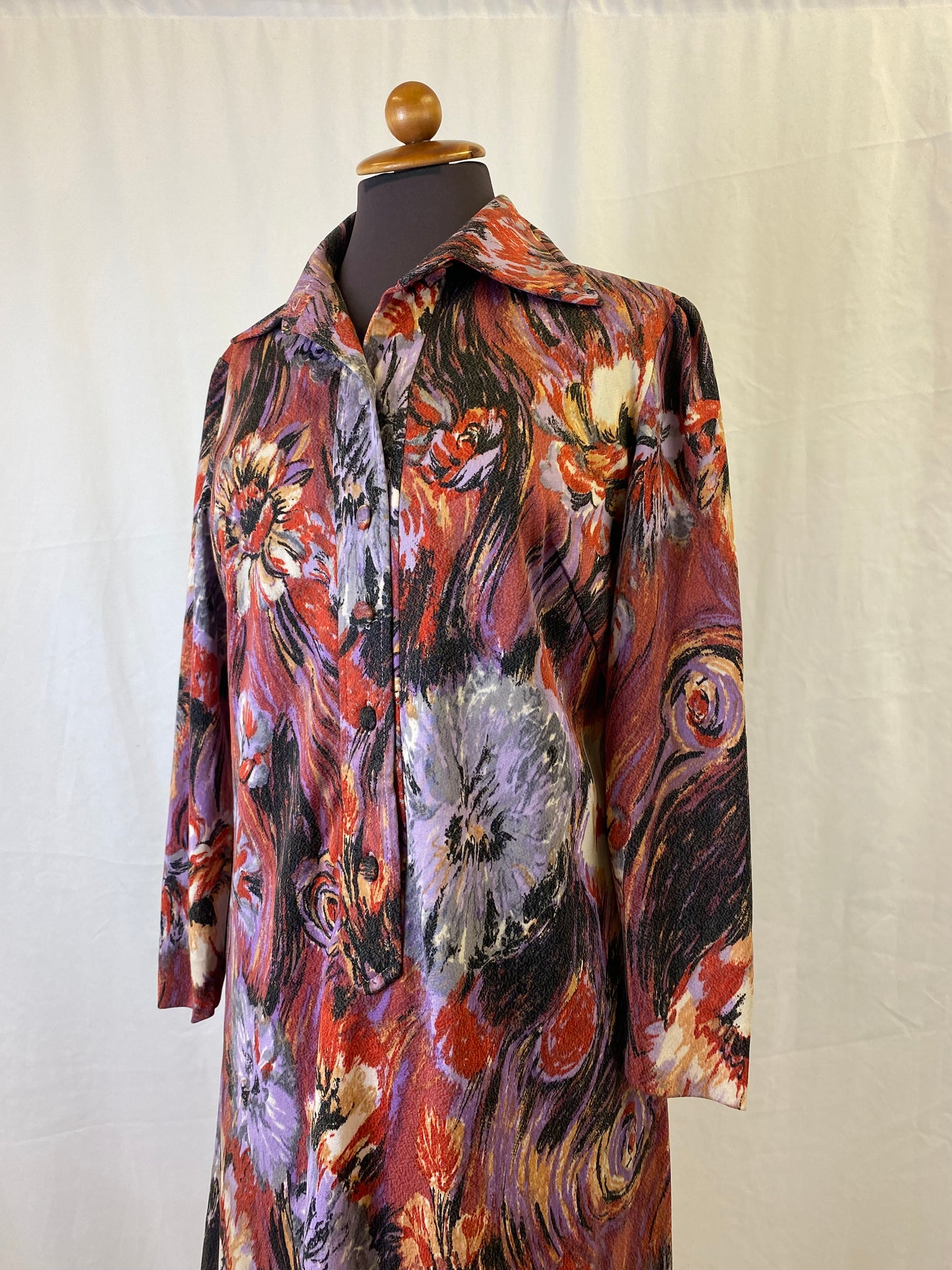 Abito anni ‘70 con fantasia floreale, sembra dipinta a mano