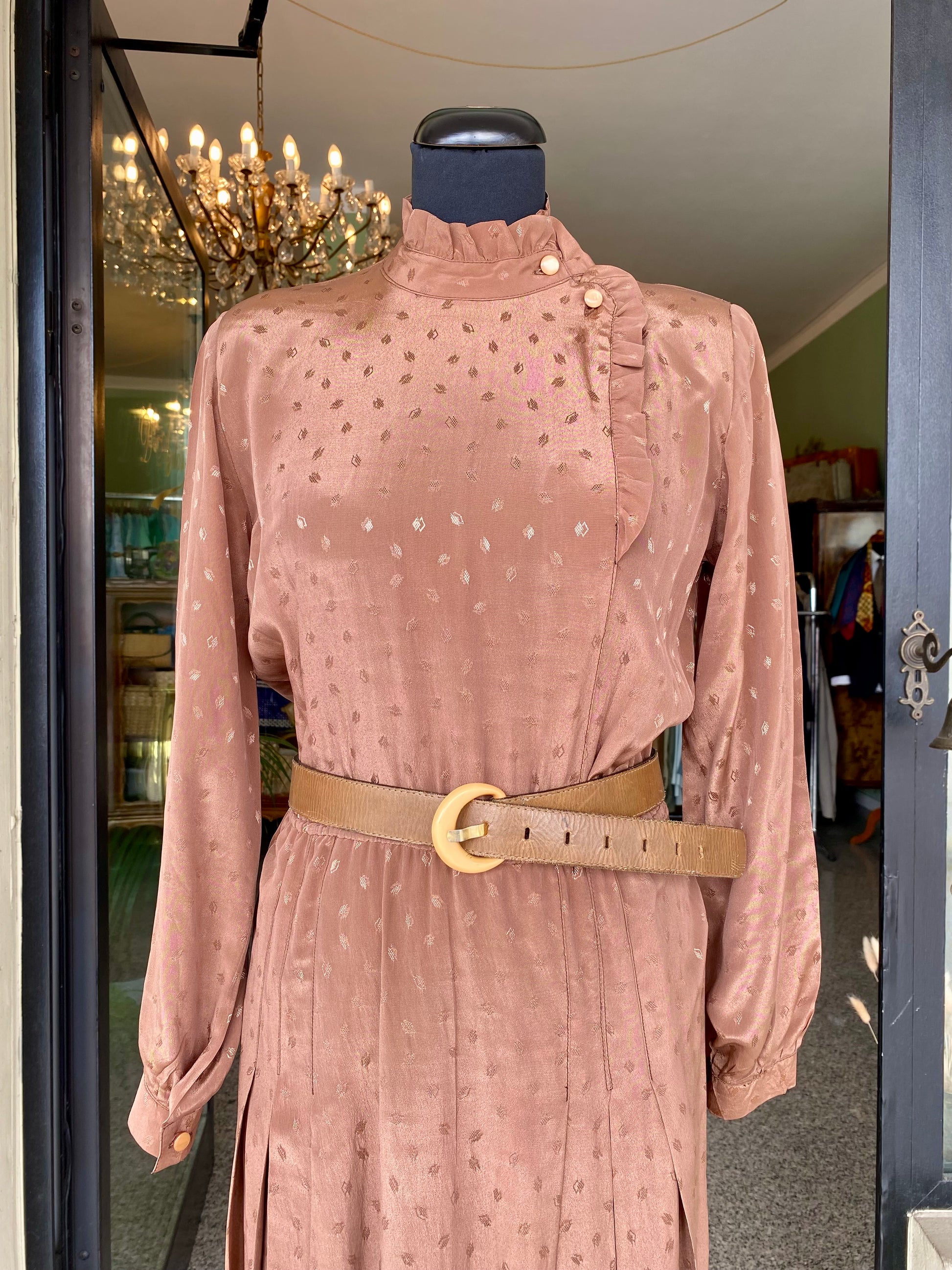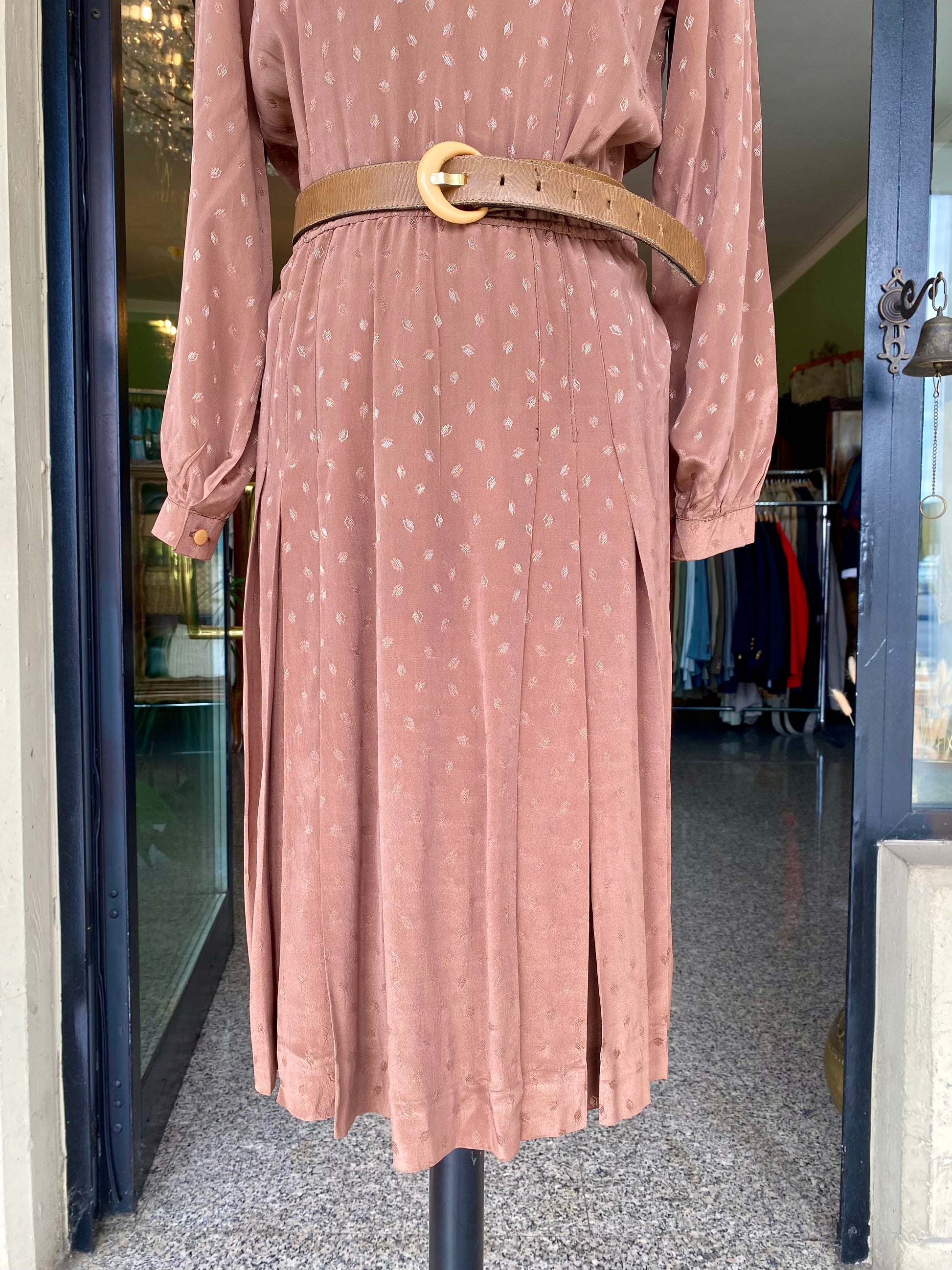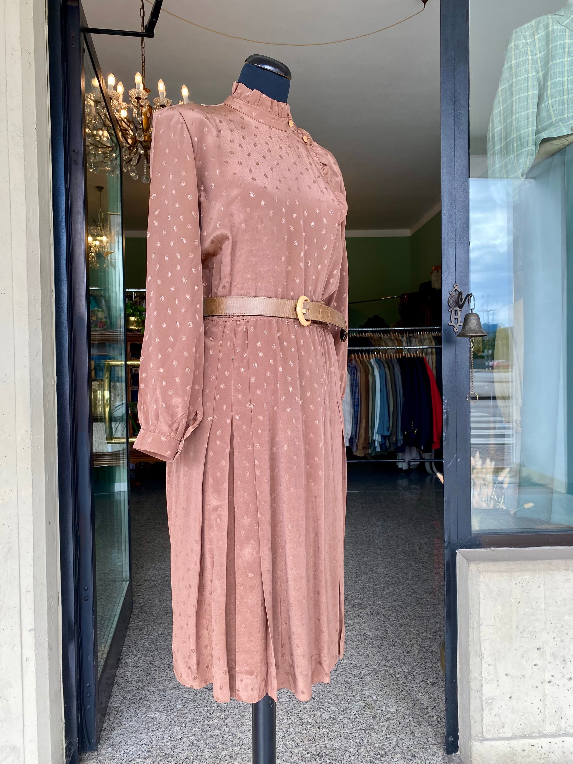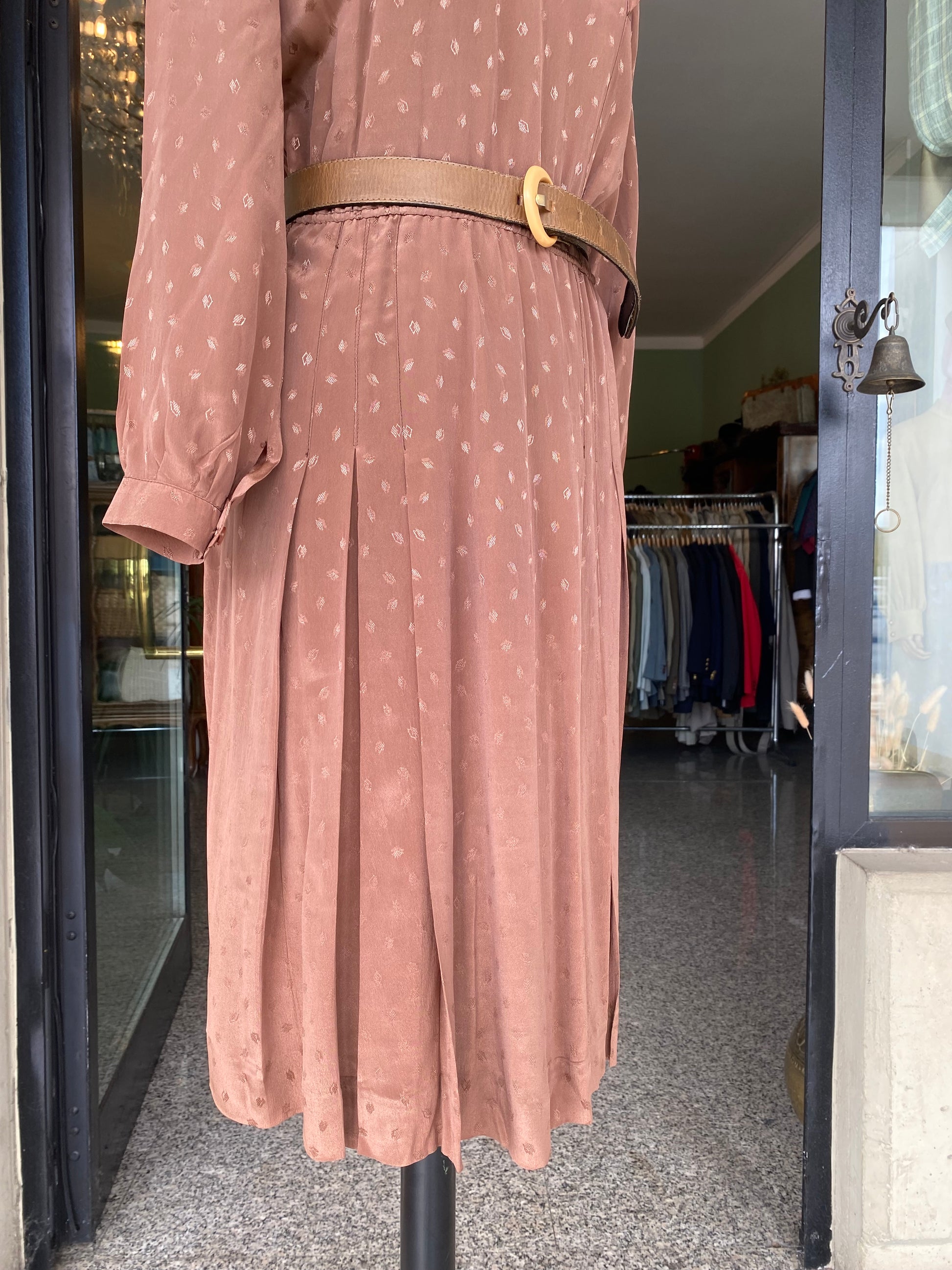 Abito in pura seta color cacao con dettagli rétro - TG. 42/44