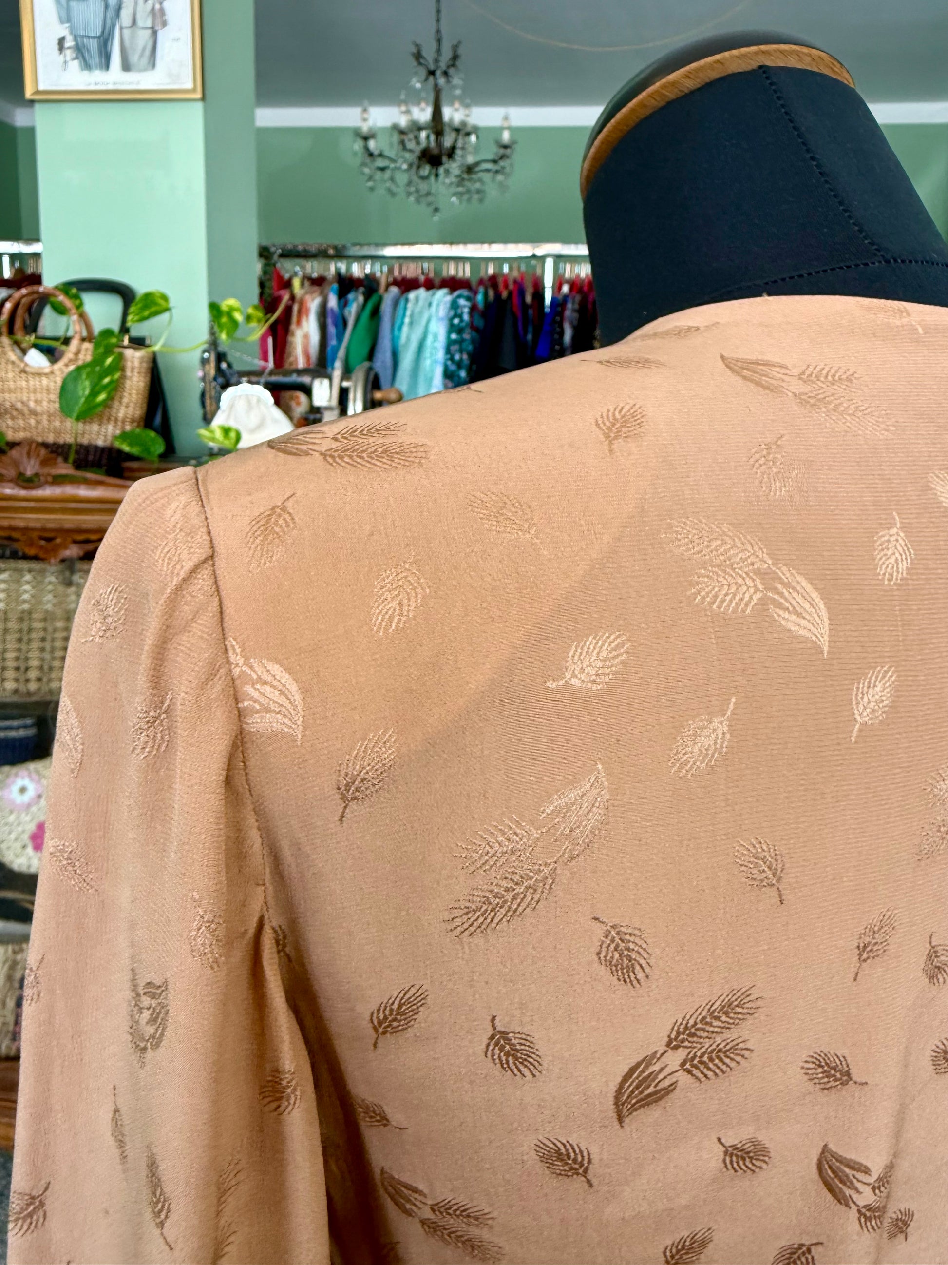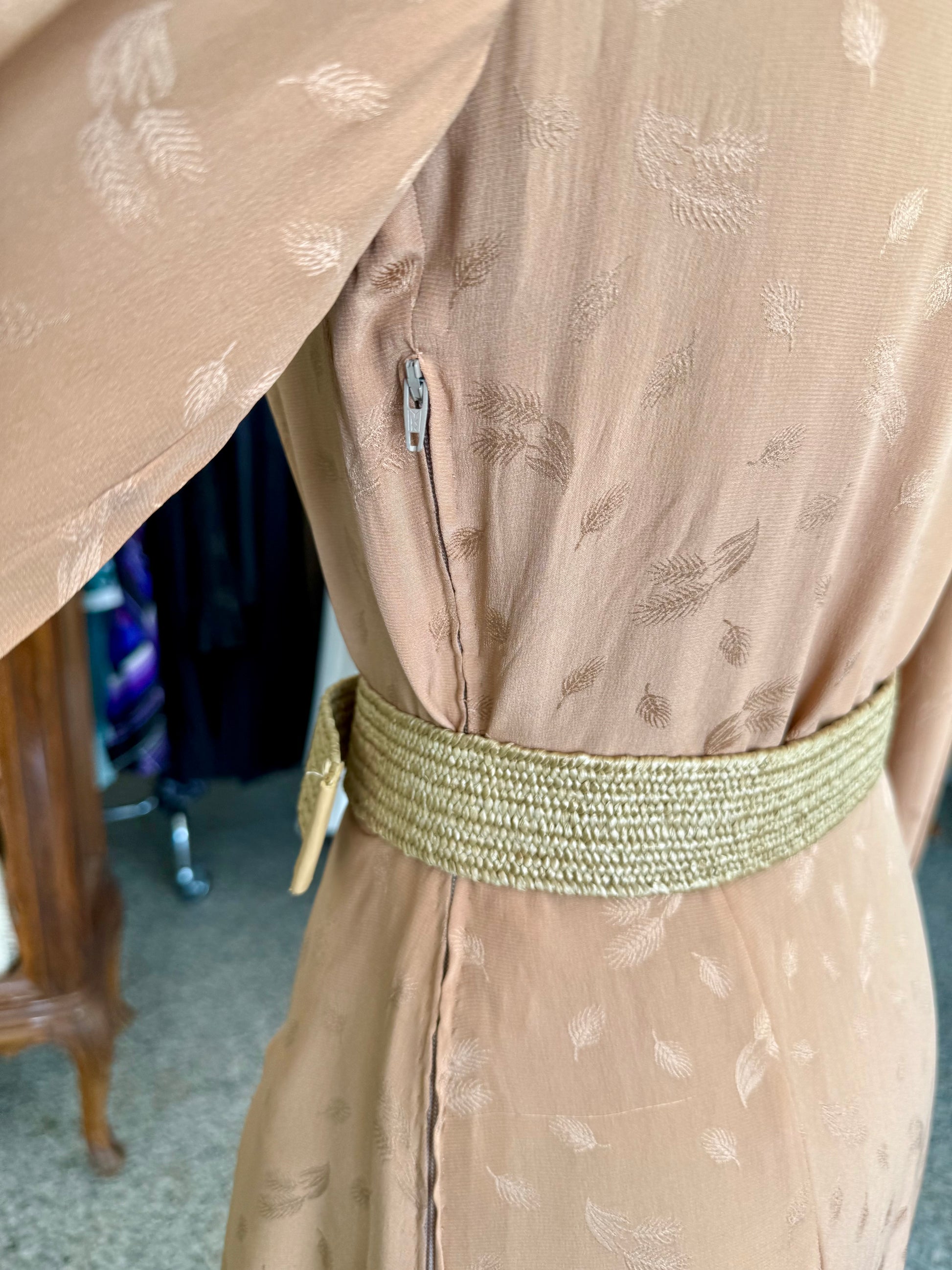Abito sartoriale anni ’70 in pura seta – Bronzo con motivo jacquard - TG. 40