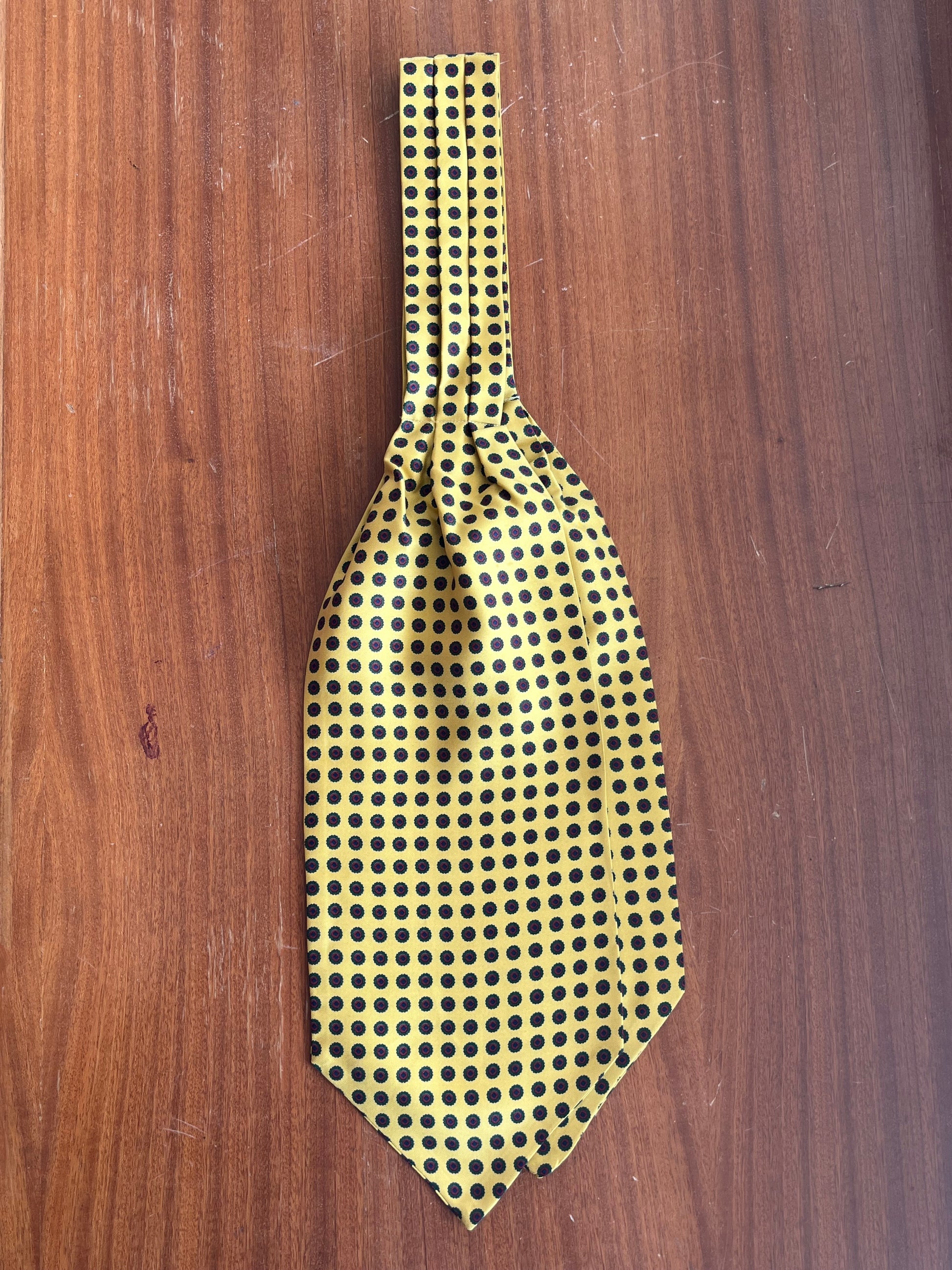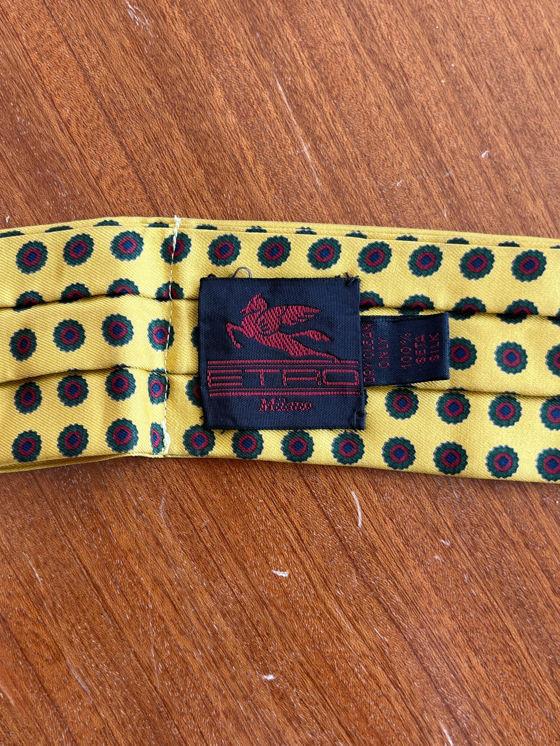 Ascot Etro in 100% pura seta. L‘ascot è di colore giallo con micro-fantasia a cerchi.