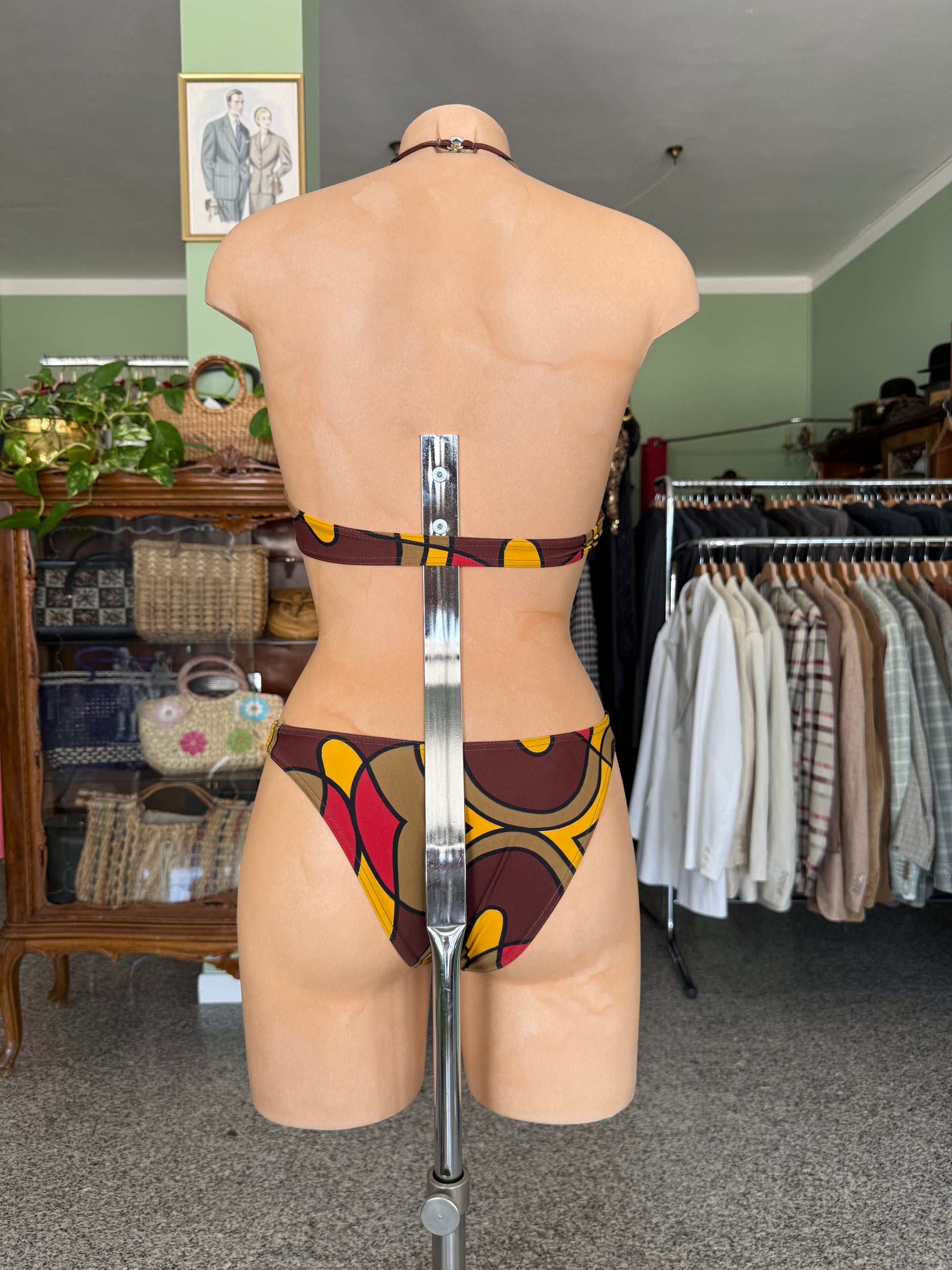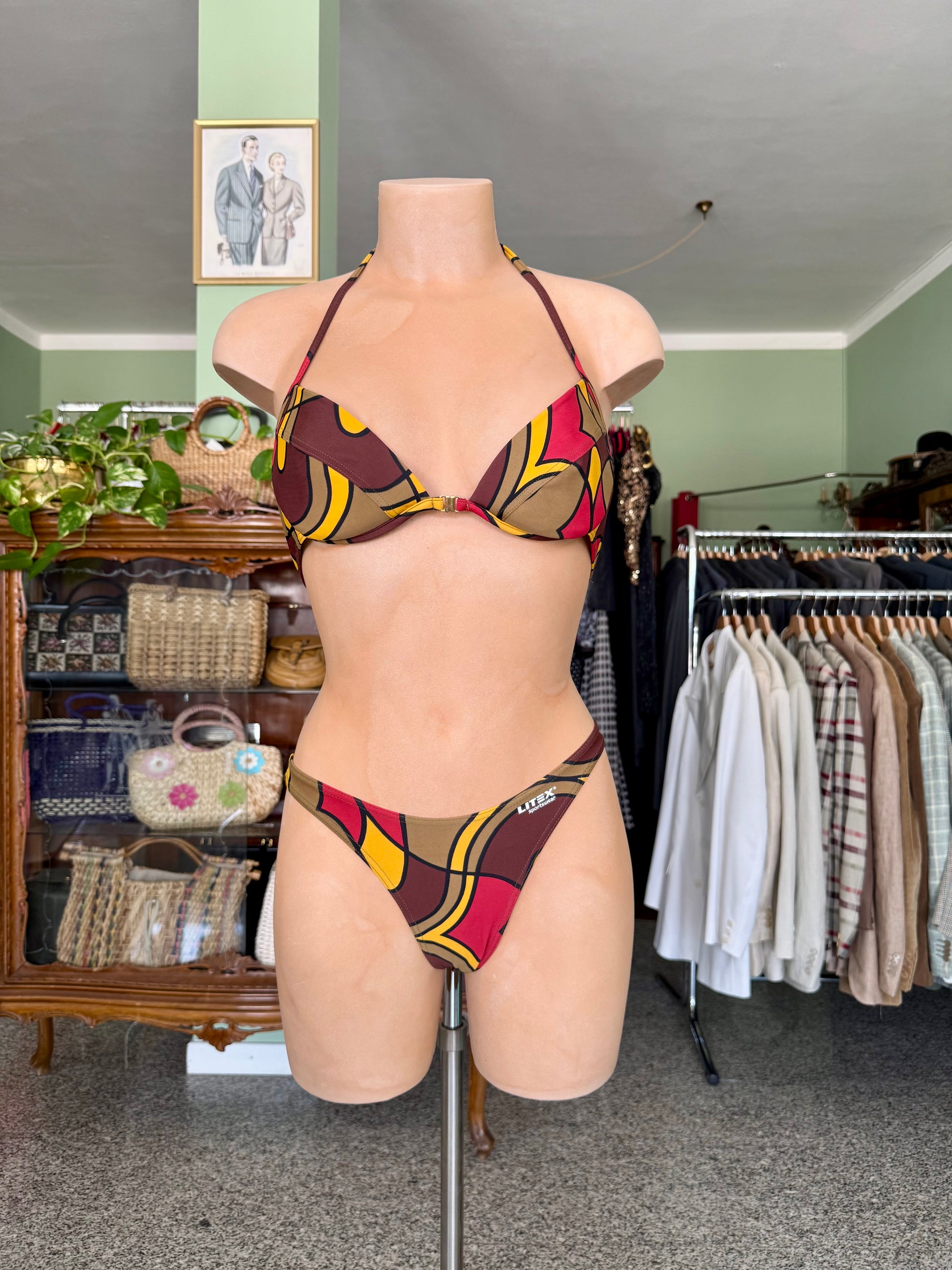 Bikini anni 90 grafico marrone/rosso/giallo (LITEX) - TG. 38