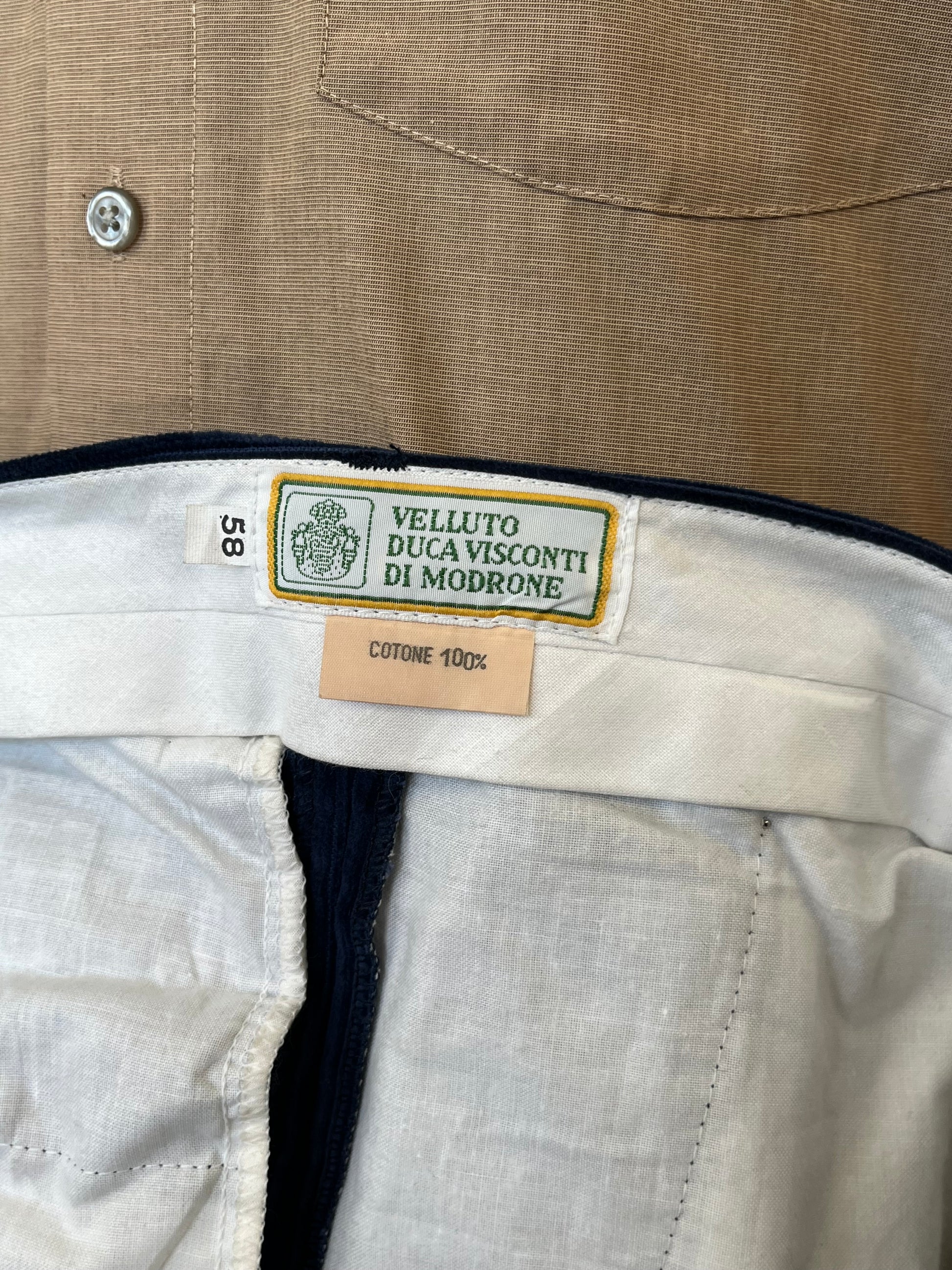 Calzoni Duca Visconti di Modrone anni ‘80 in velluto color blu vivace.