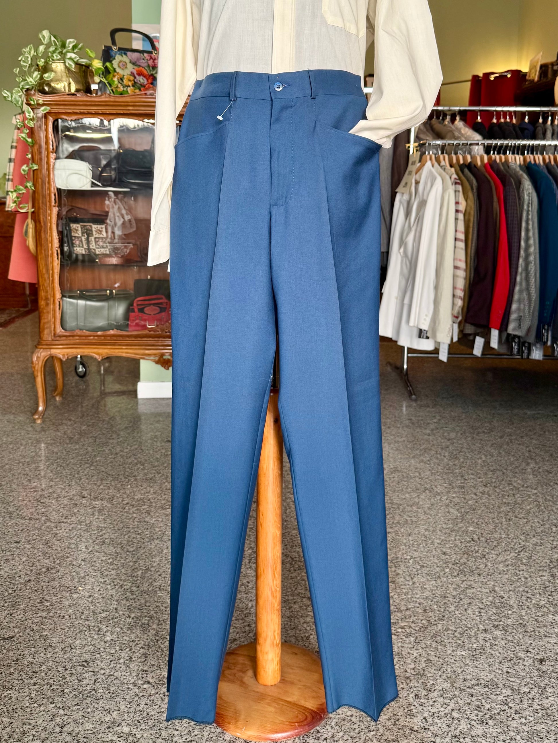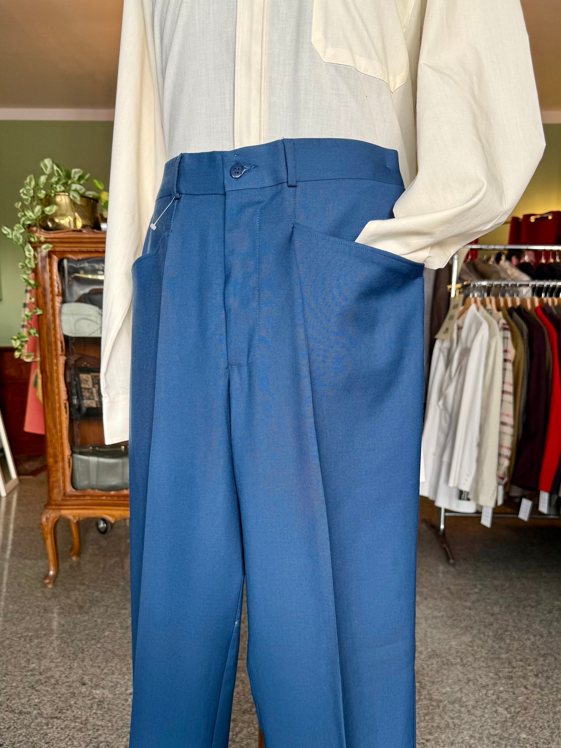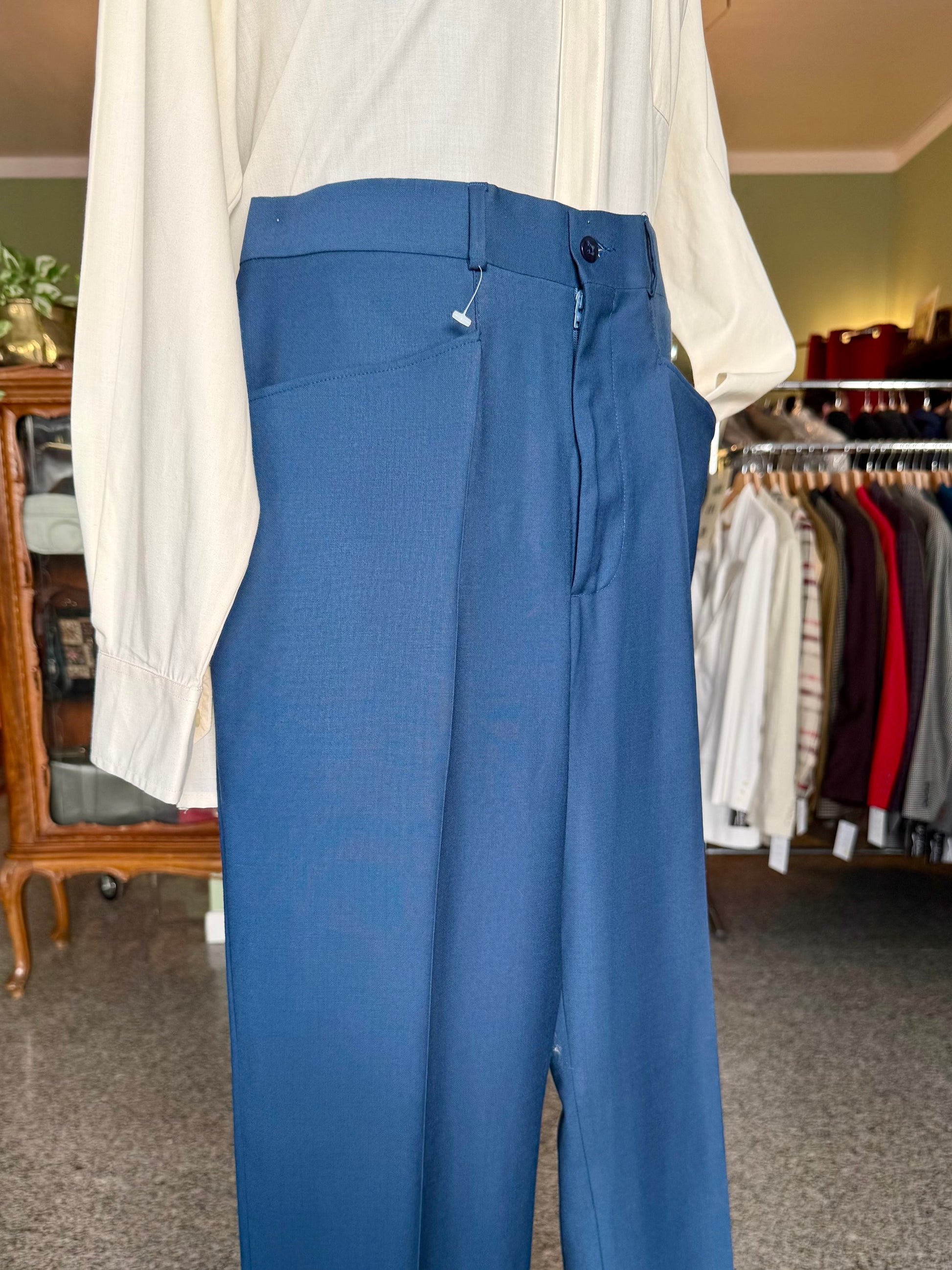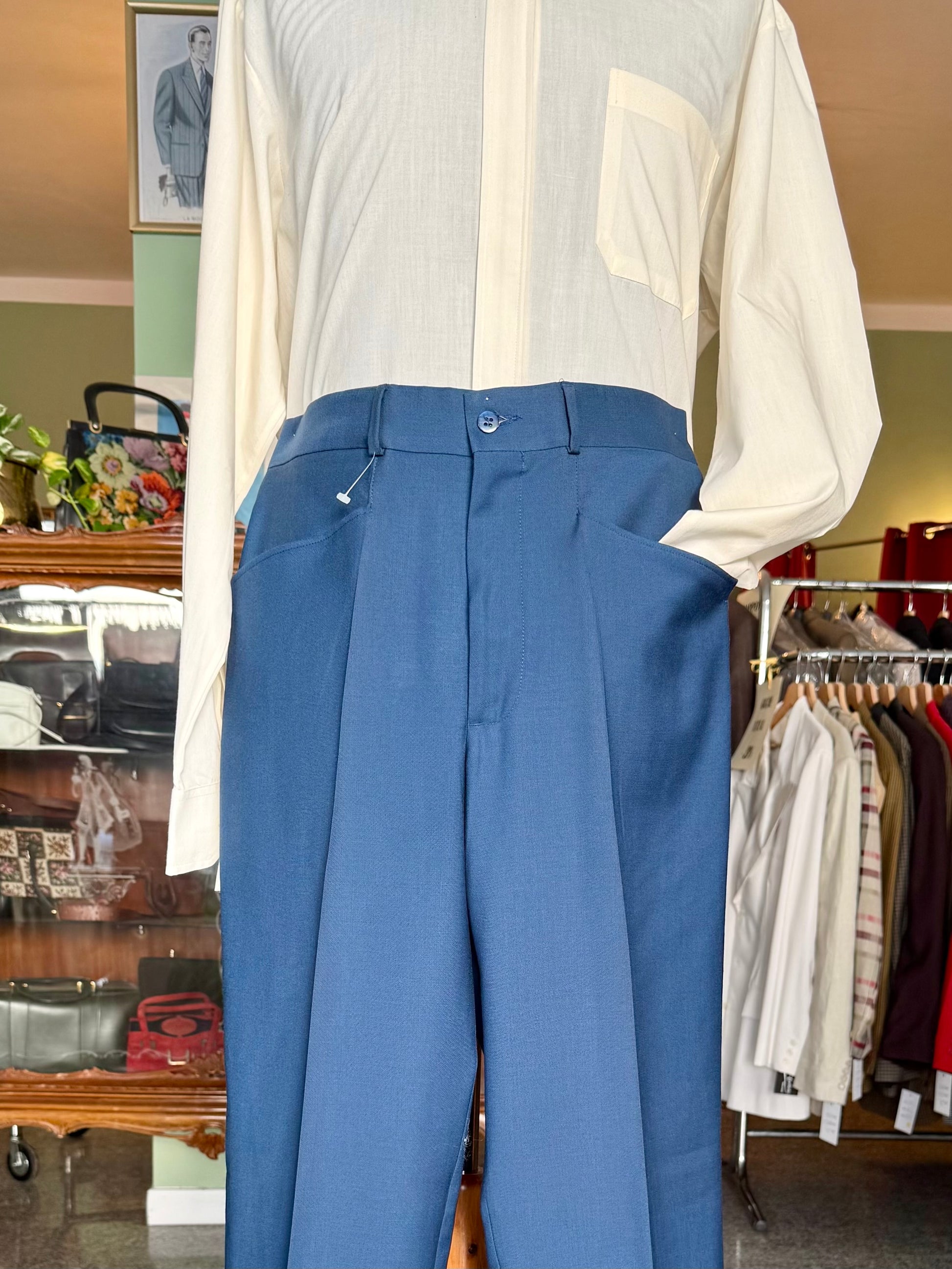 I calzoni sono un fondo di magazzino, quindi mai utilizzati, con etichette originali dell’epoca e orlo ancora da chiudere.