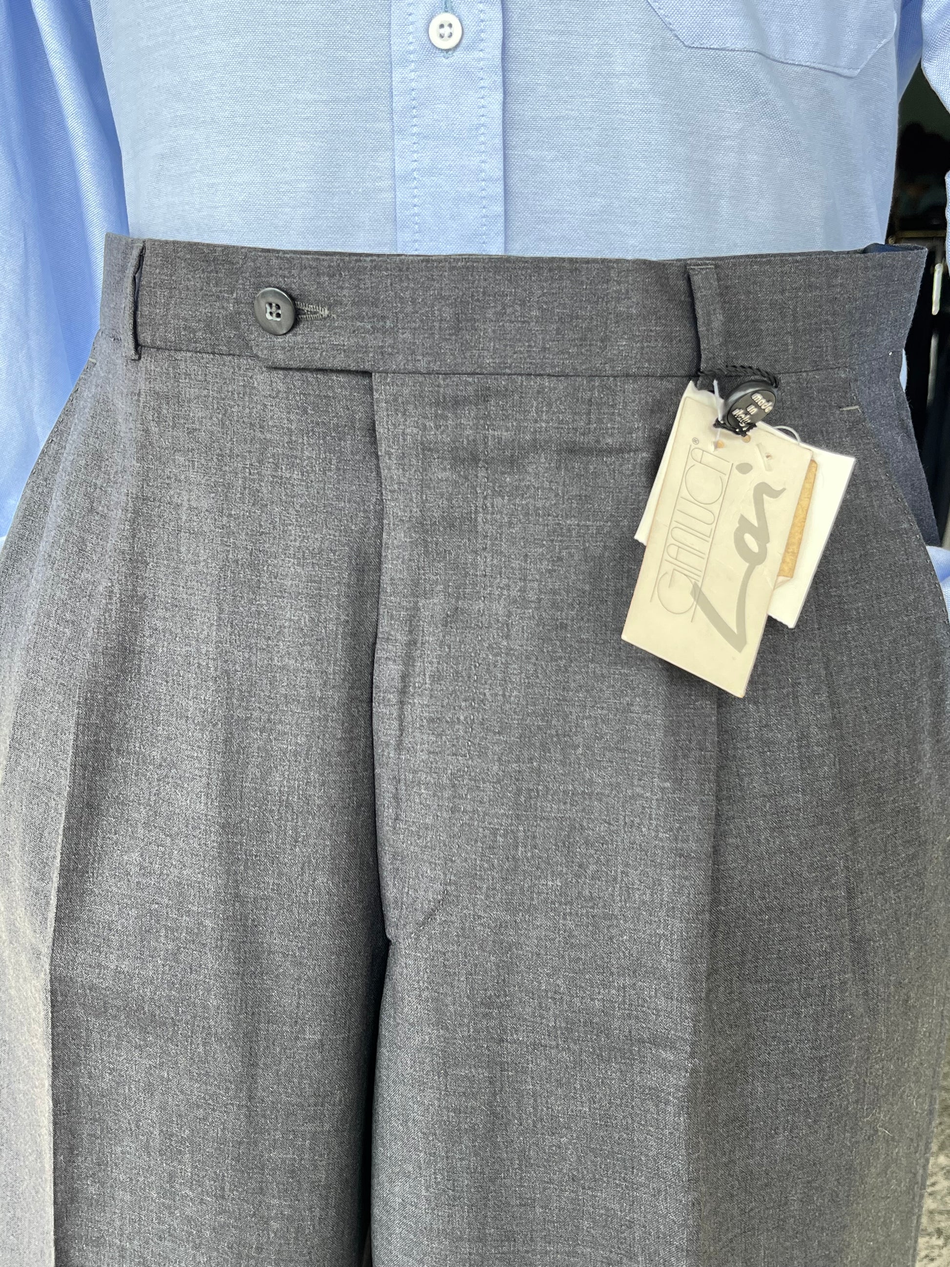 Calzoni anni ‘80 in 100% puro fresco di lana, molto leggero, color grigio antracite.
