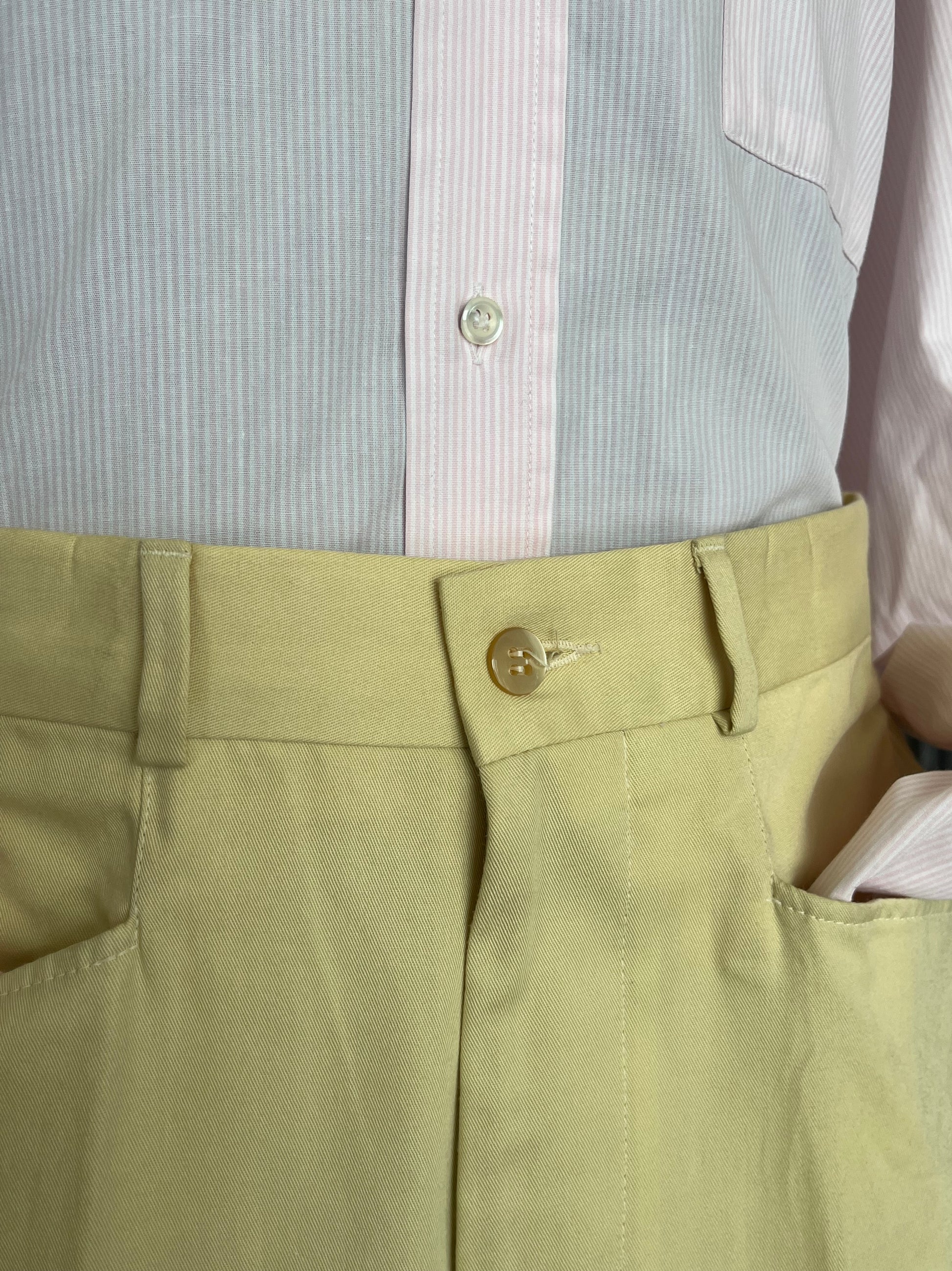 Calzoni anni ‘80 in 100% puro cotone, molto leggero, color giallo tenue.
