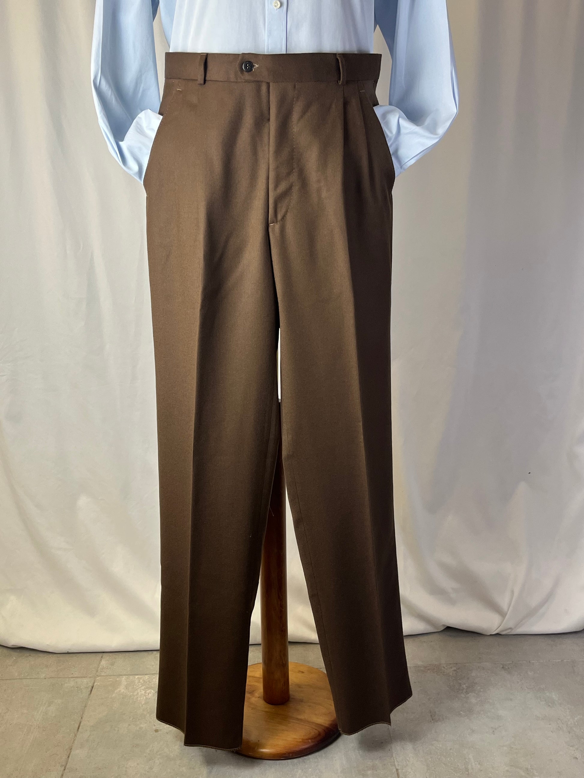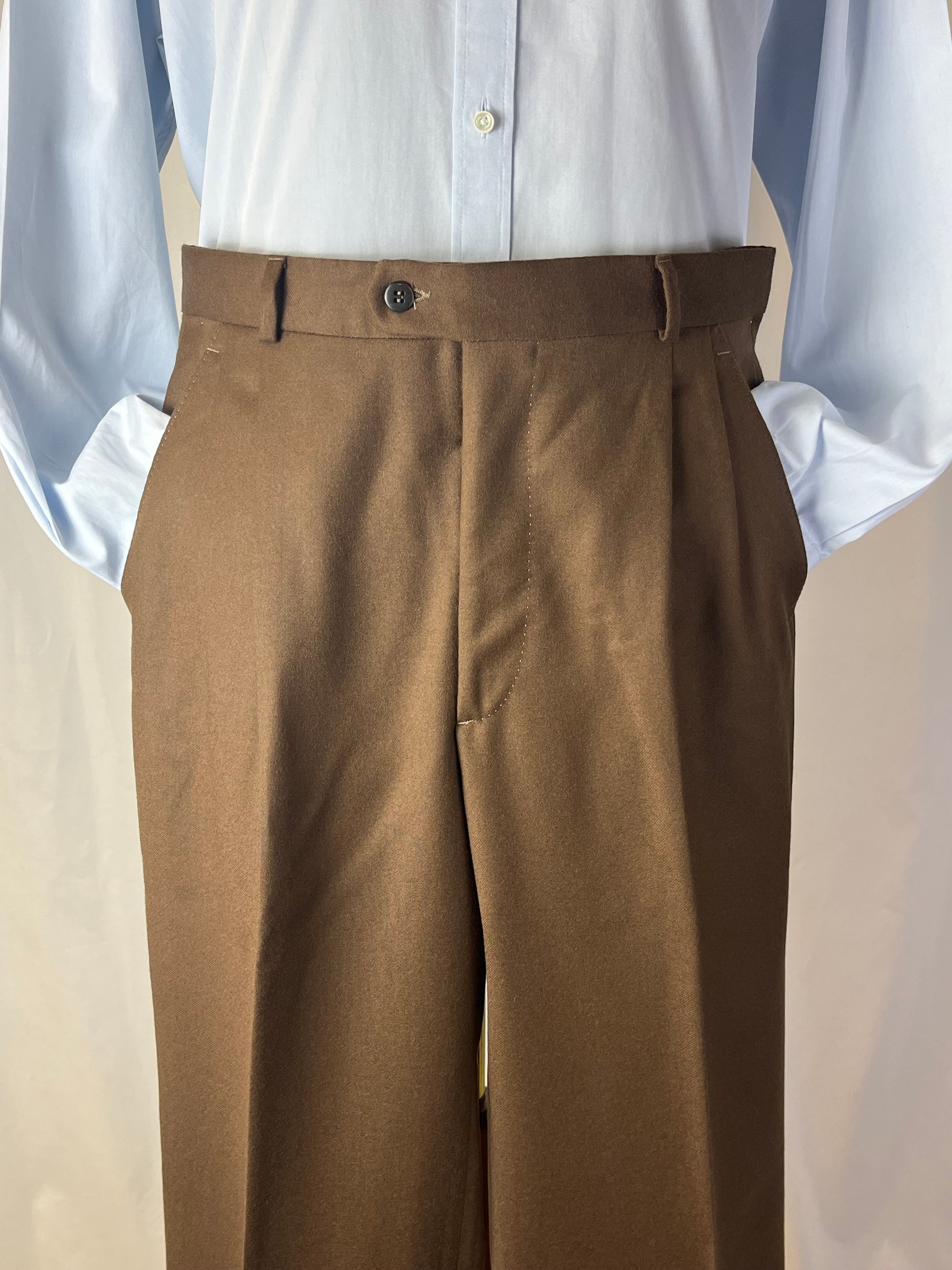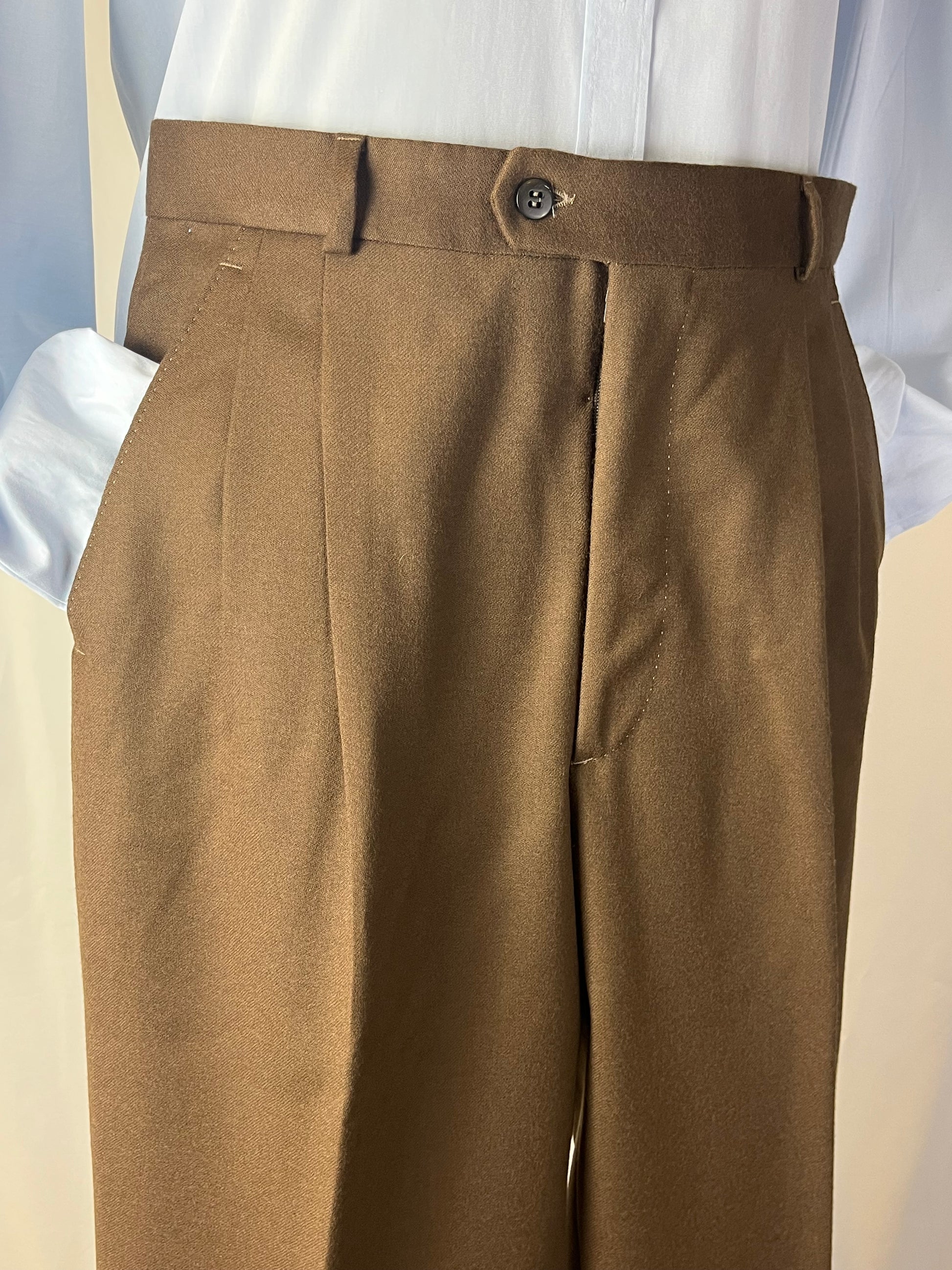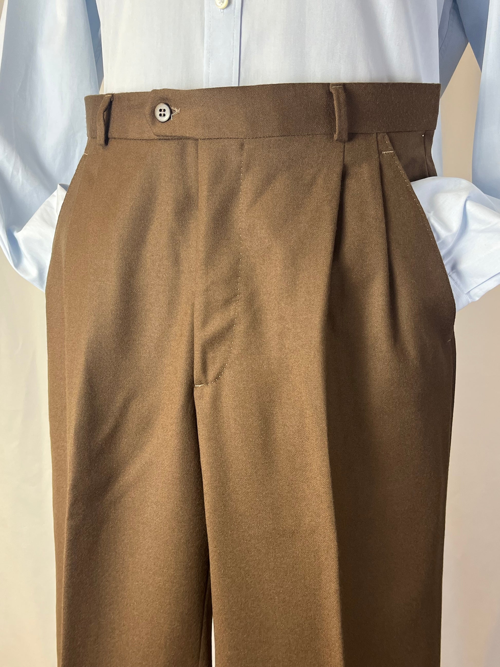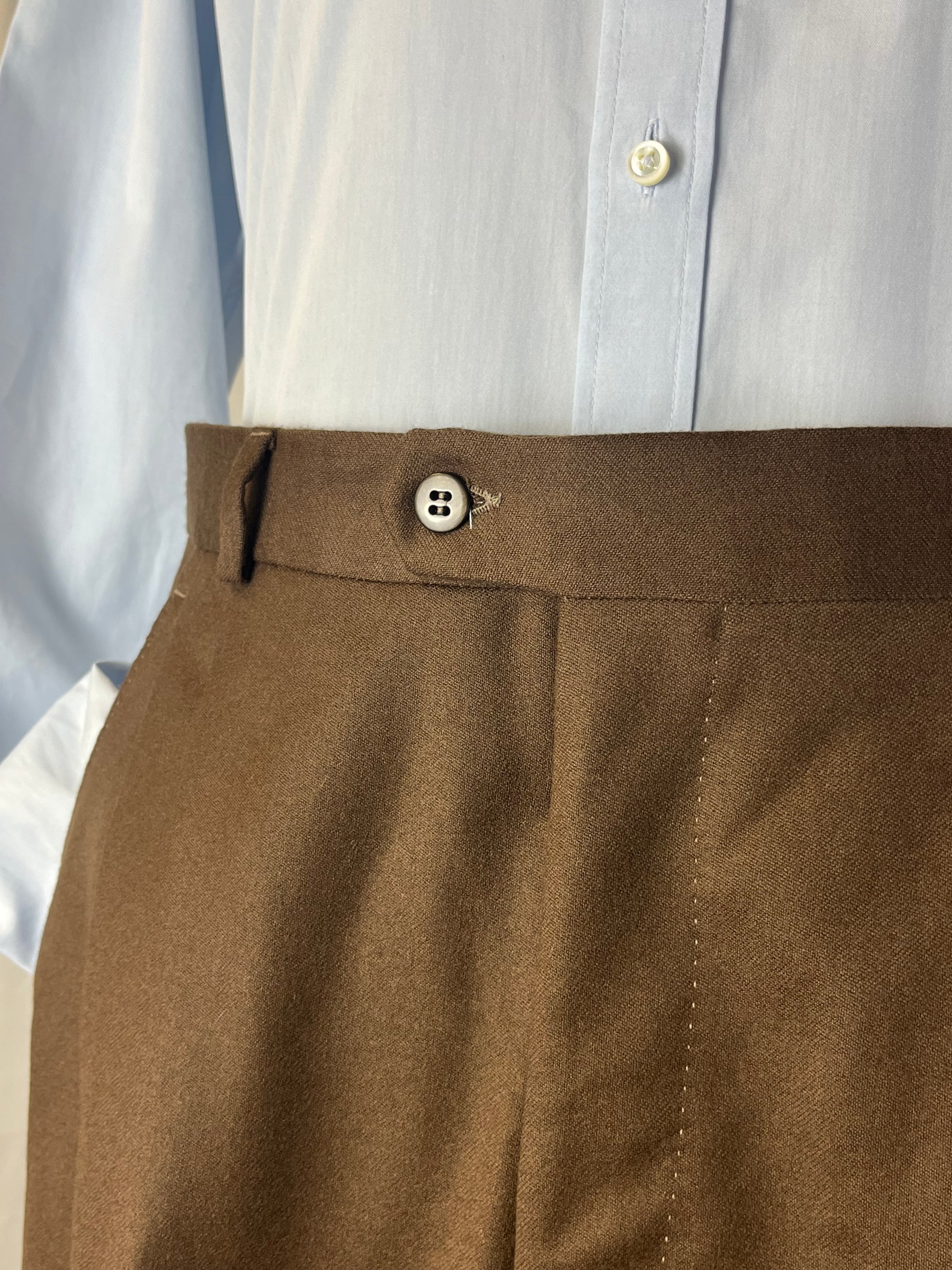 Calzoni anni ‘80 in 100% pura flanella di lana, color marrone chiaro.