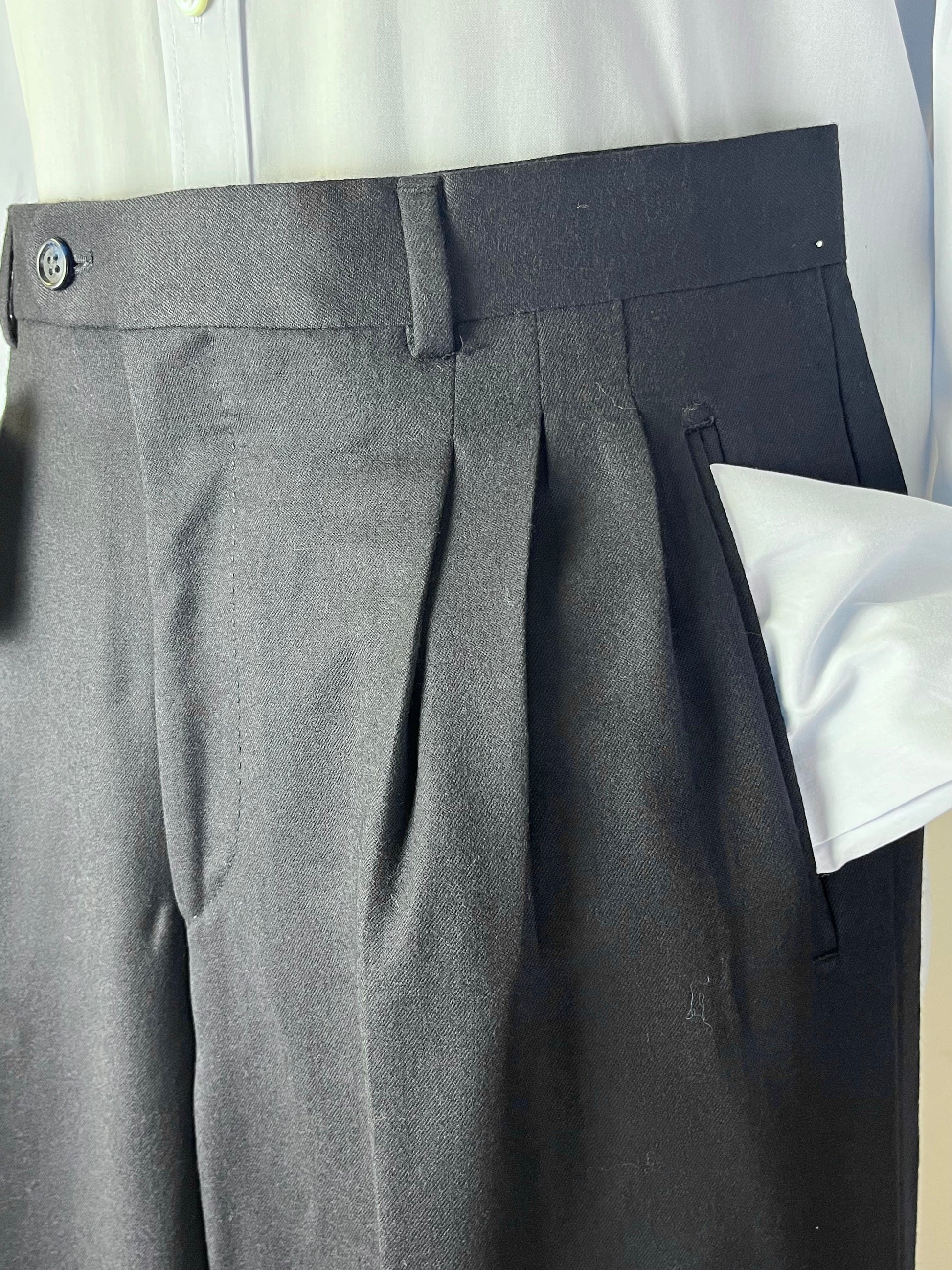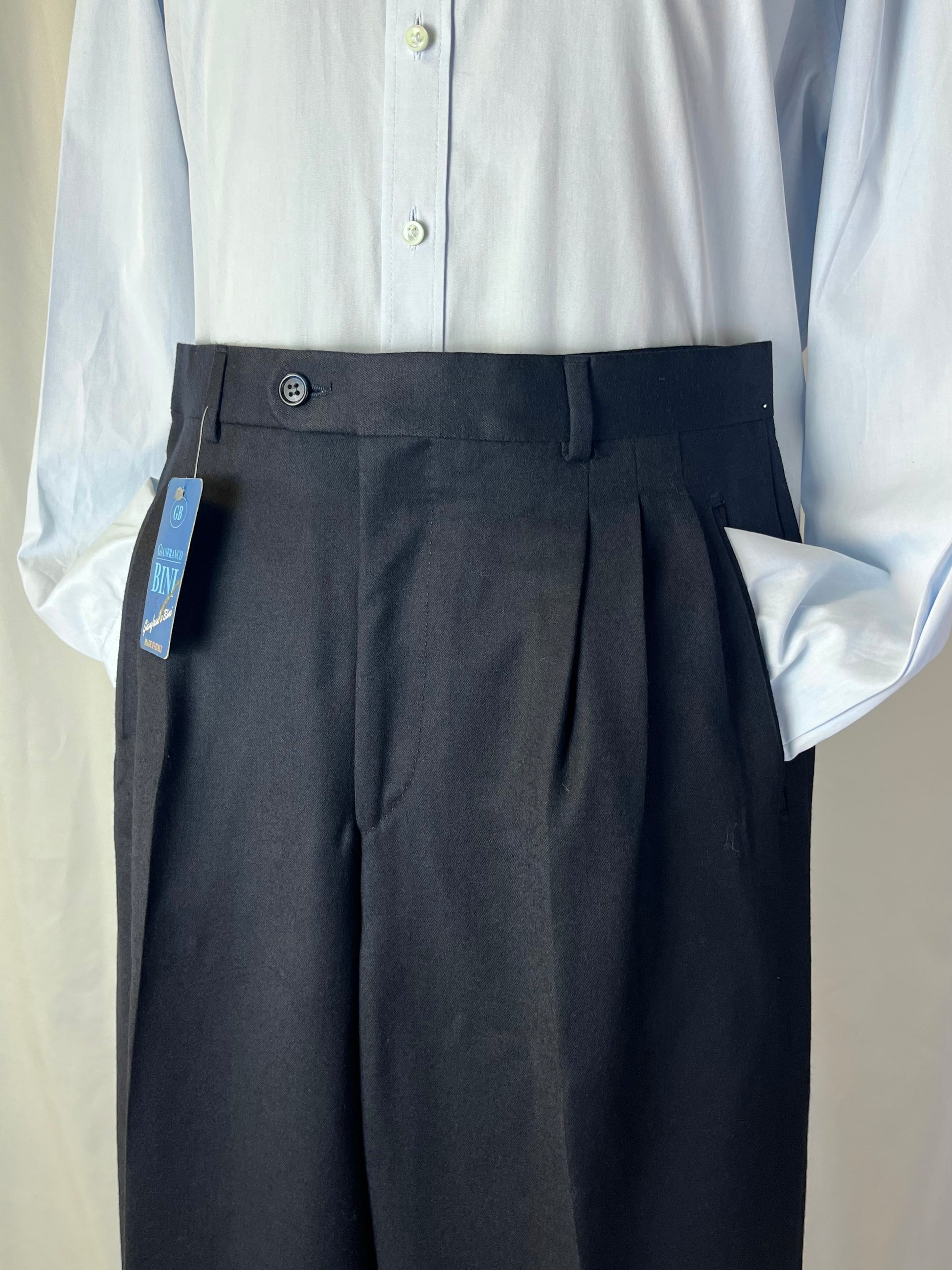 Calzoni anni ‘80 in 100% pura flanella di lana, color blu notte.