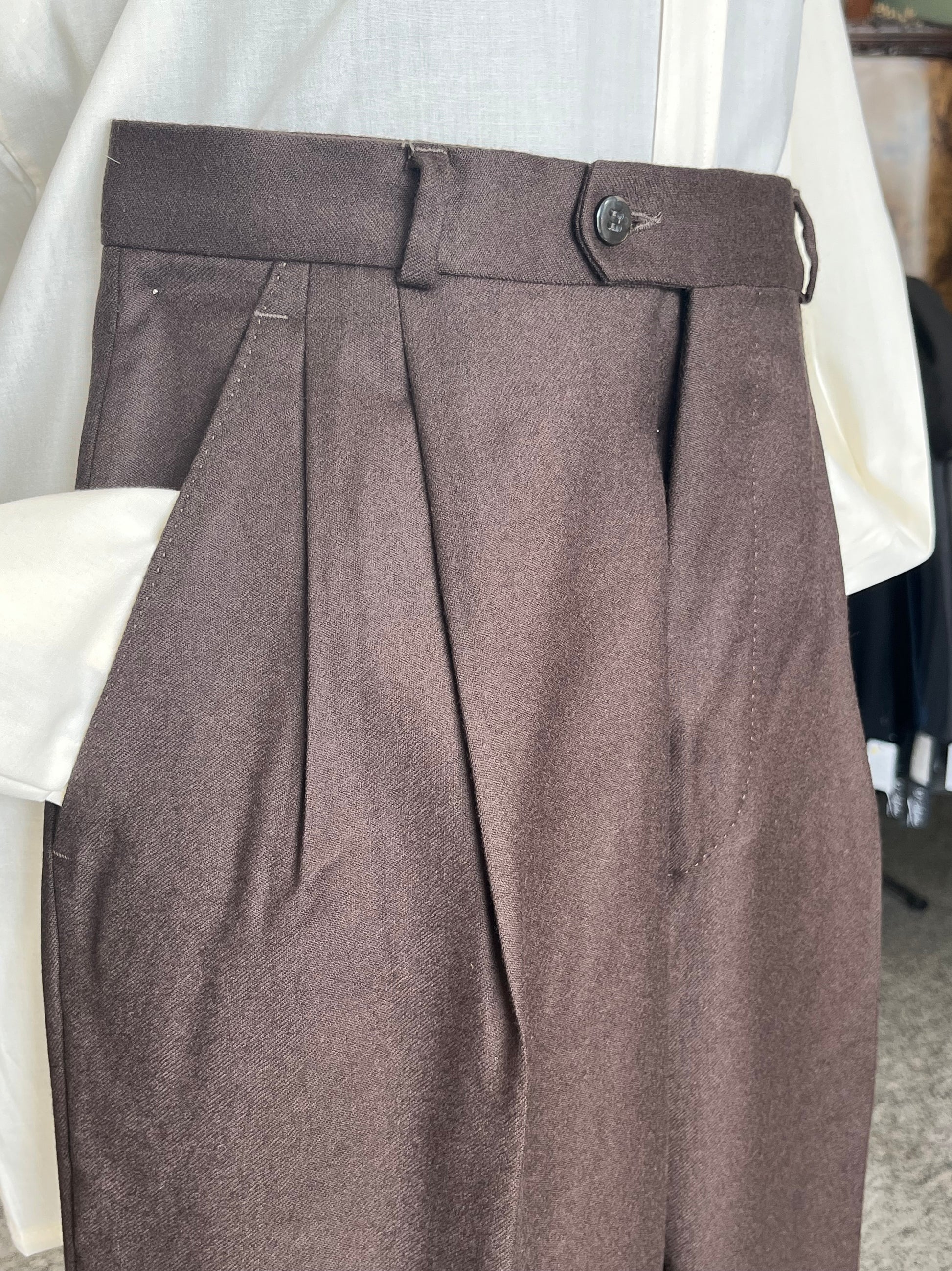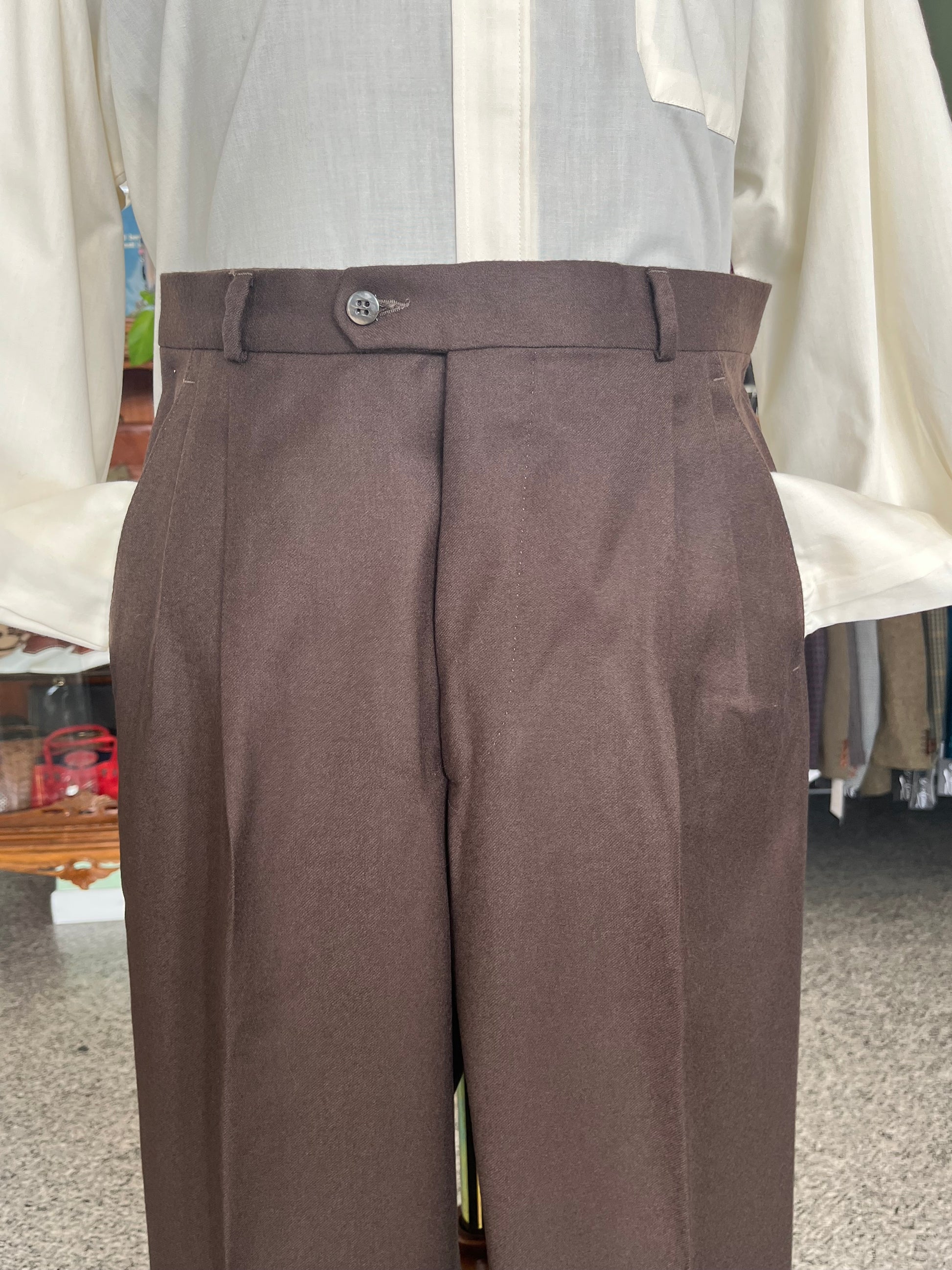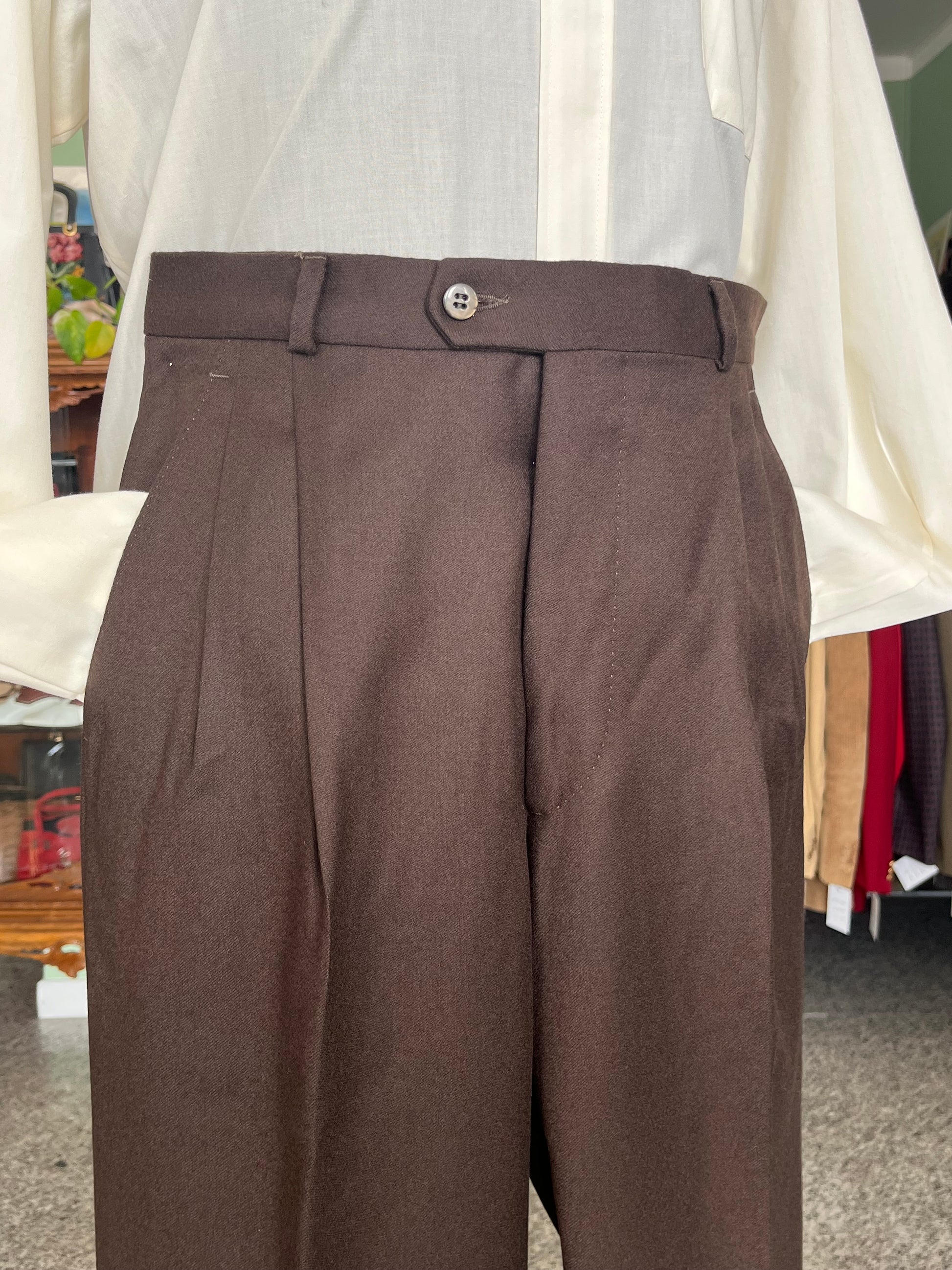 Calzoni anni ‘80 in 100% pura flanella di lana, color cacao.