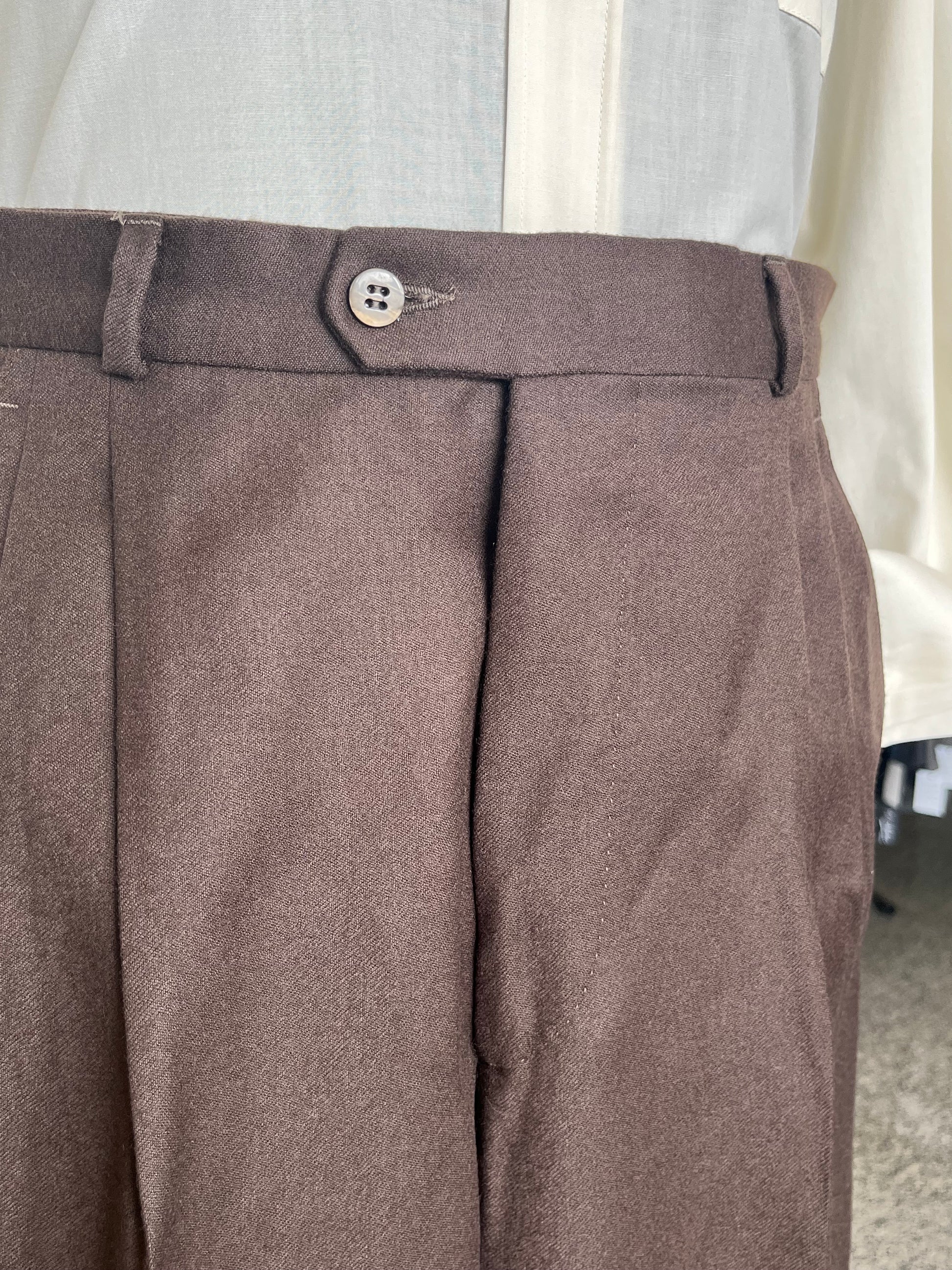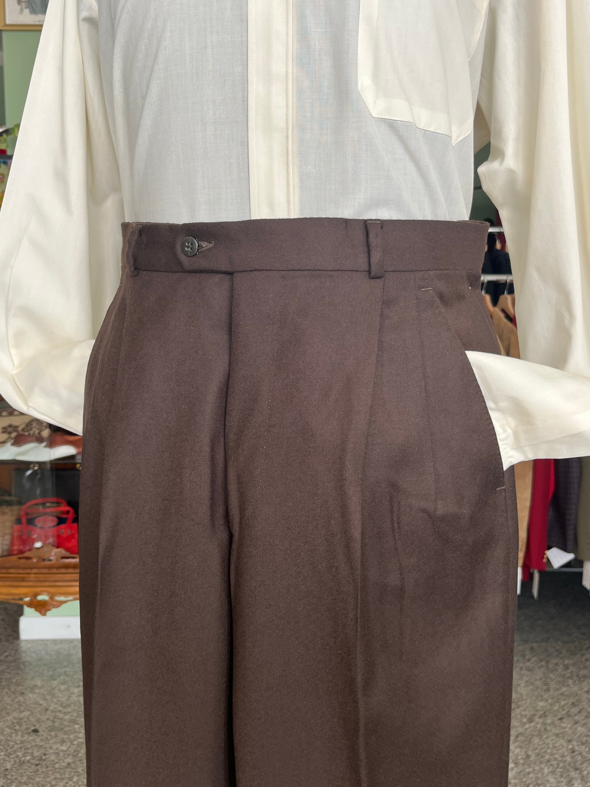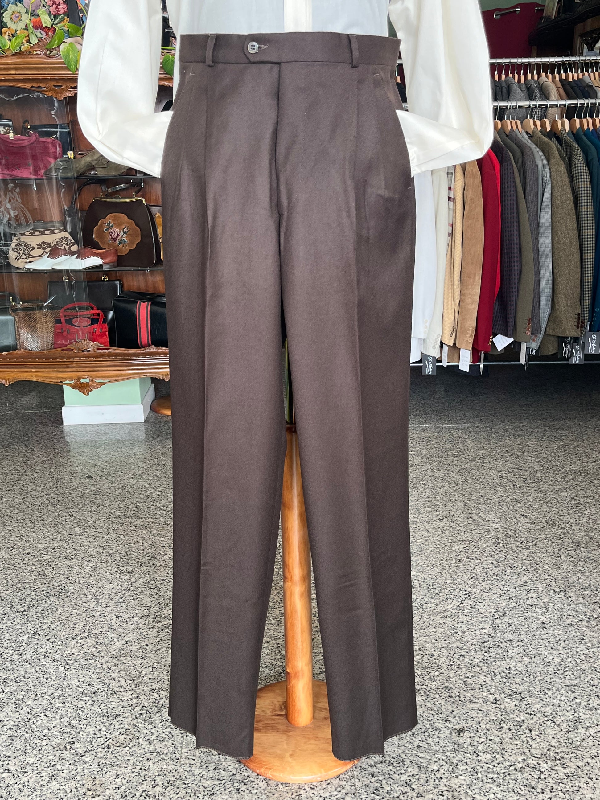 Calzoni anni ‘80 in 100% pura flanella di lana, color cacao.