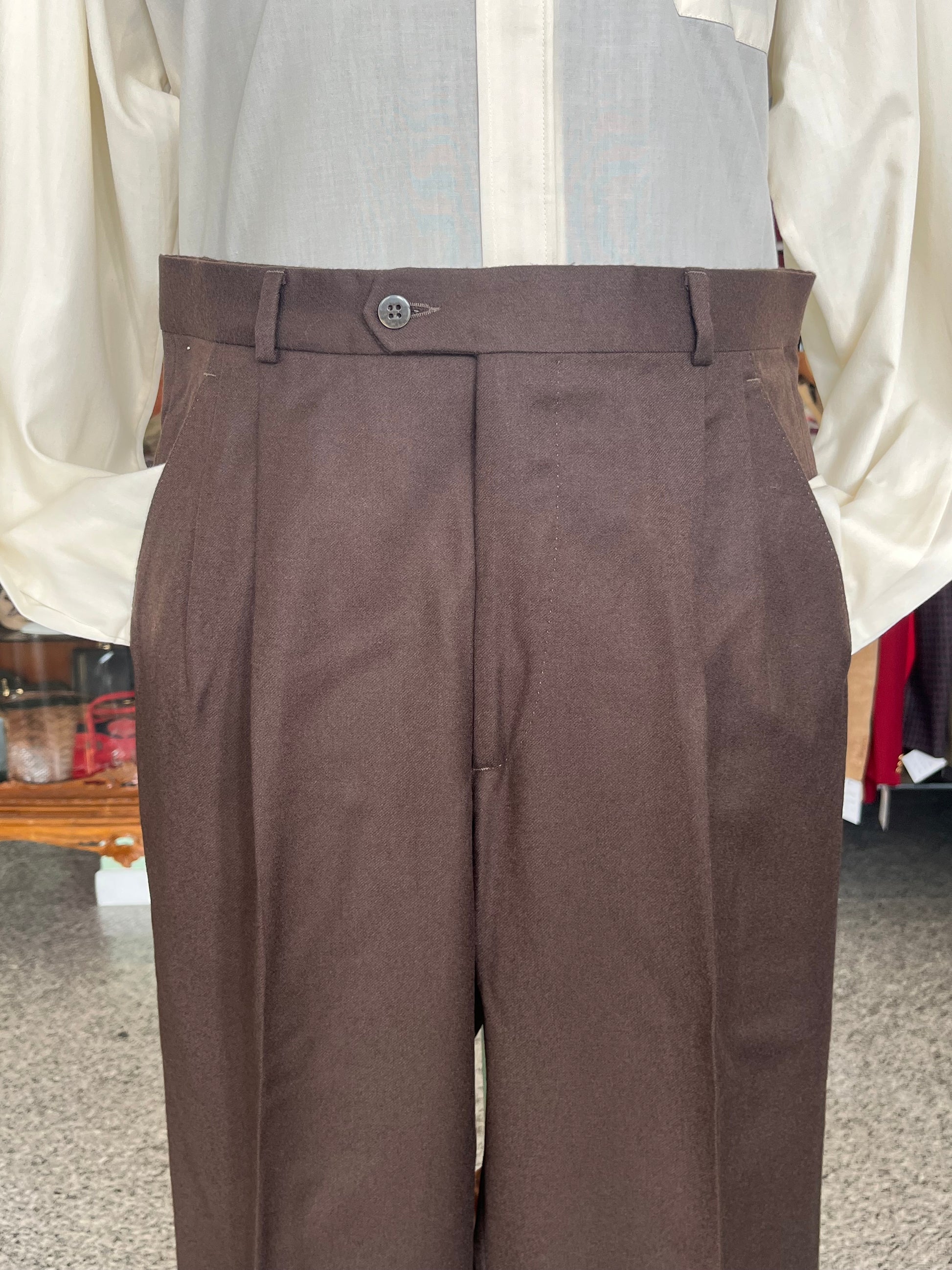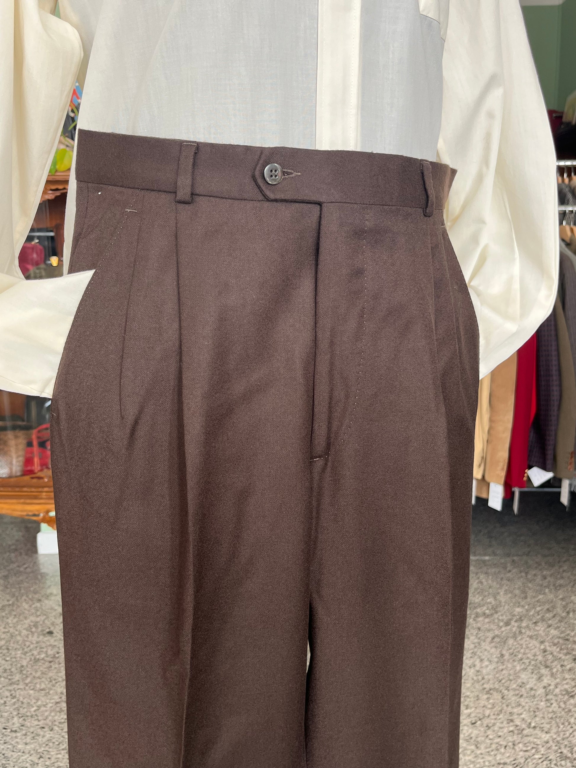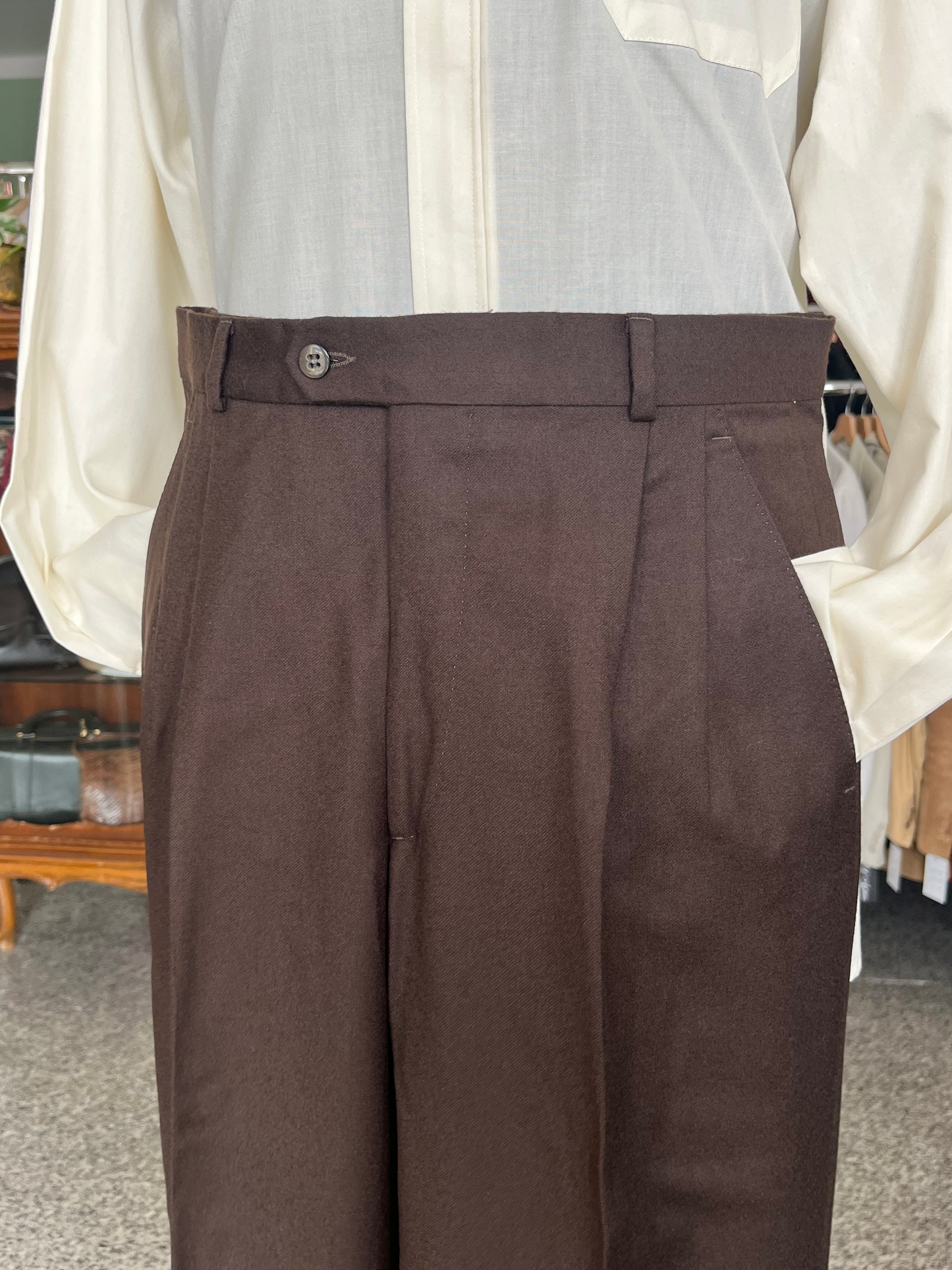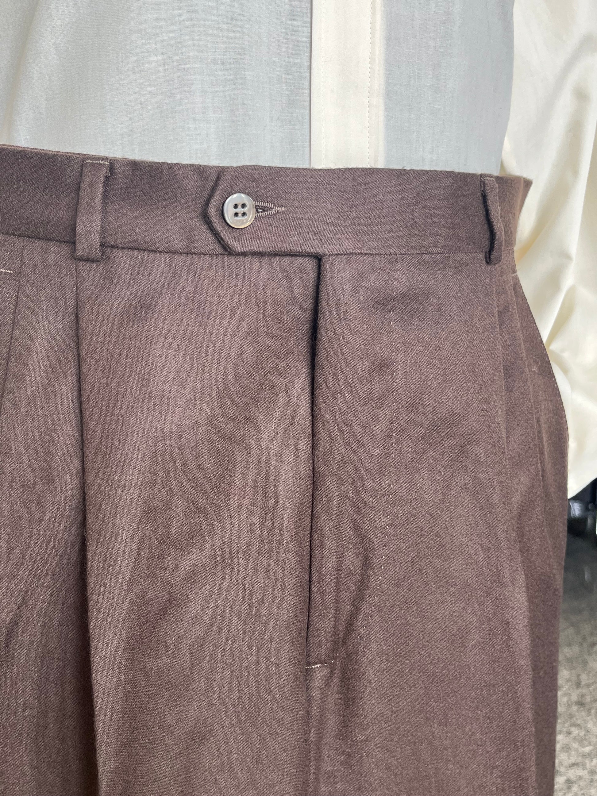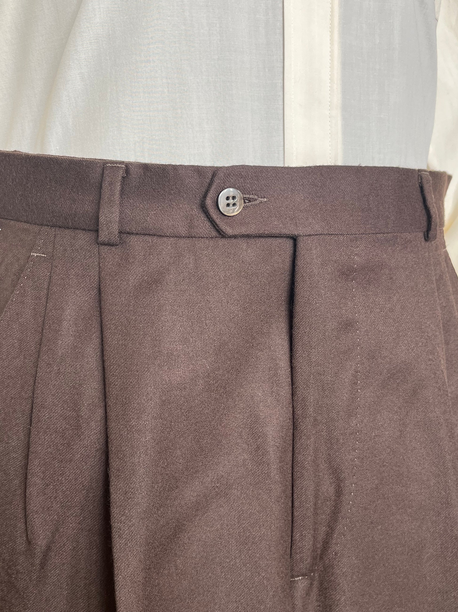 Calzoni anni ‘80 in 100% pura flanella di lana, color cacao.