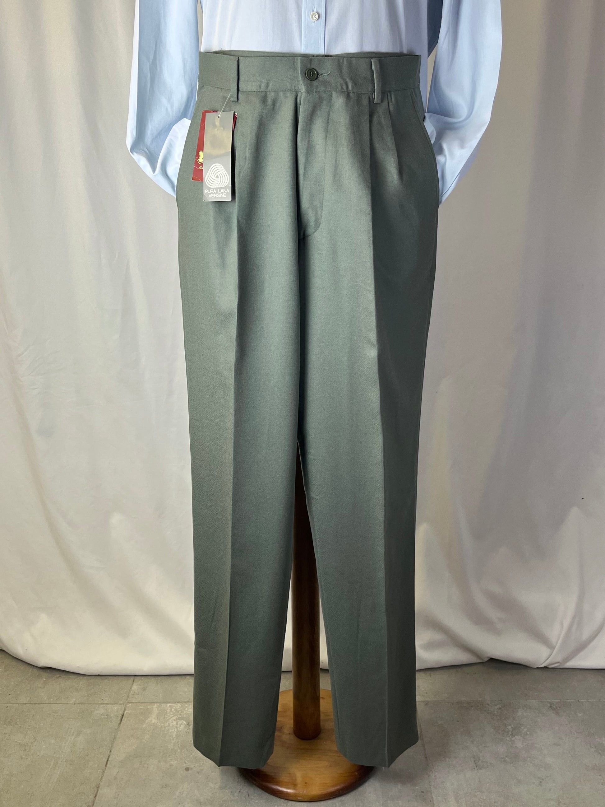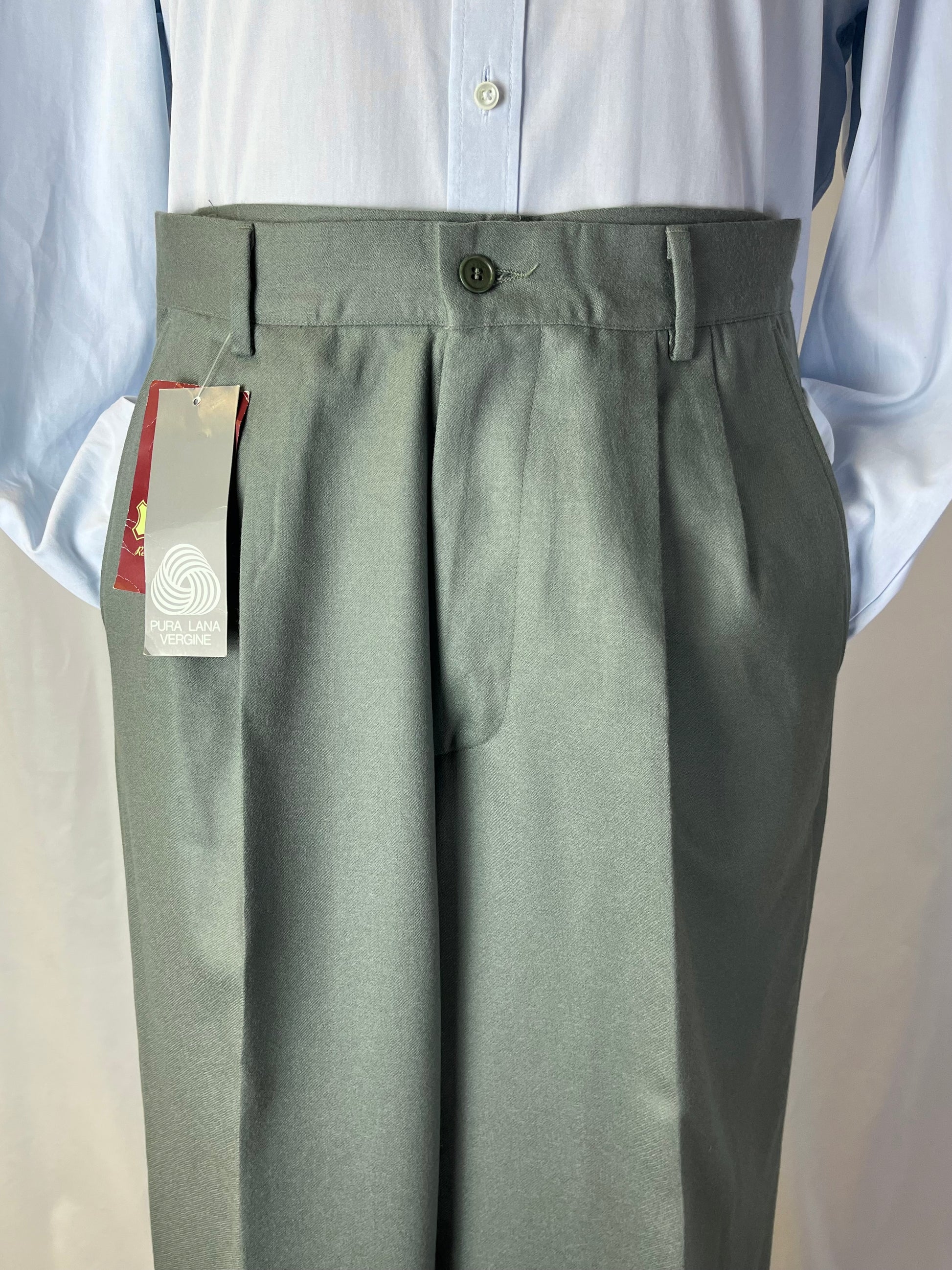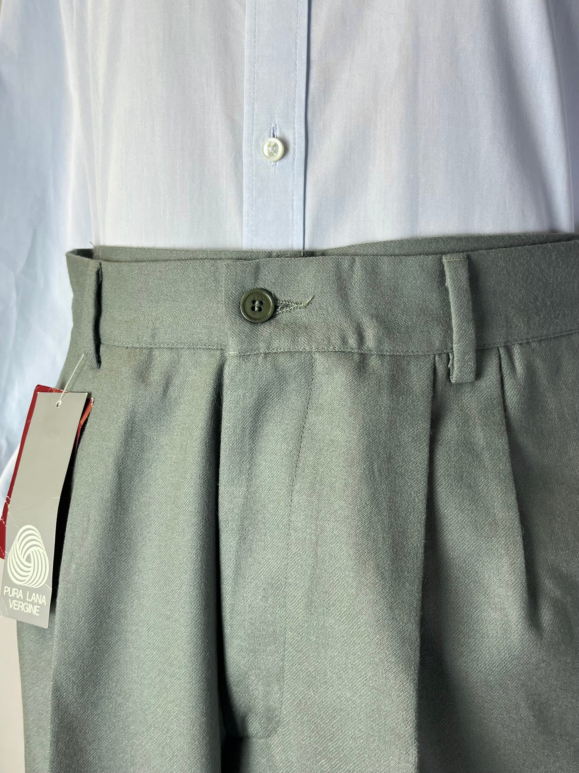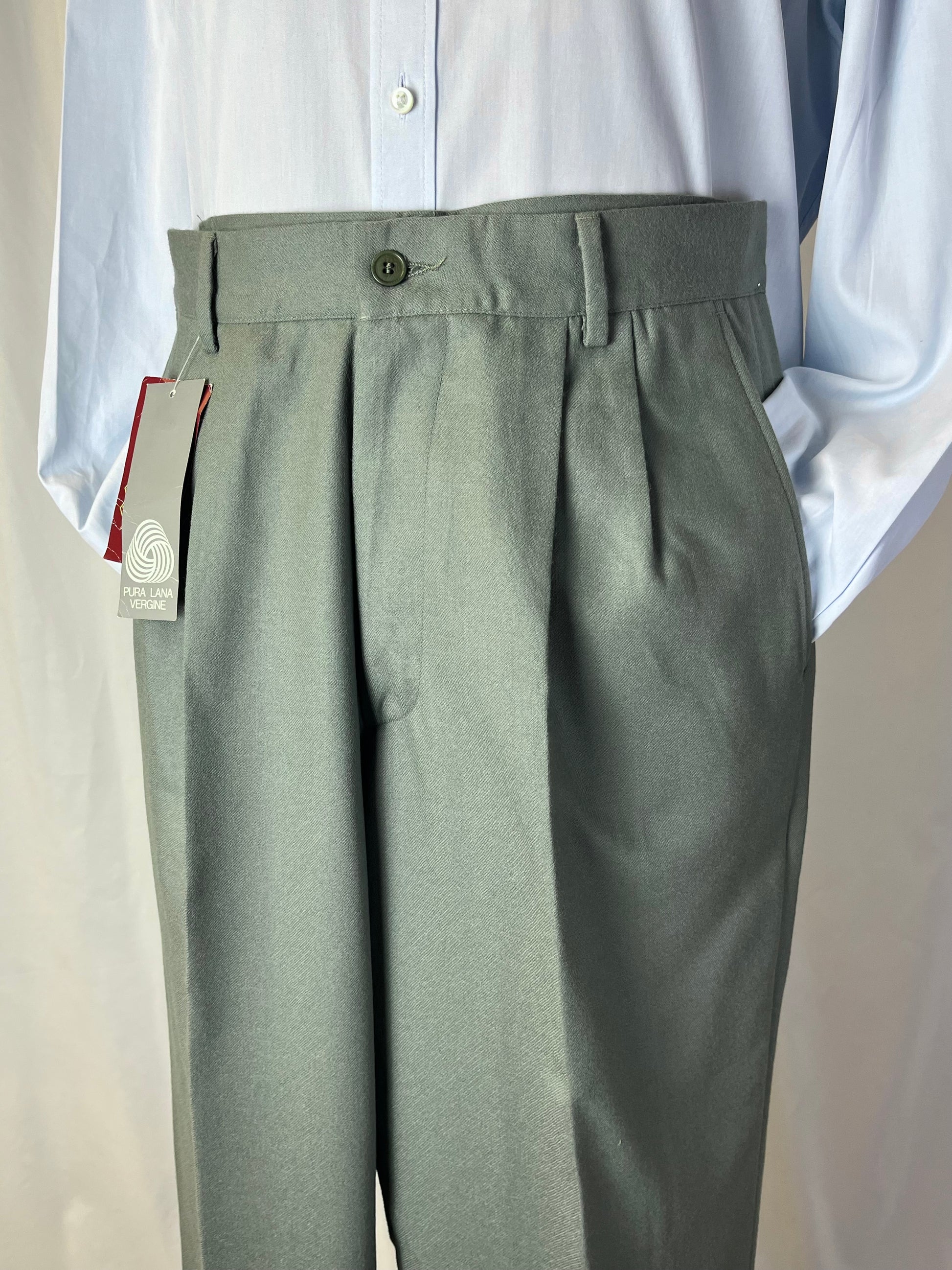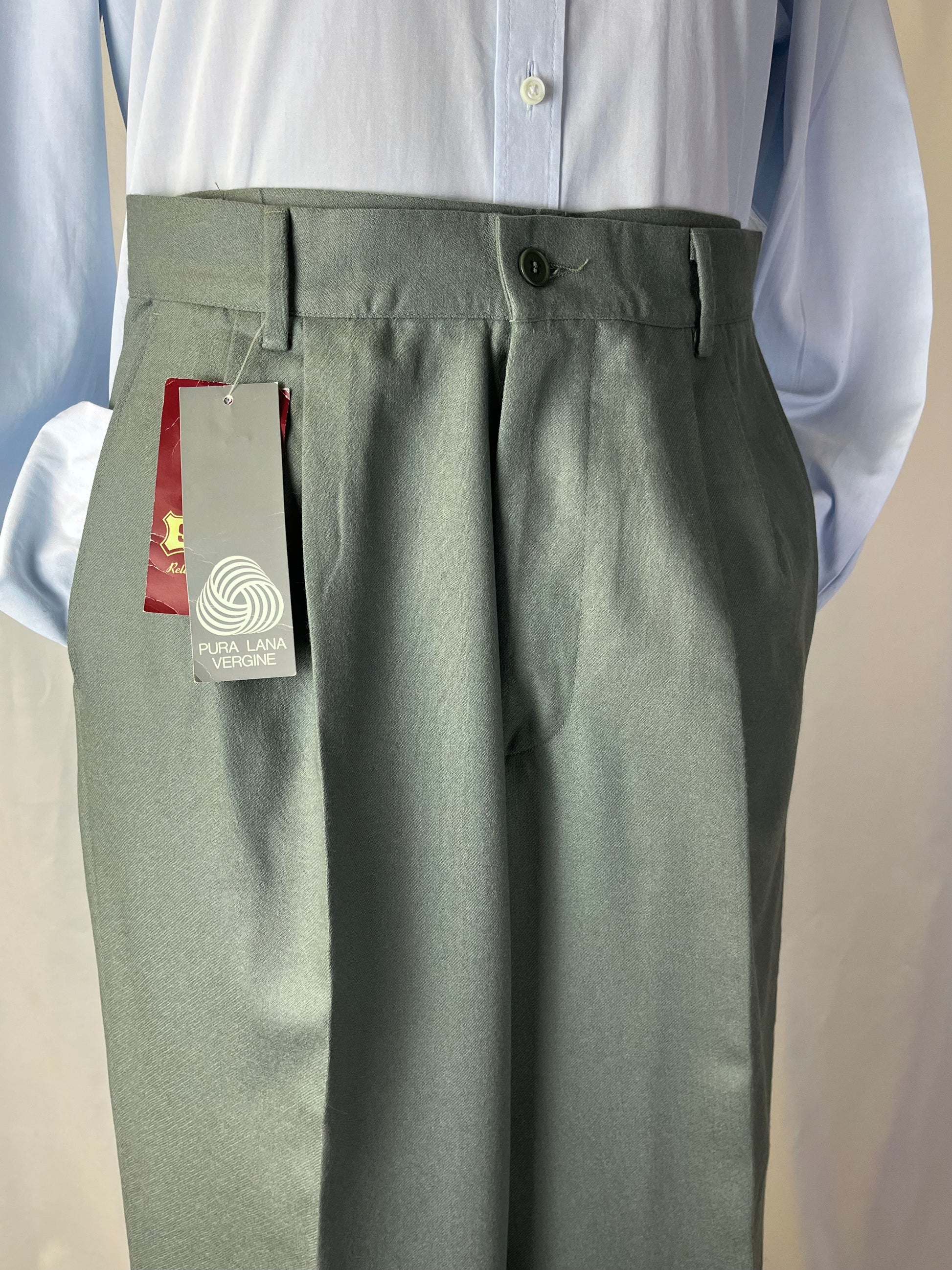 Calzoni anni ‘80 in 100% pura flanella di lana, color salvia.