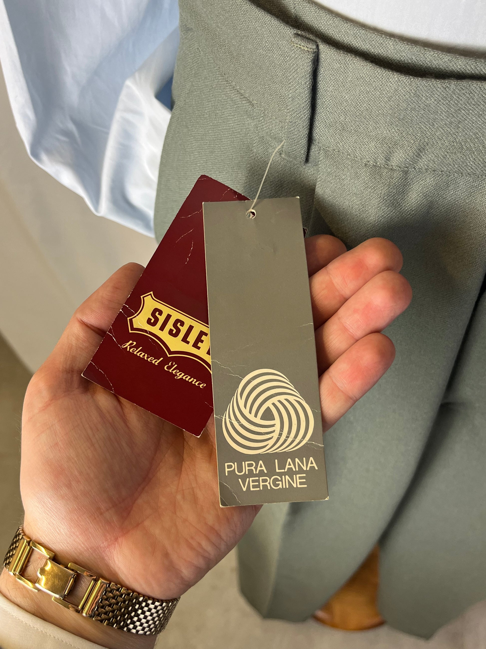 I calzoni sono un fondo di magazzino, quindi mai utilizzati, con etichette originali dell’epoca e orlo ancora da chiudere.