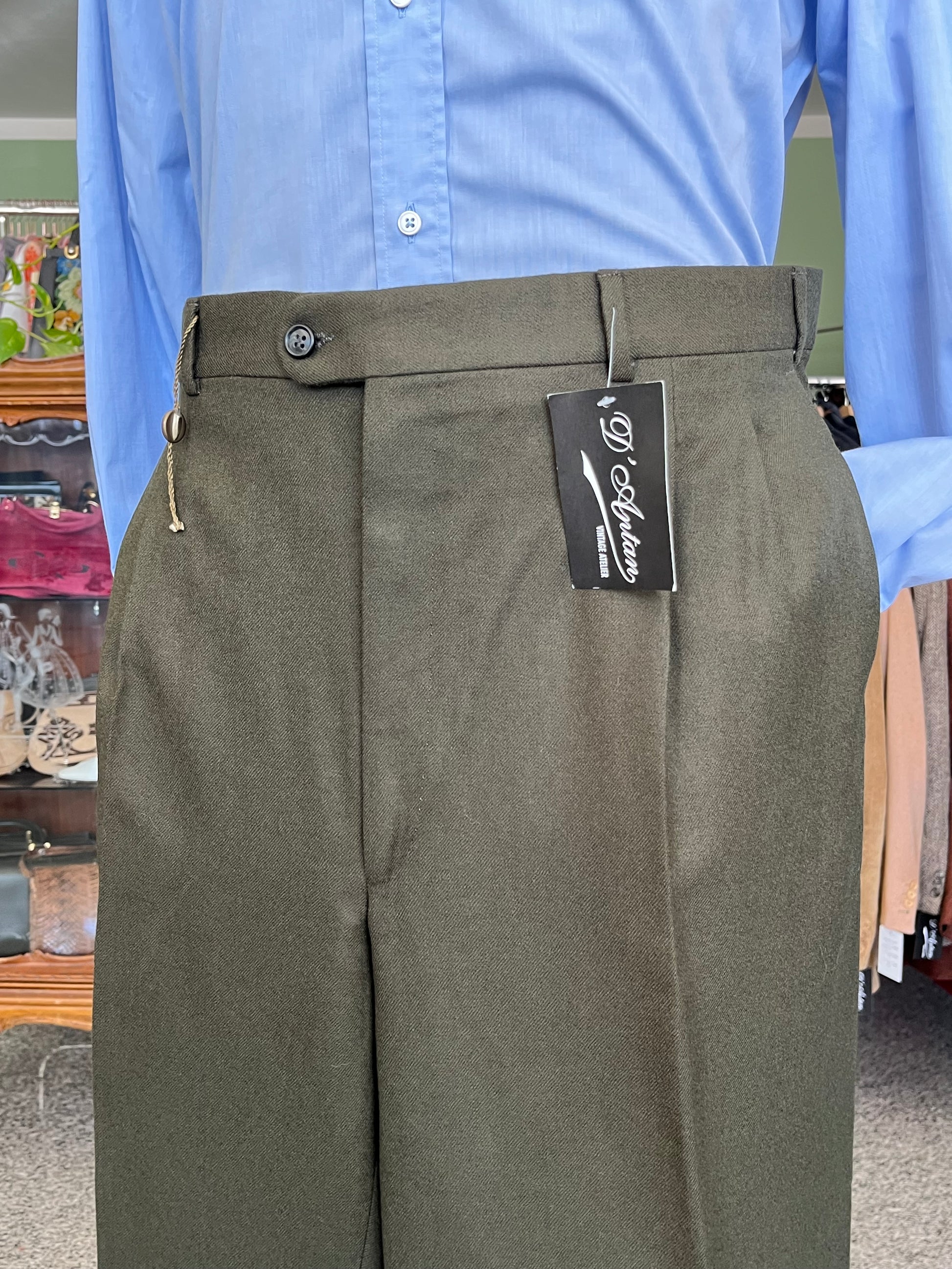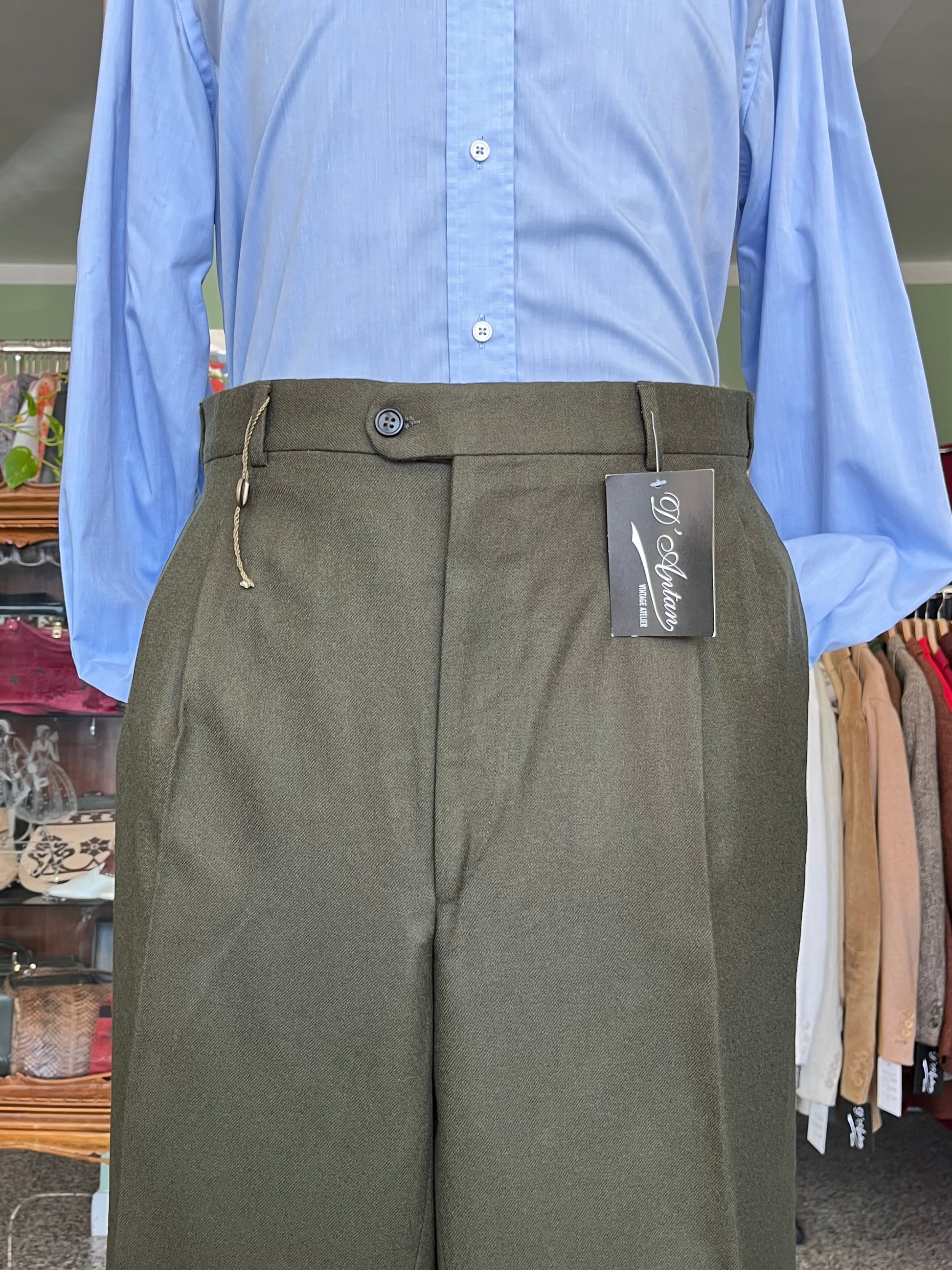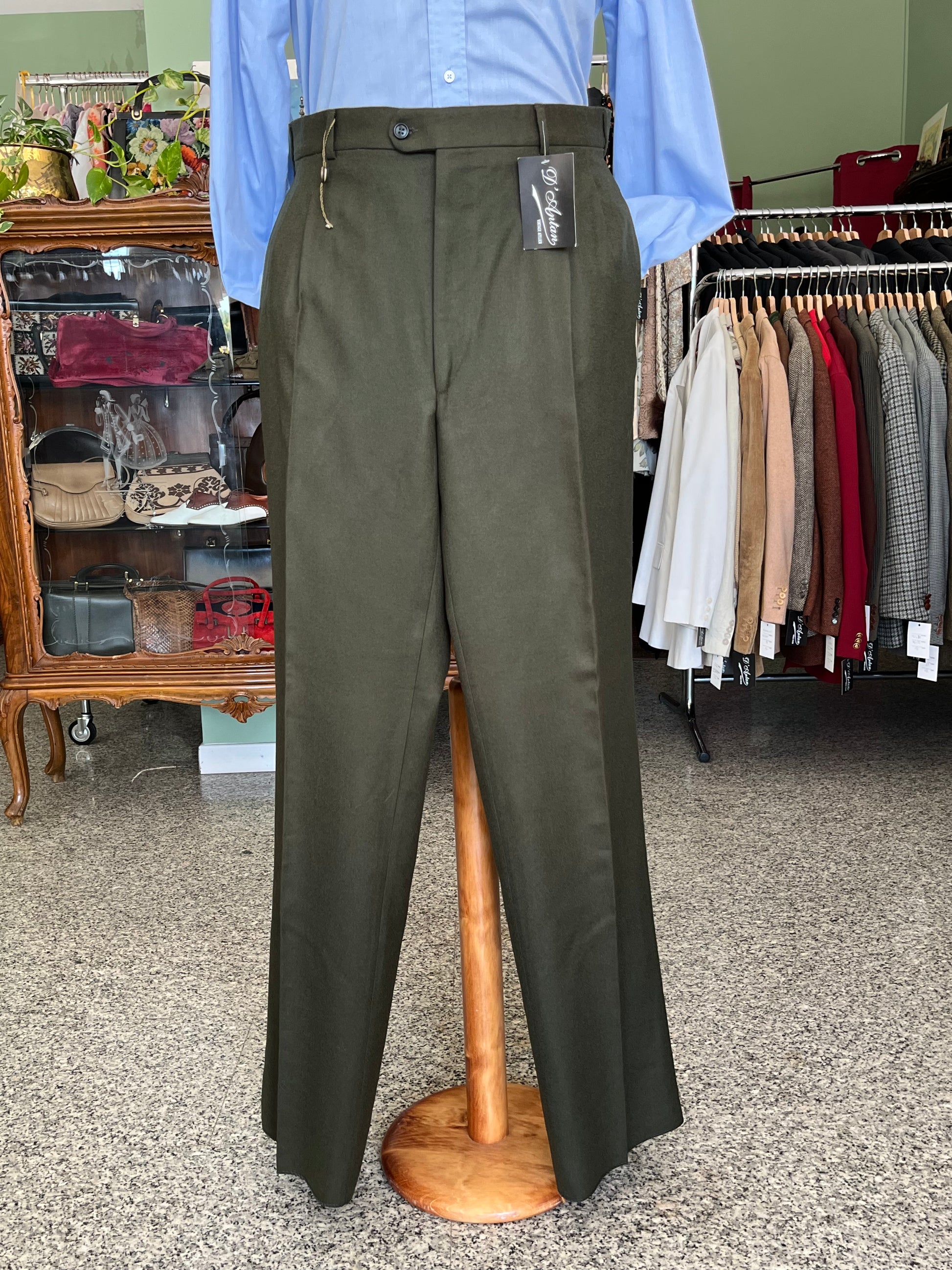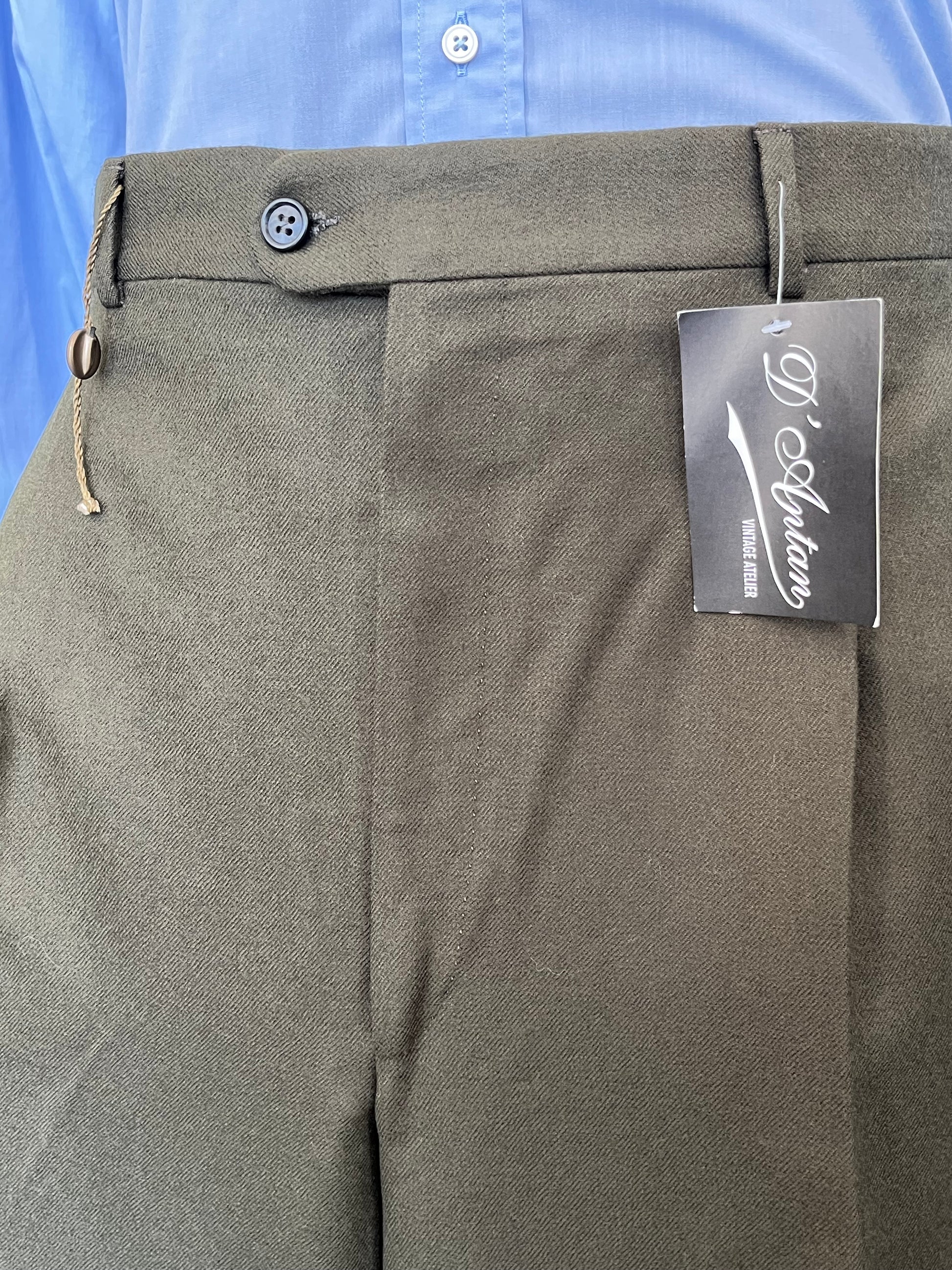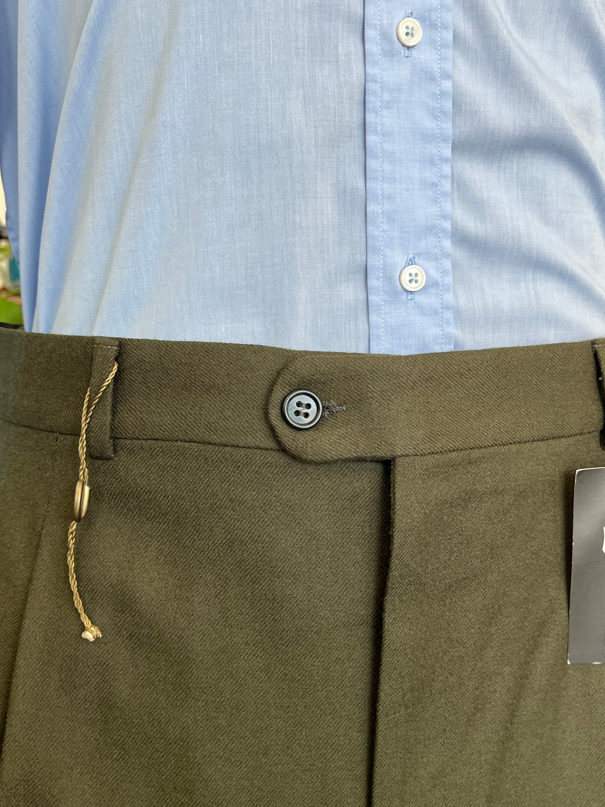 Calzoni anni ‘80 in 100% pura flanella di lana color verde oliva.