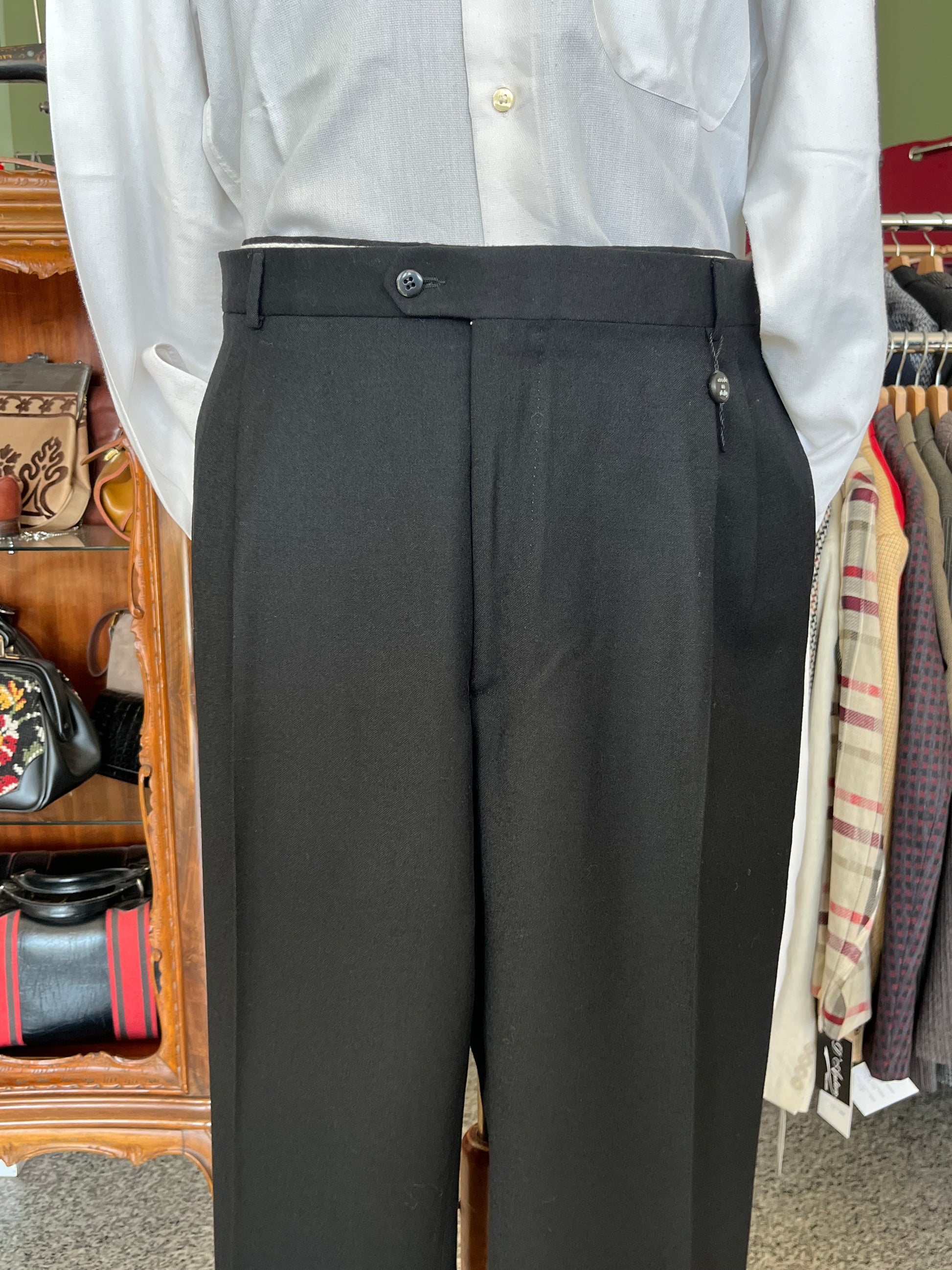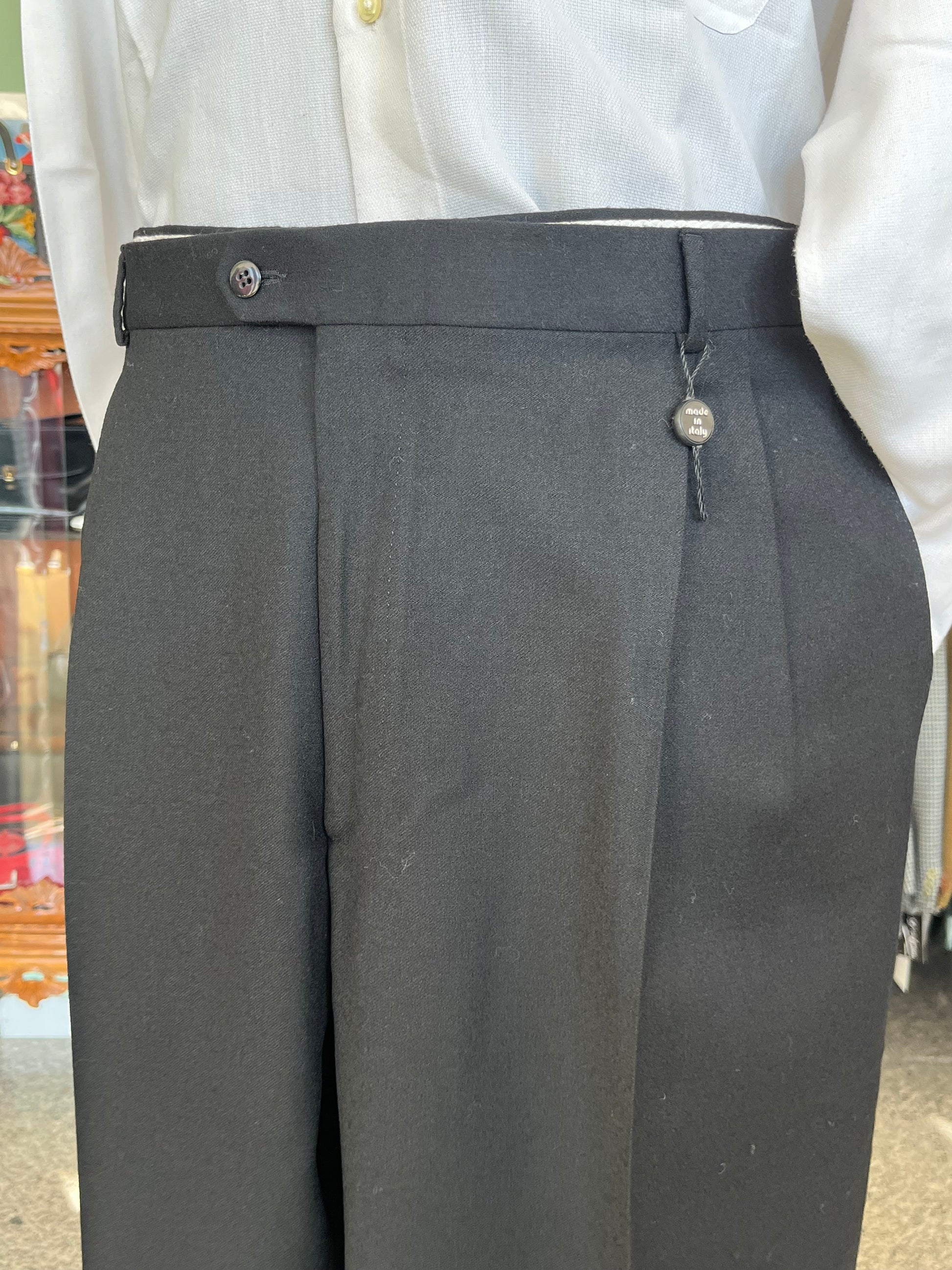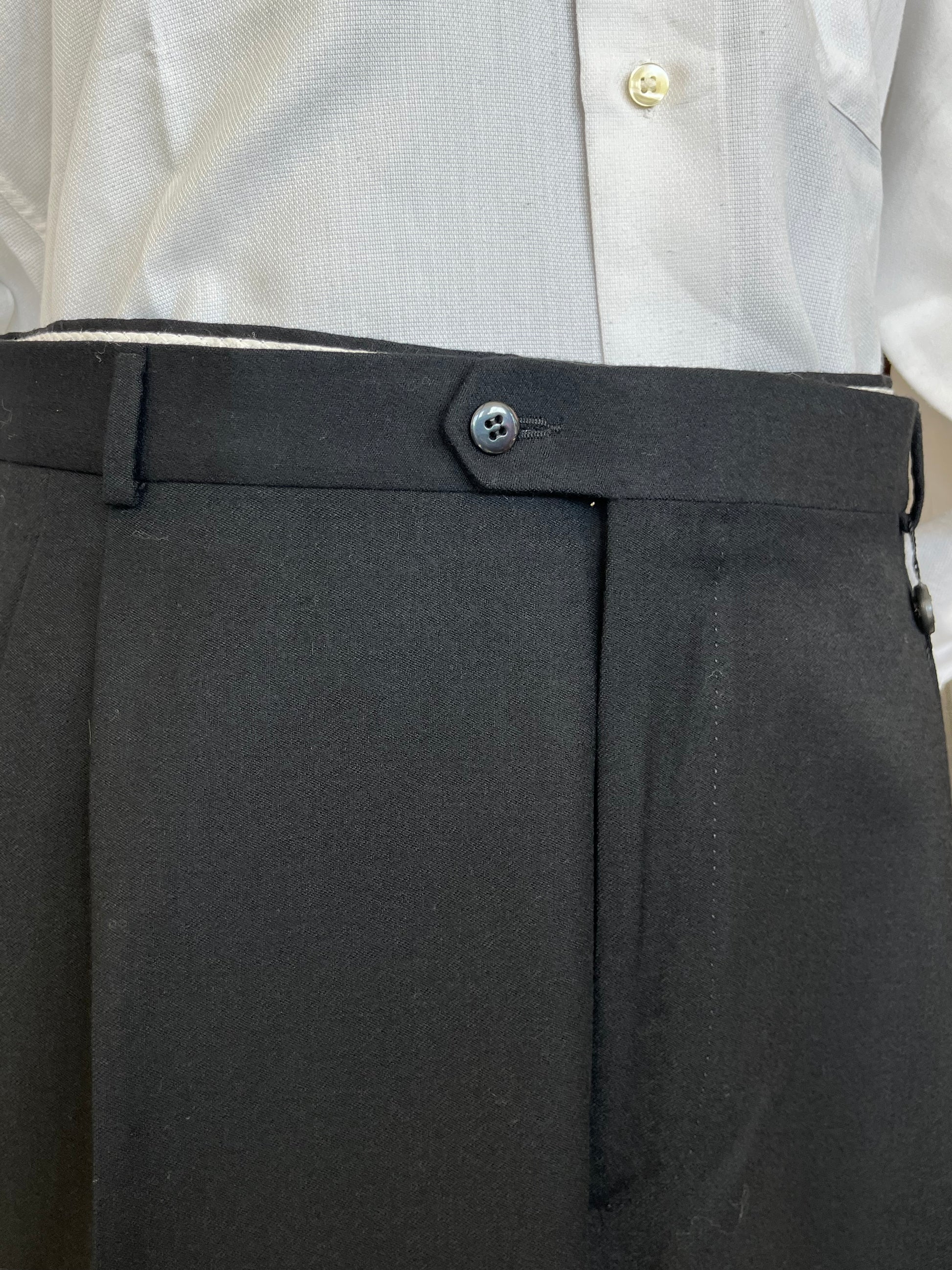 I calzoni sono un fondo di magazzino, quindi mai utilizzati, con etichette originali dell’epoca e orlo ancora da chiudere.