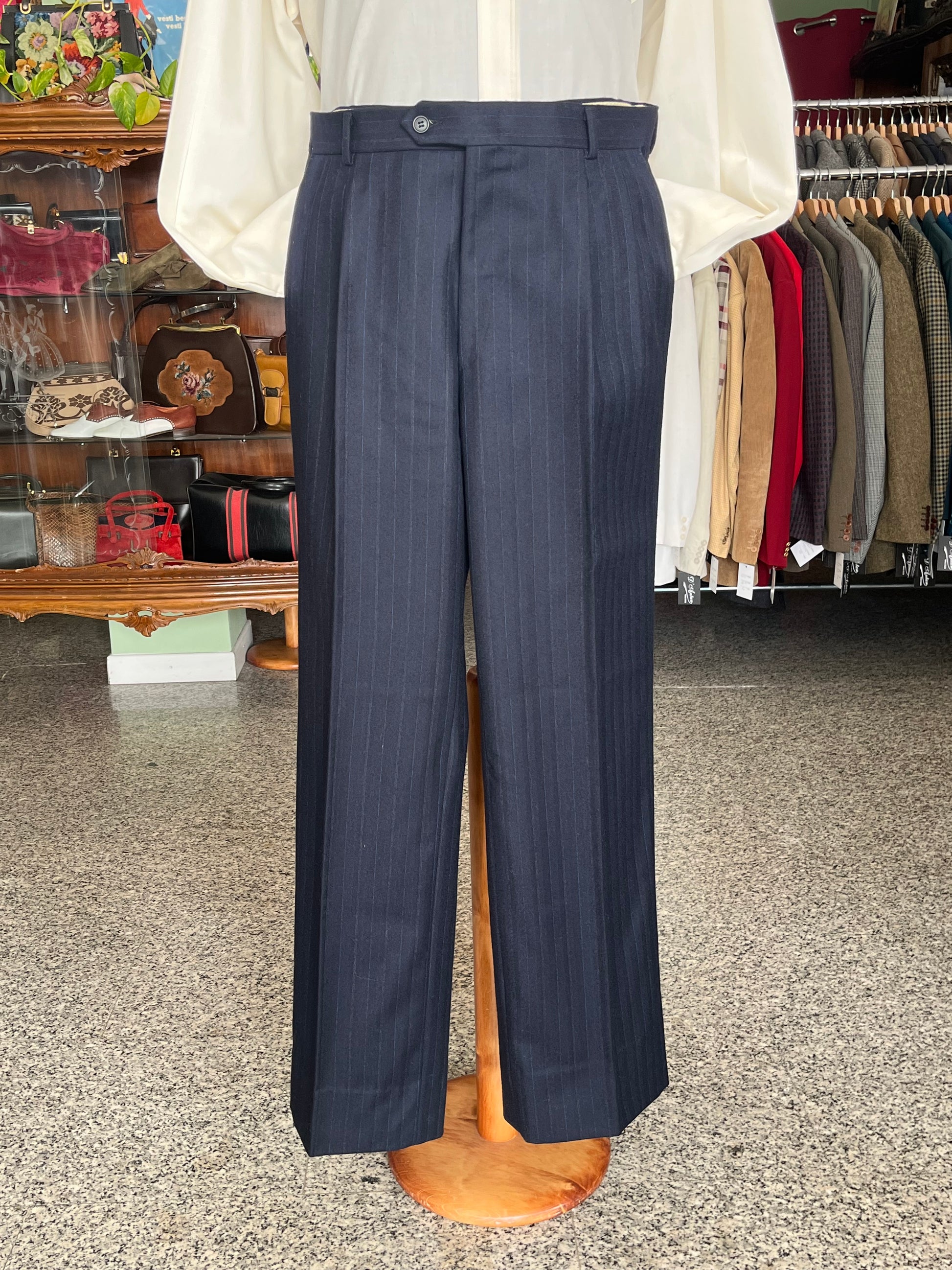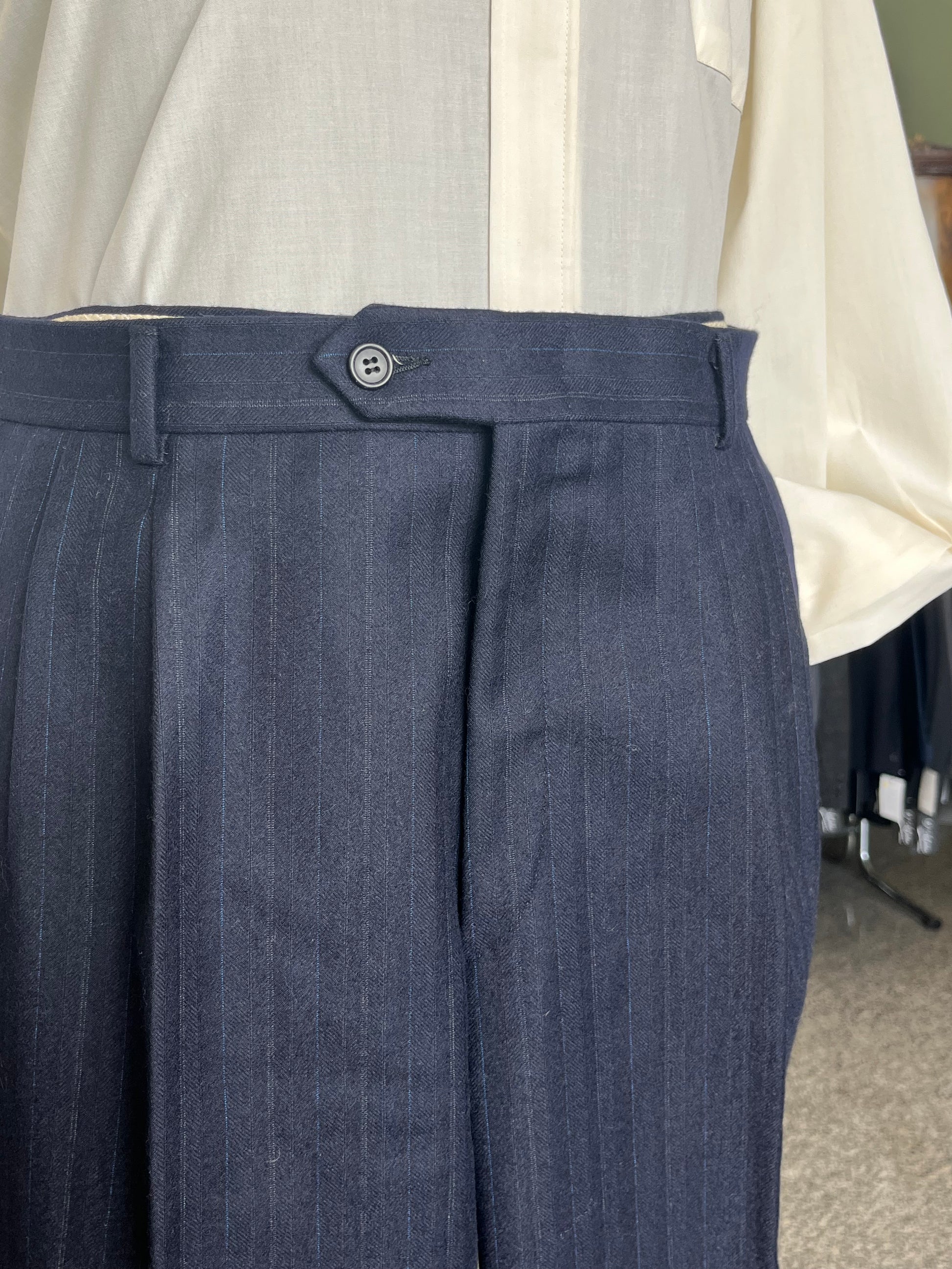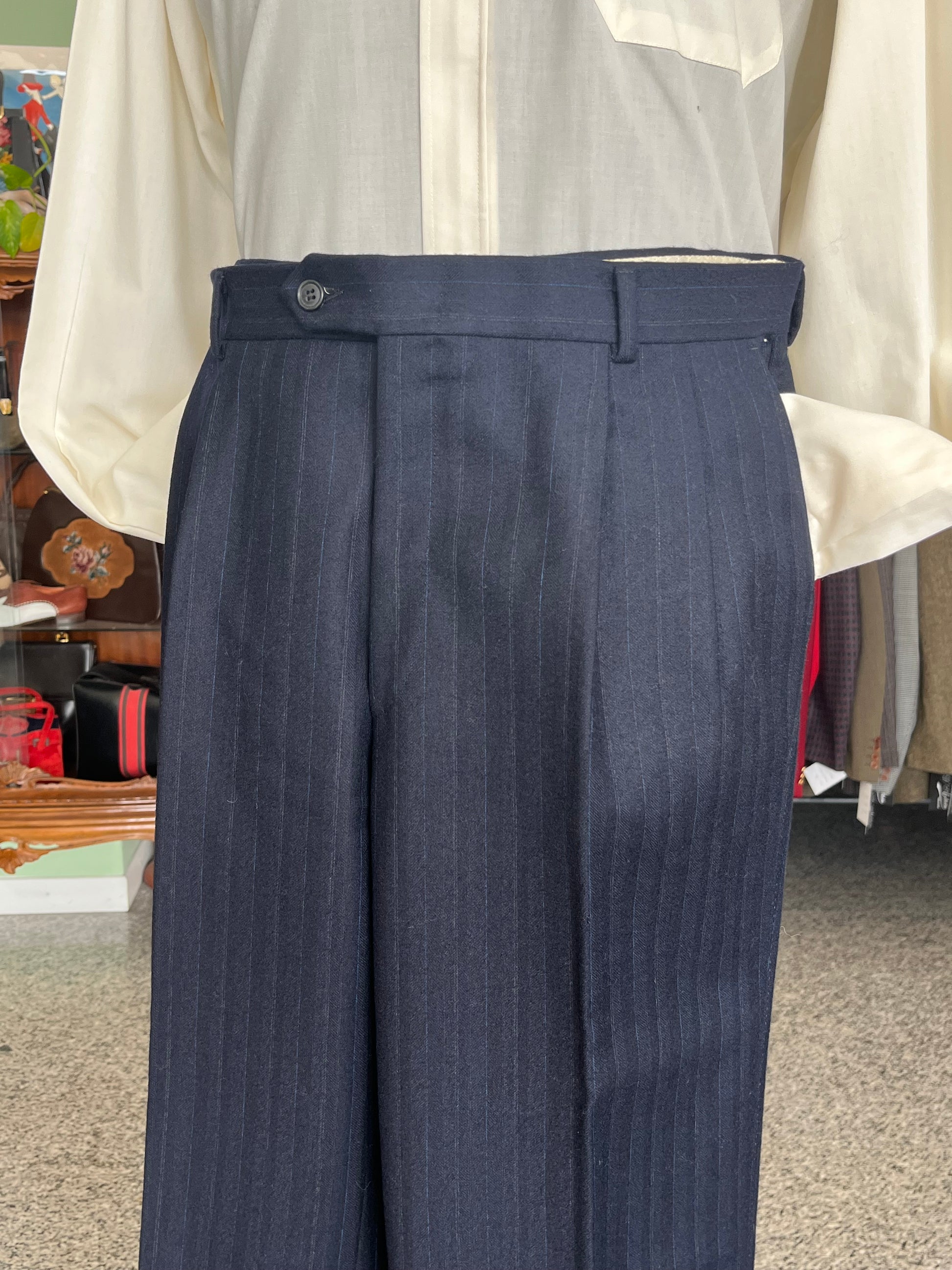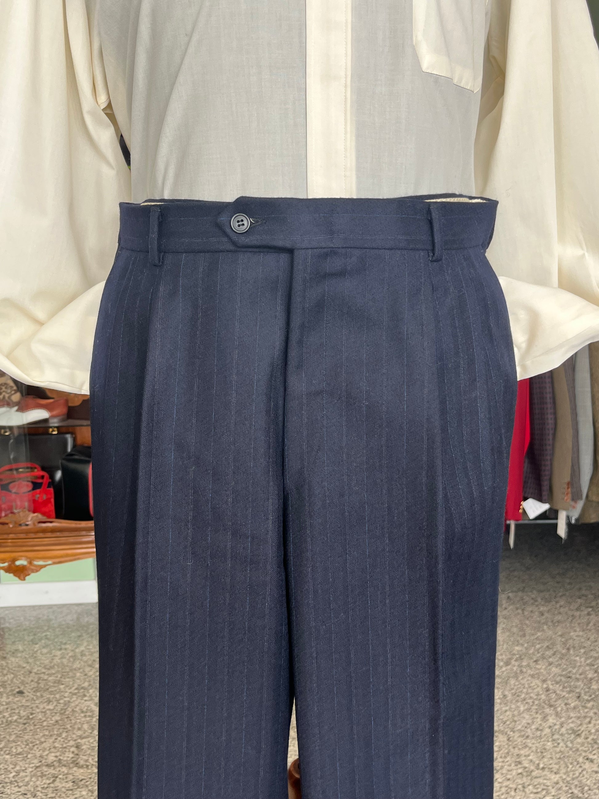 Calzoni anni ‘80 in 100% pura flanella di lana, color blu.