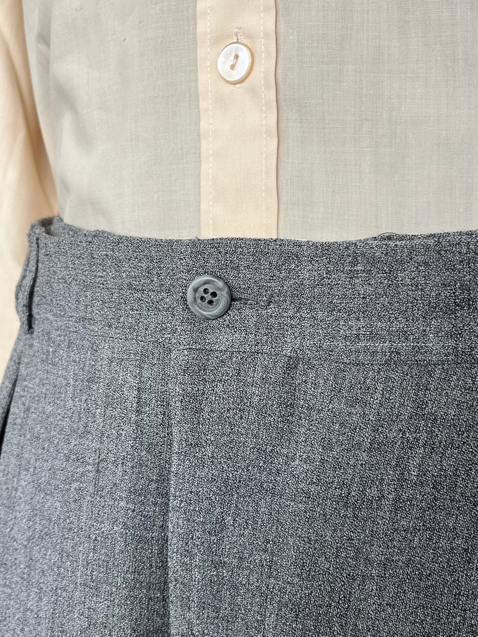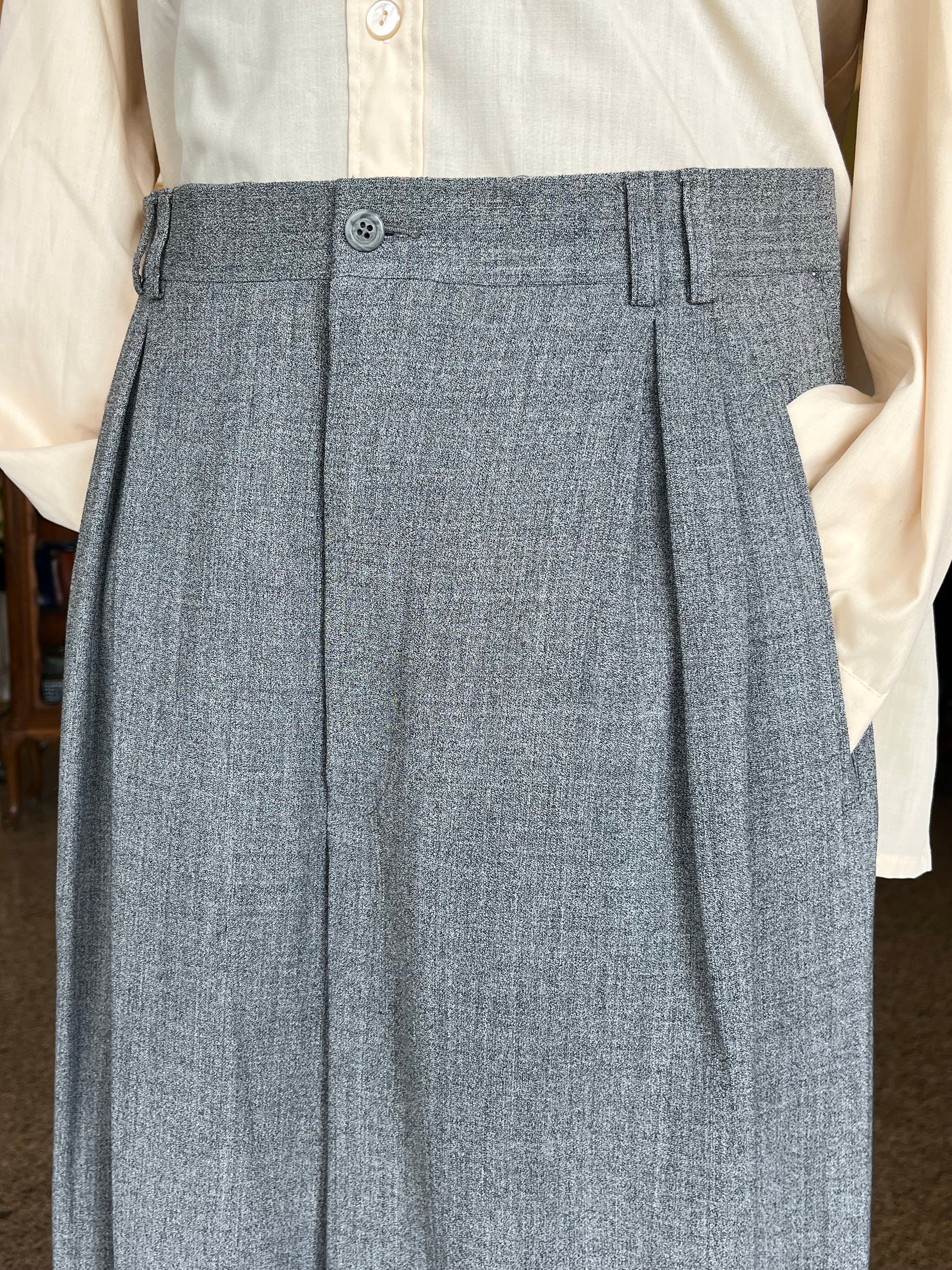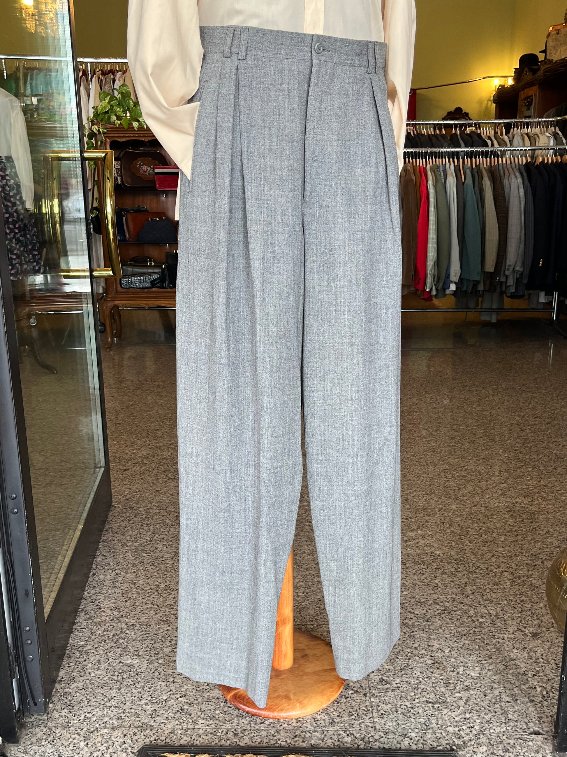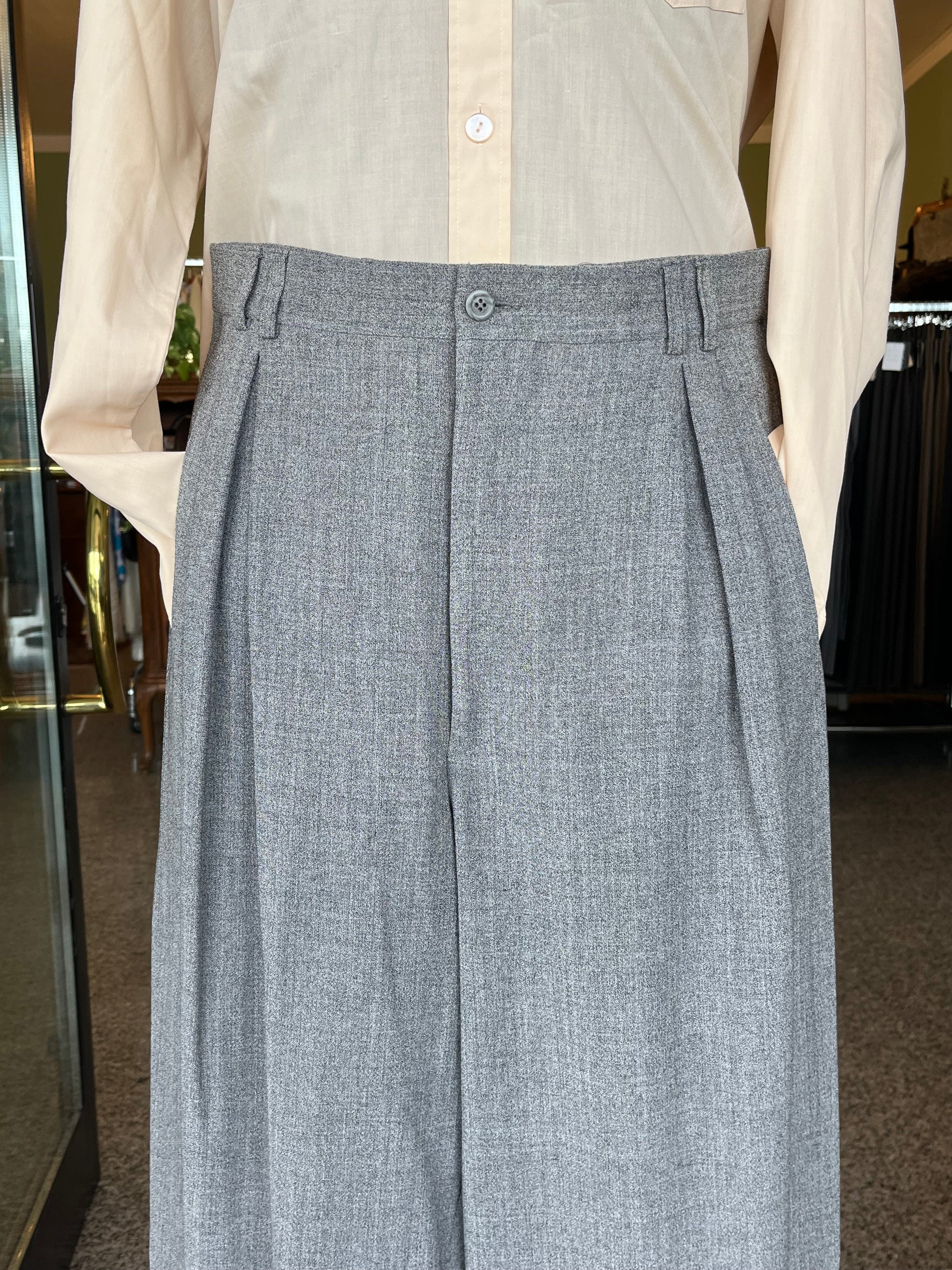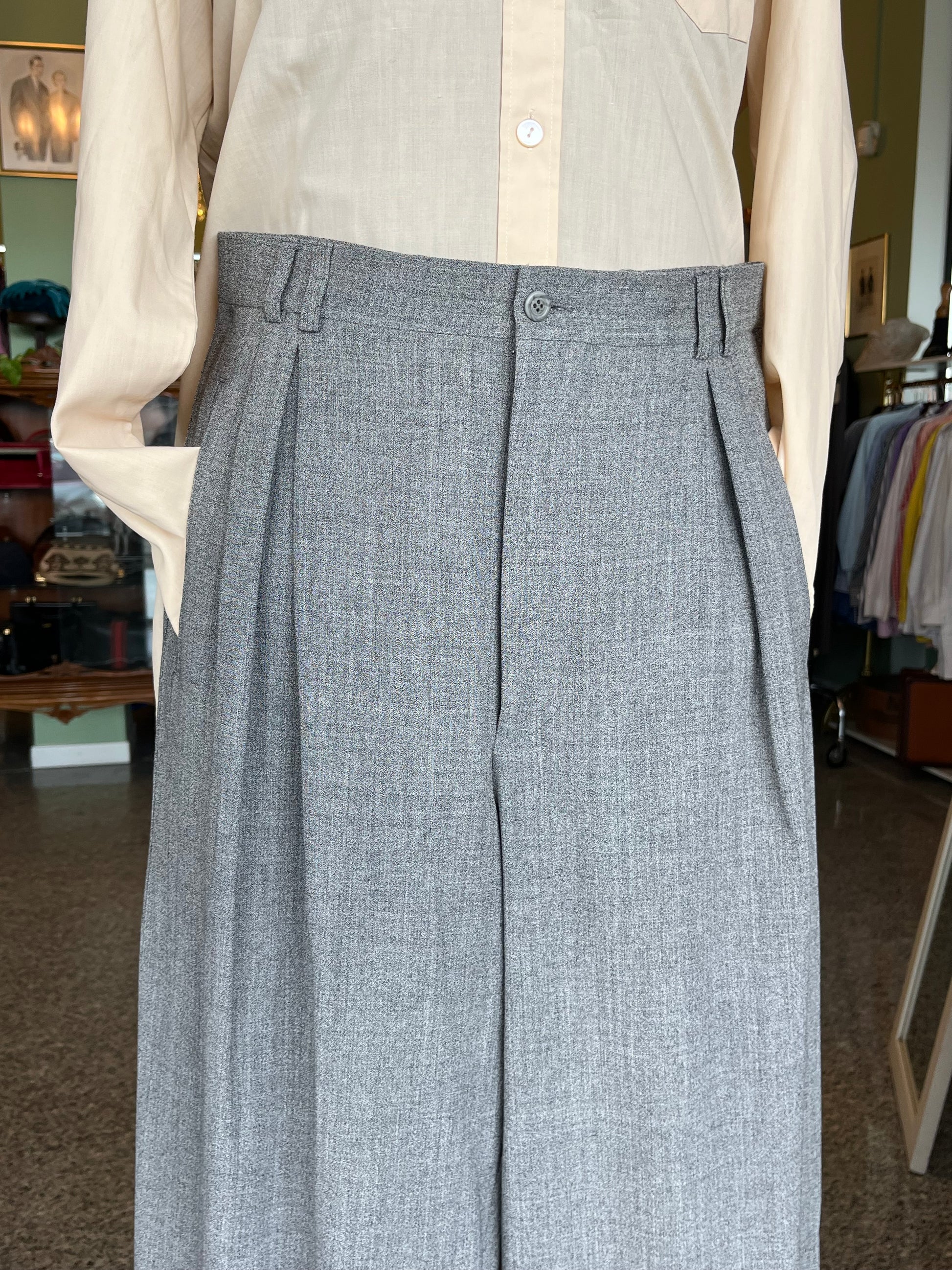 Calzoni anni ‘80 in fresco di lana color grigio chiaro.