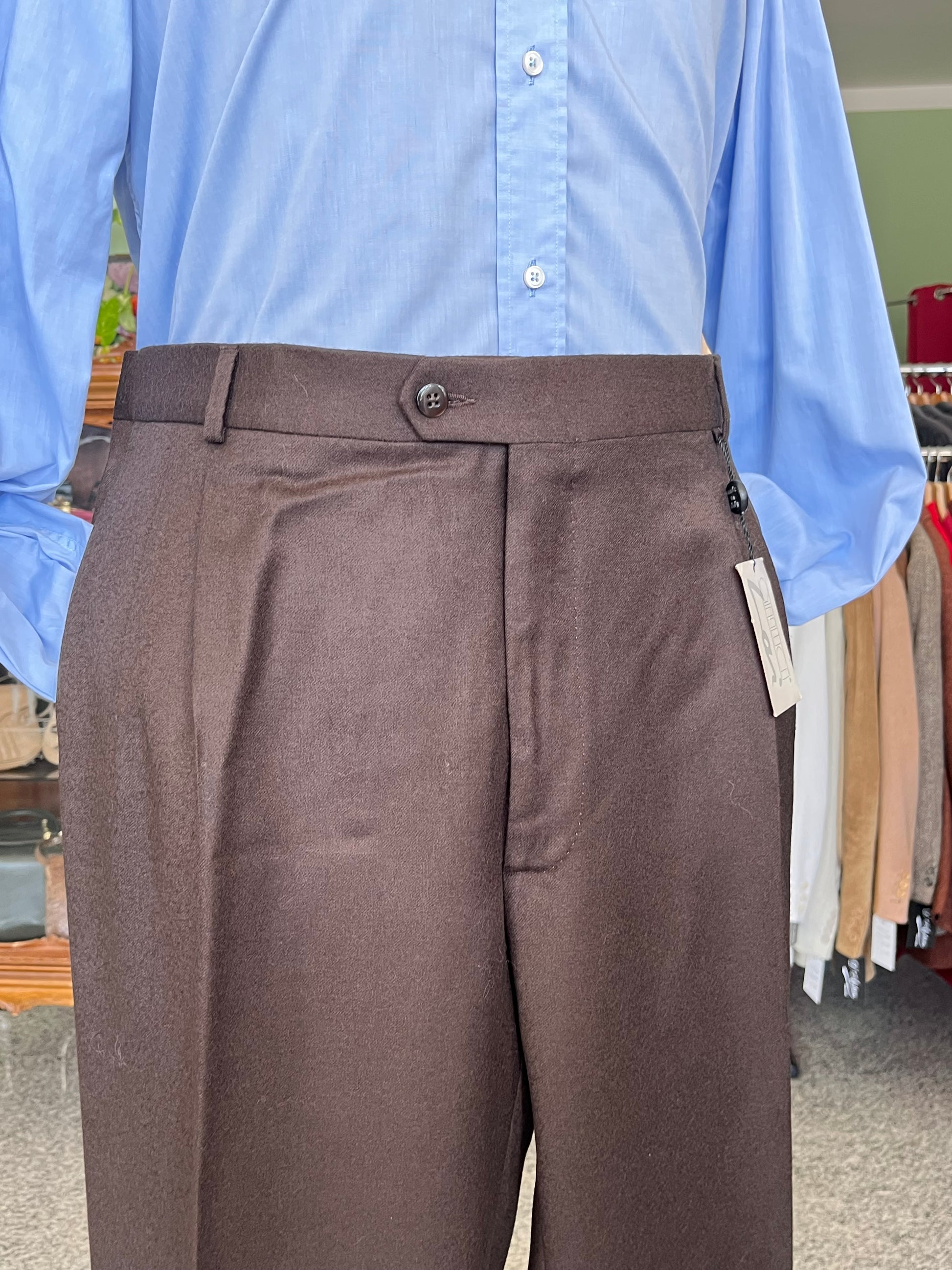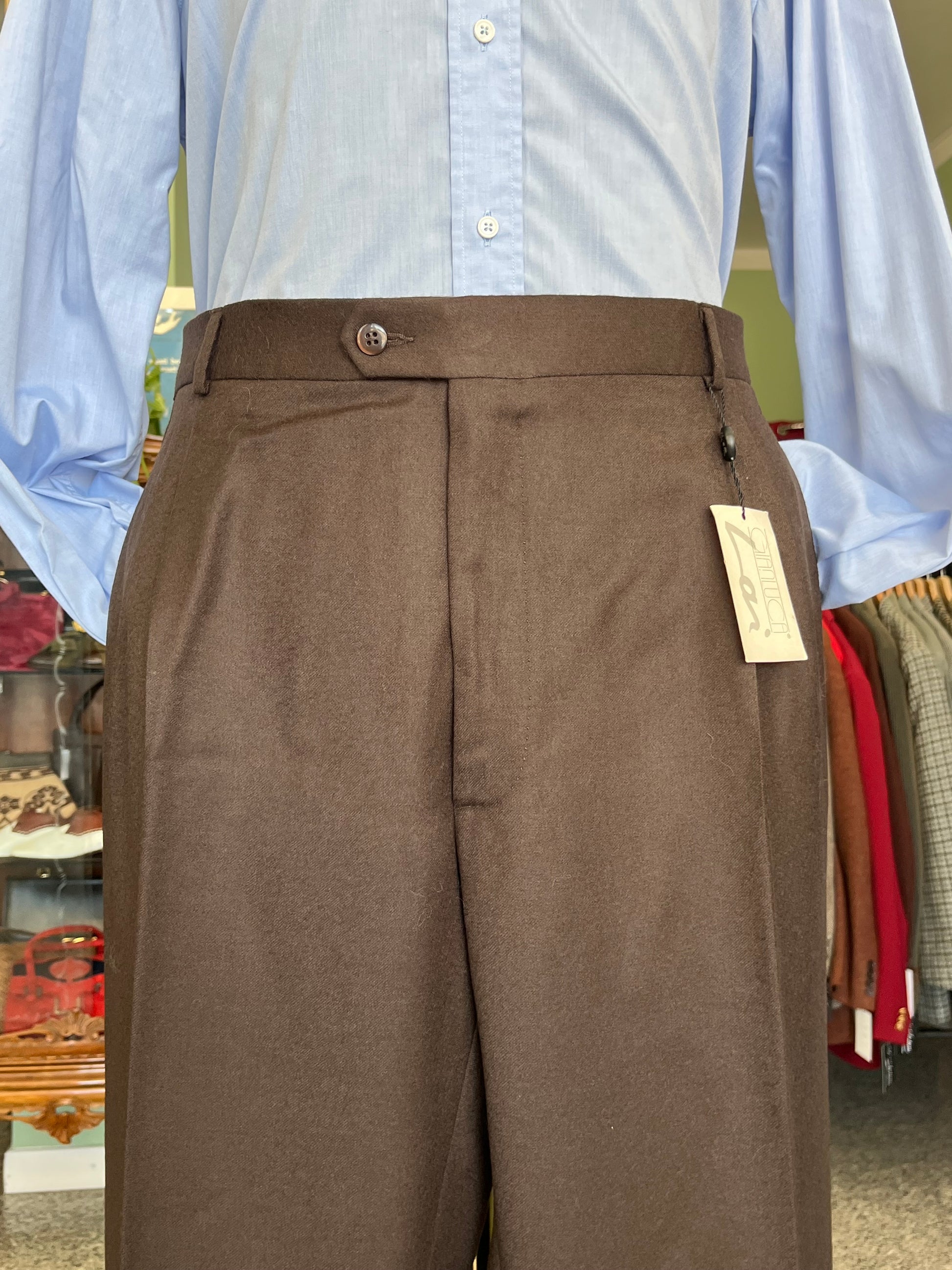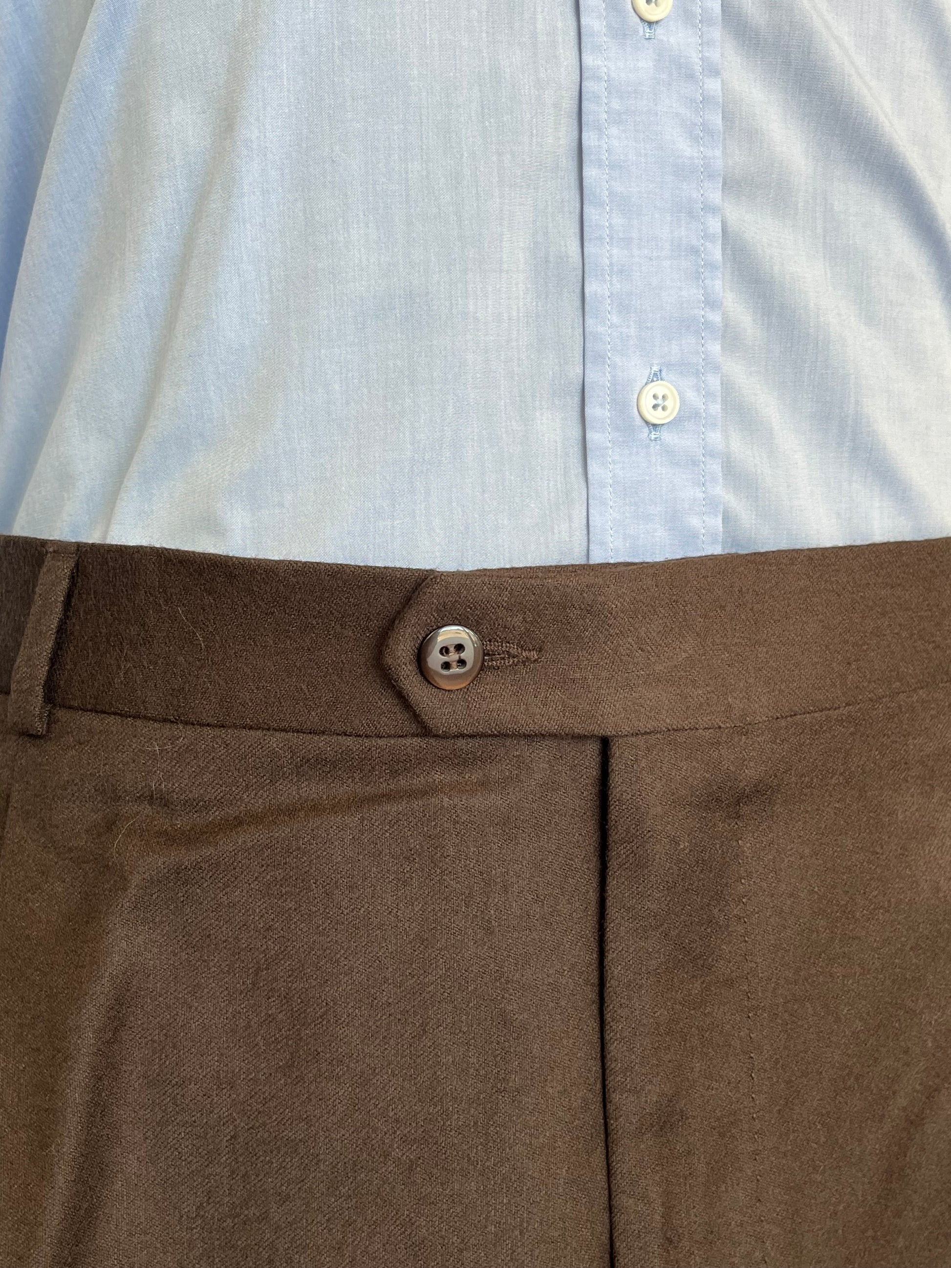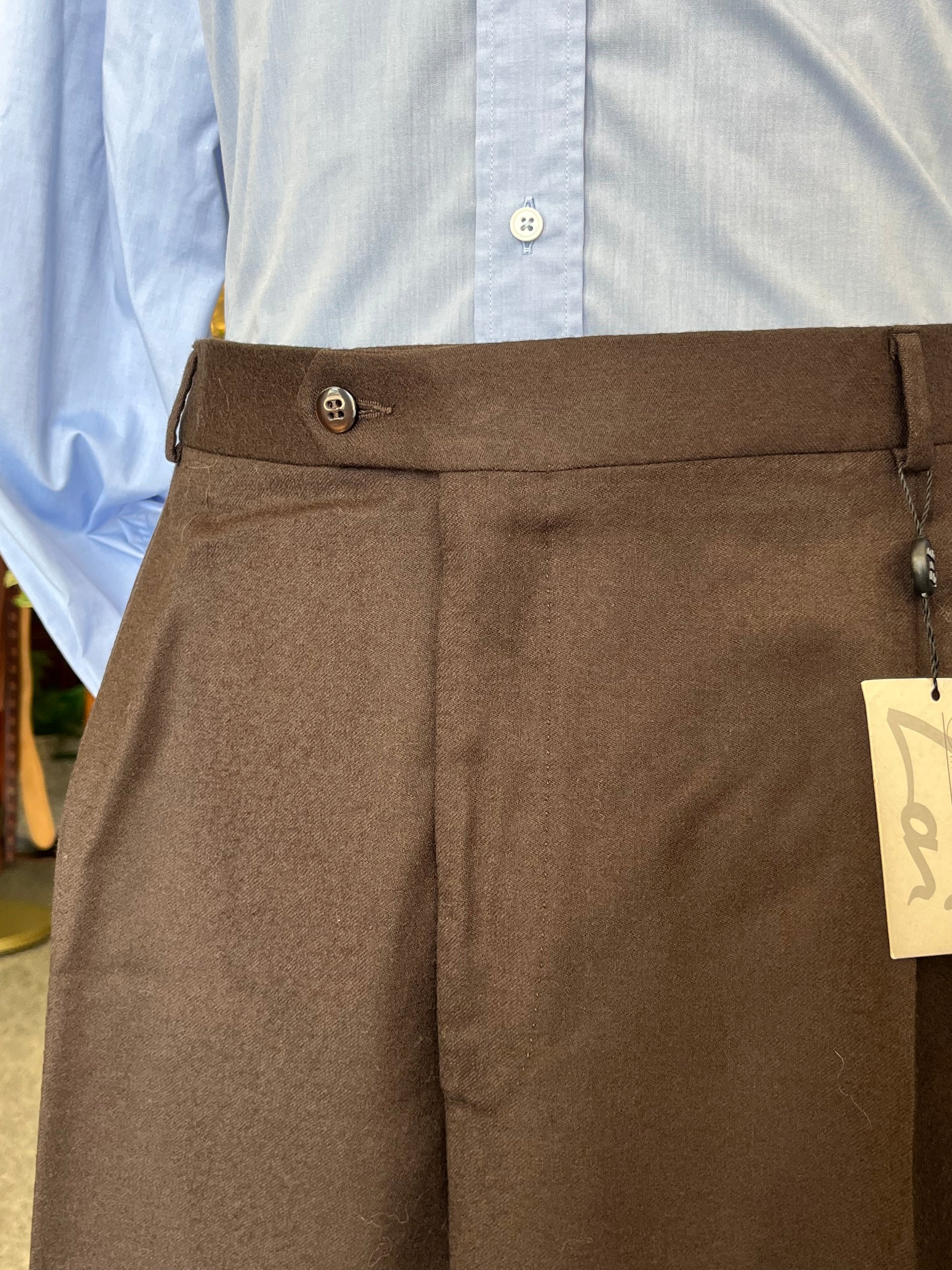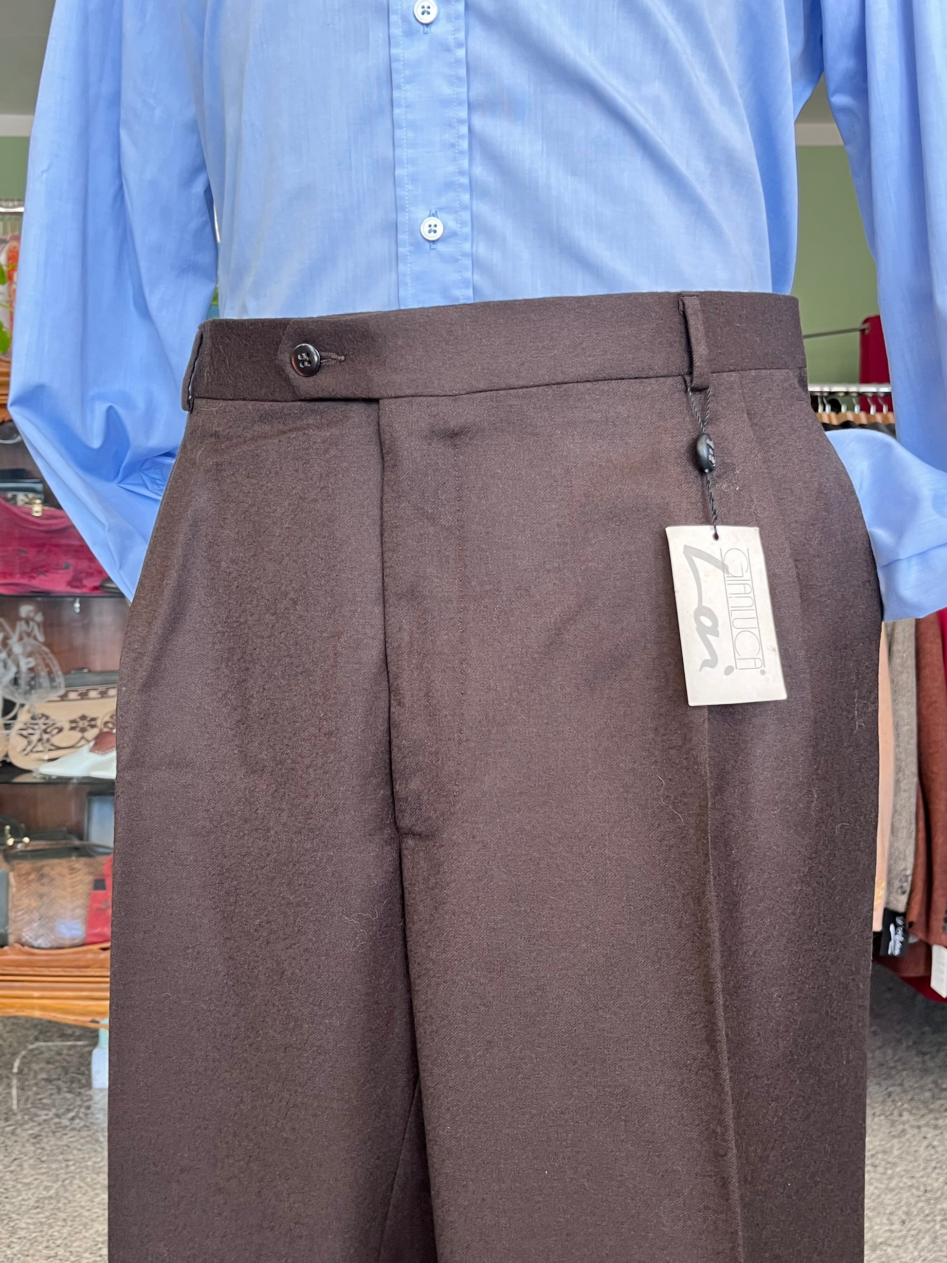 Calzoni anni ‘80 in 100% pura flanella di lana, color caffè.