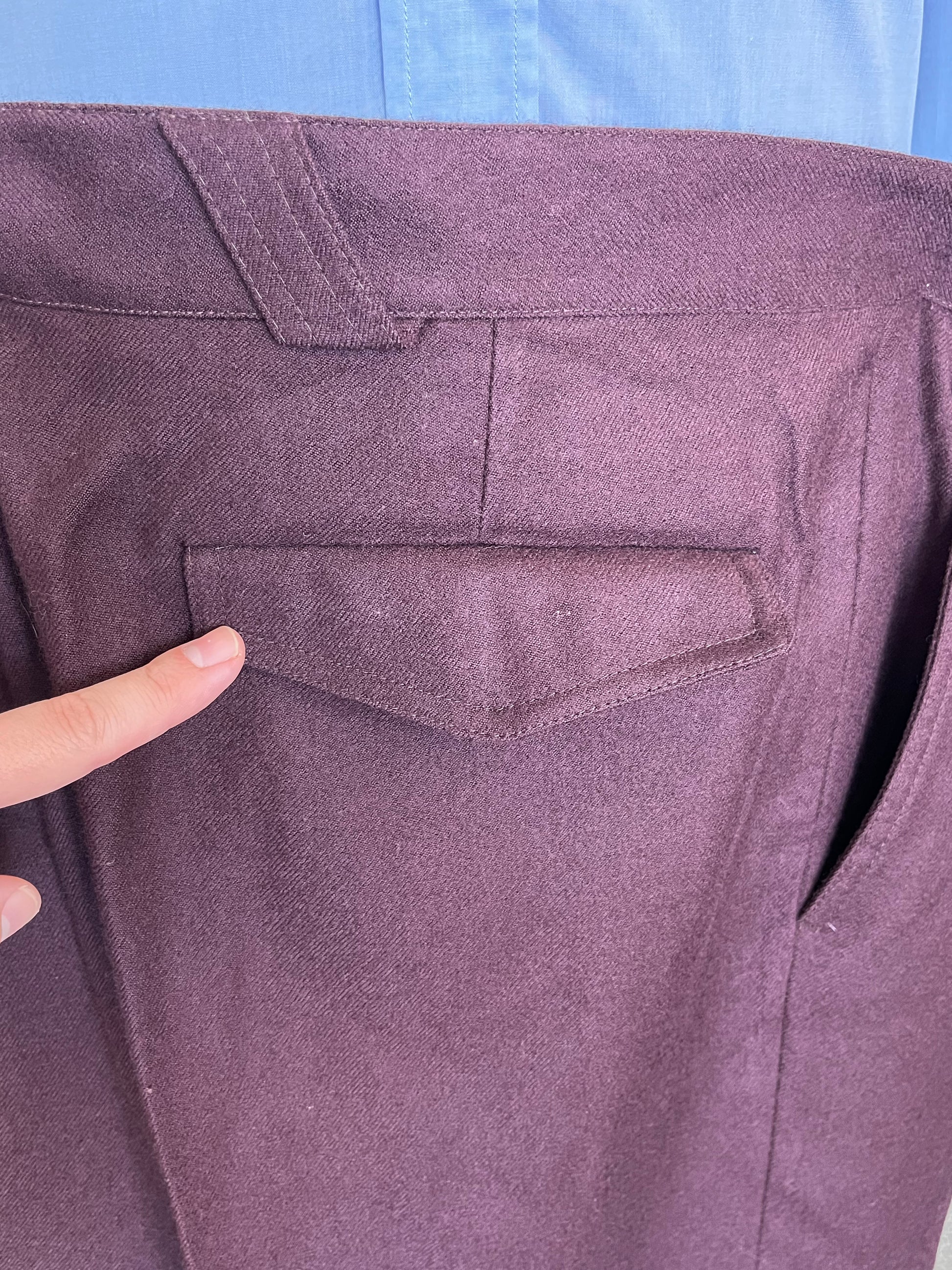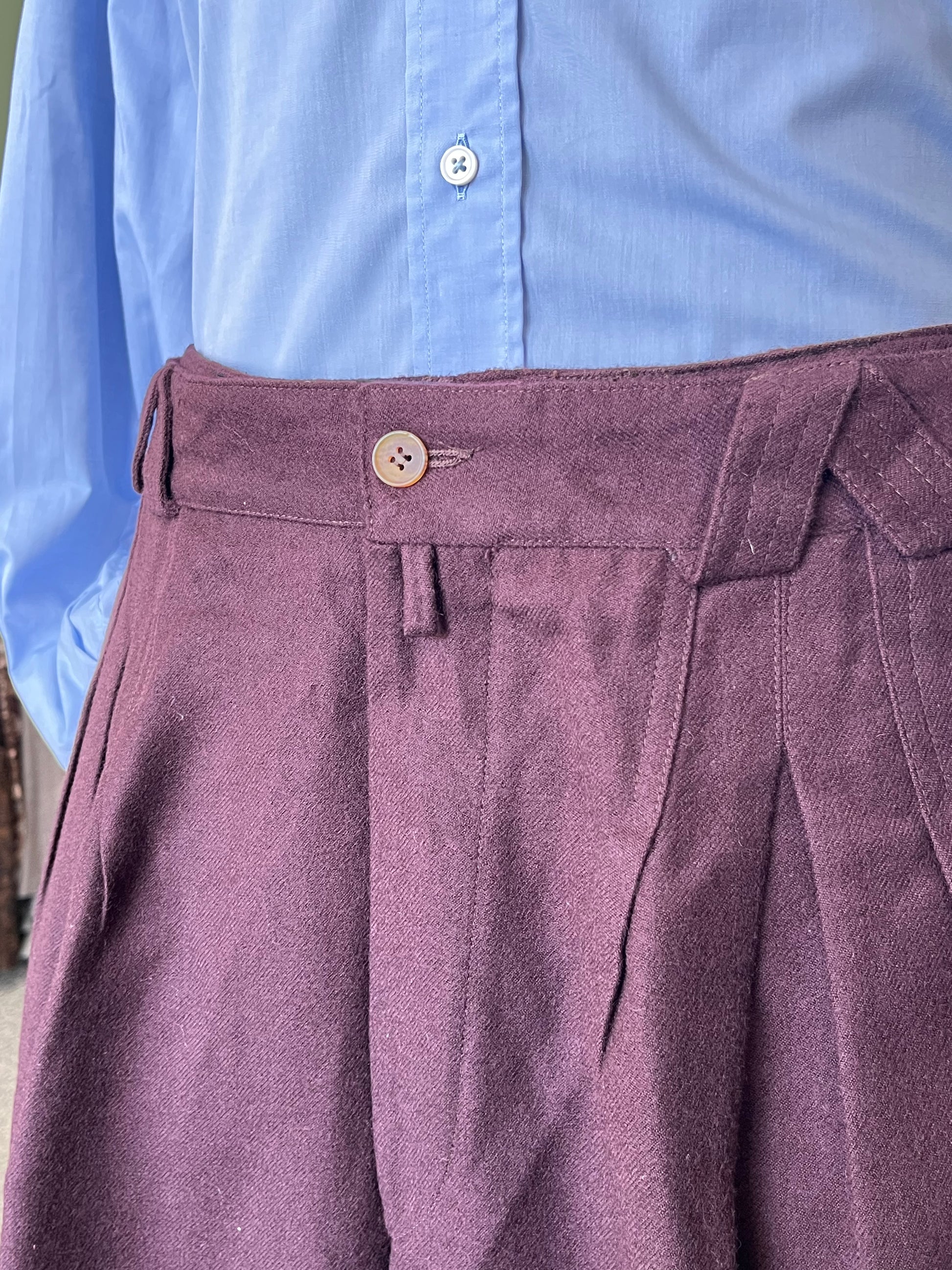 Calzoni anni ‘80 in 100% pura lana, color melanzana.