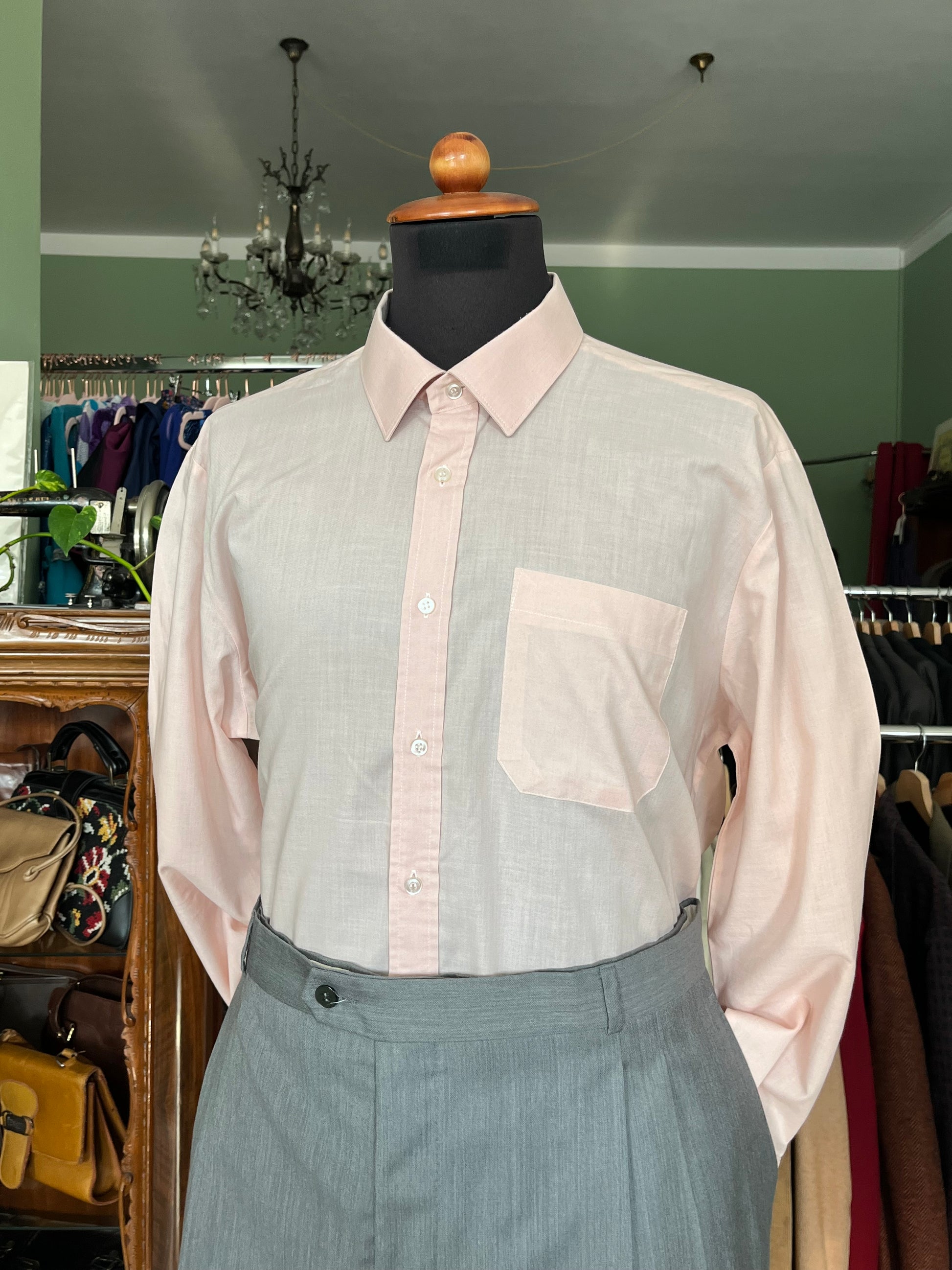Di colore rosa tenue, con collo all’italiana e polsino abbottonato.