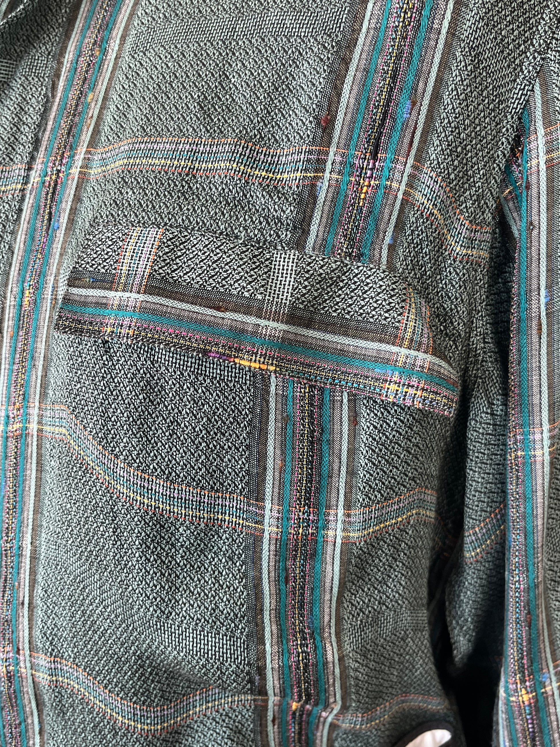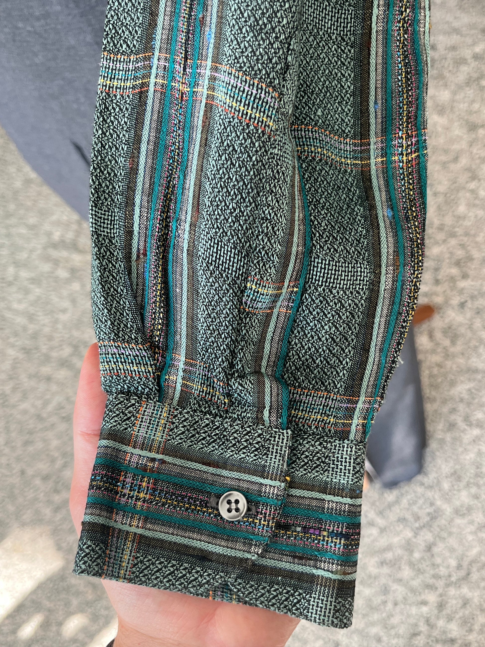 Camicia anni ‘90 in 50% lino, 45% viscosa e 5% cotone, sui toni del verde.