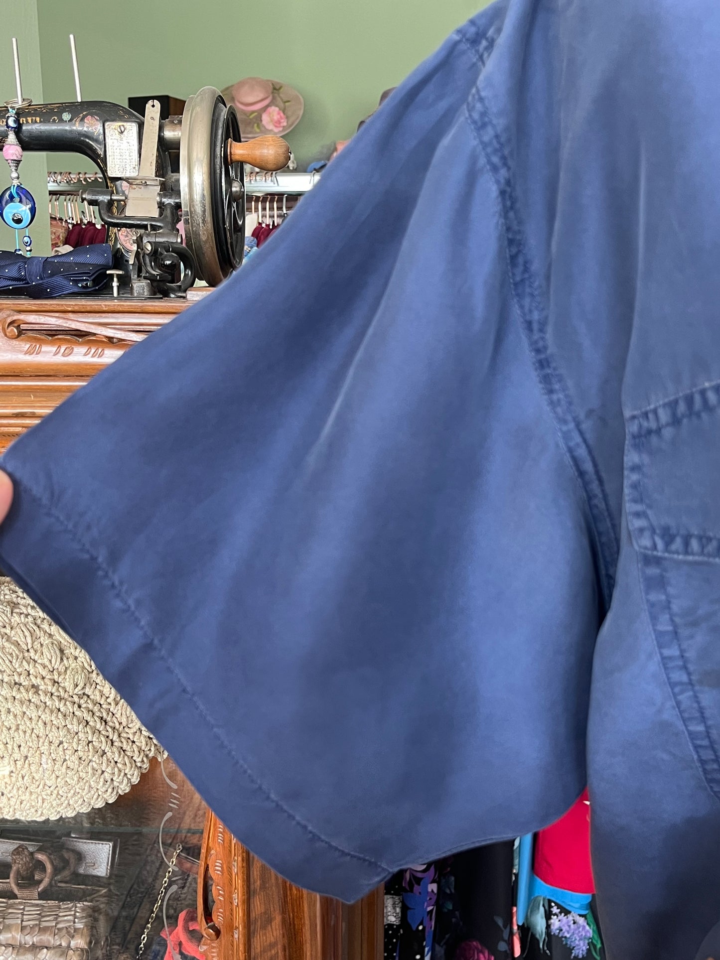 Camicia anni ‘80 a maniche corte in 100% pura seta, di colore blu.