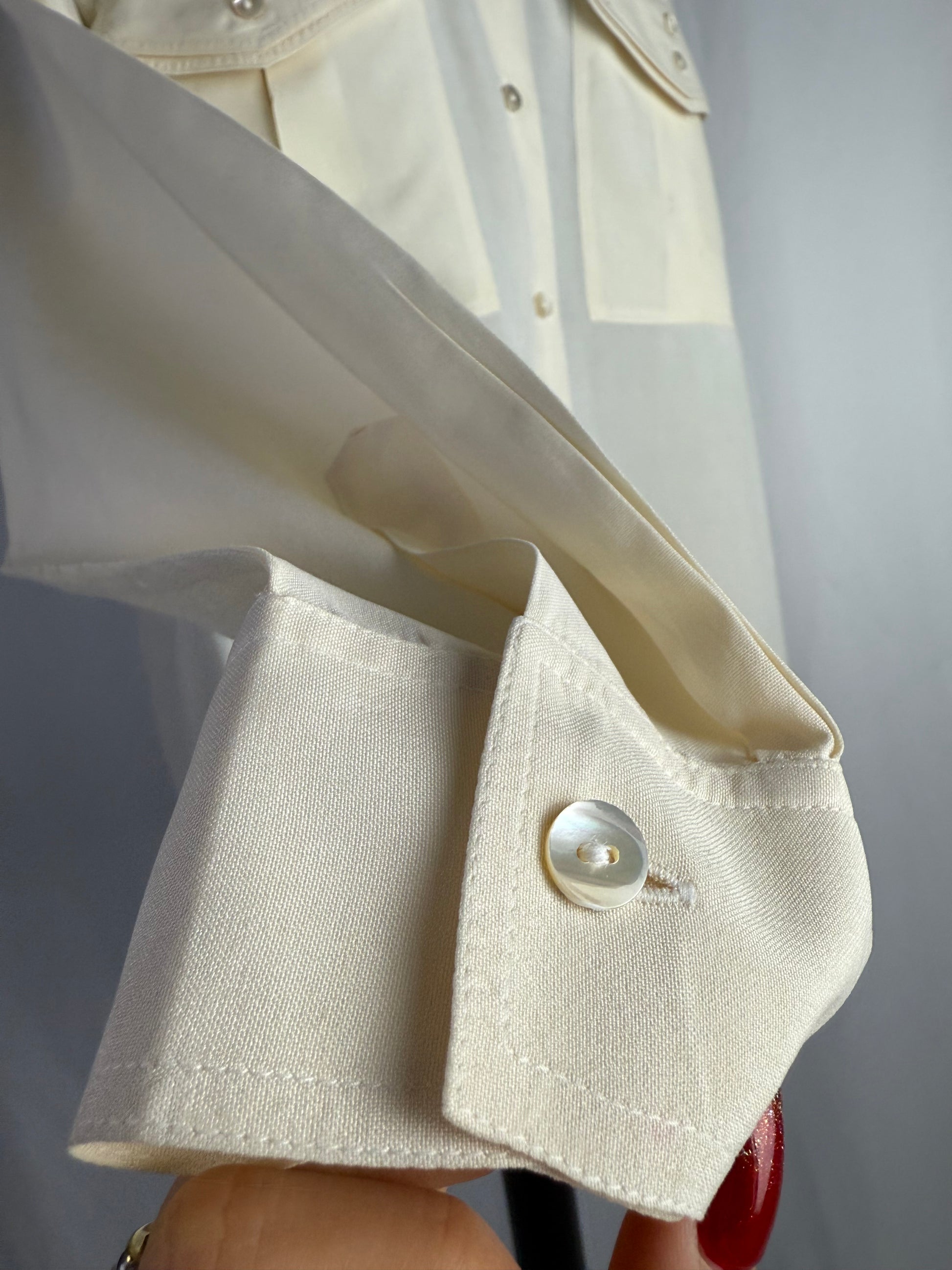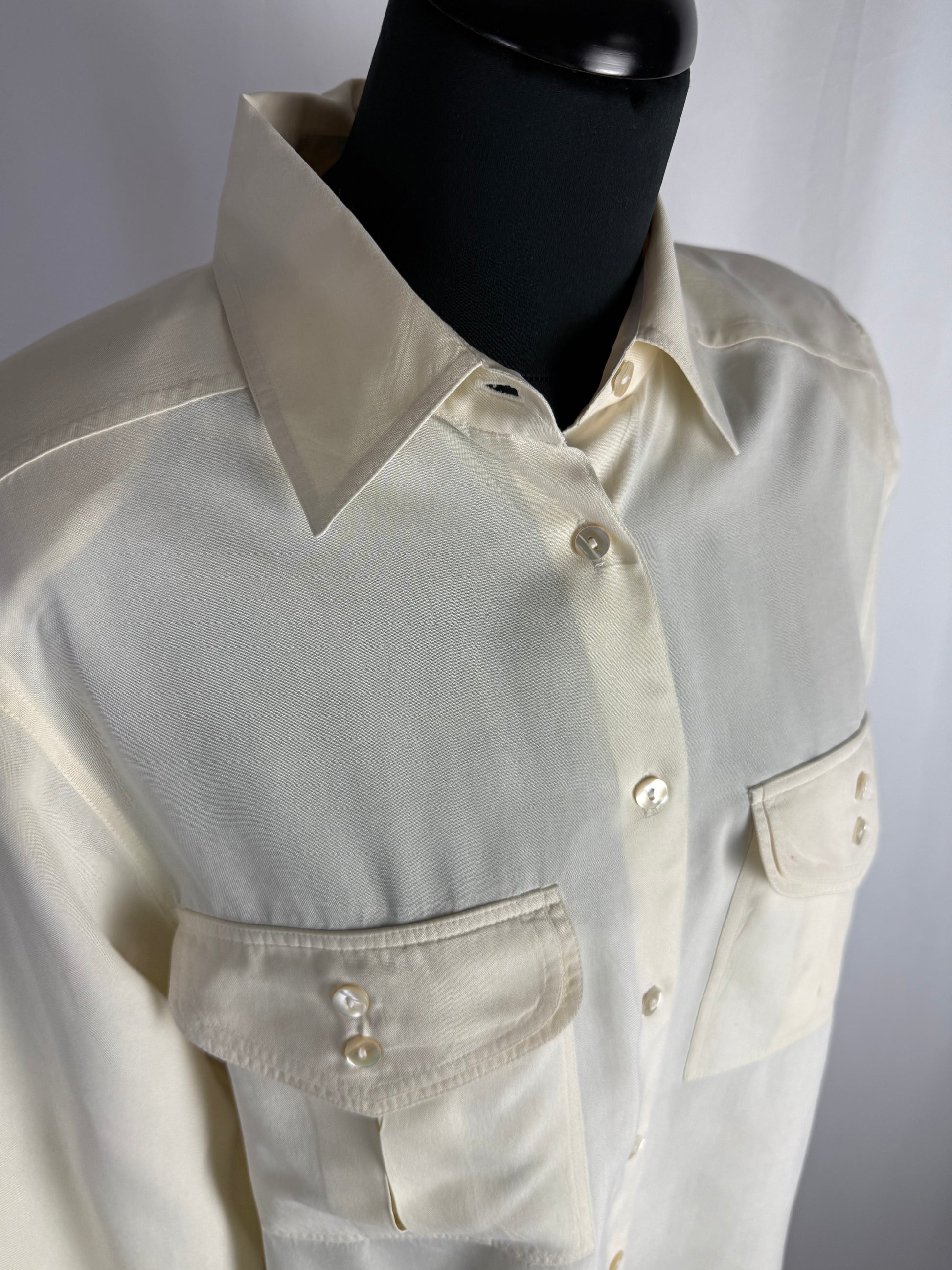 Camicia anni ‘80 color burro, in pura seta morbidissima al tatto.