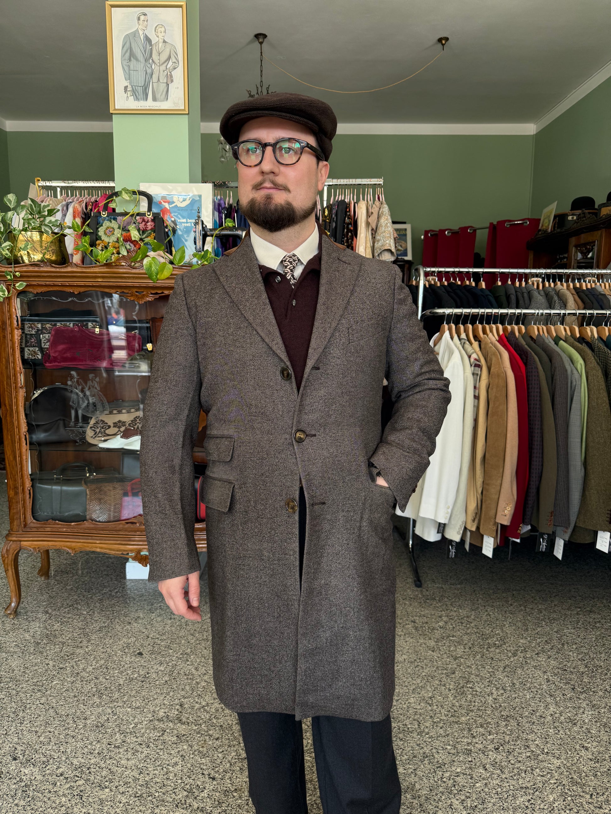 Cappotto anni ‘90 in 100% pura lana color tortora/marrone.