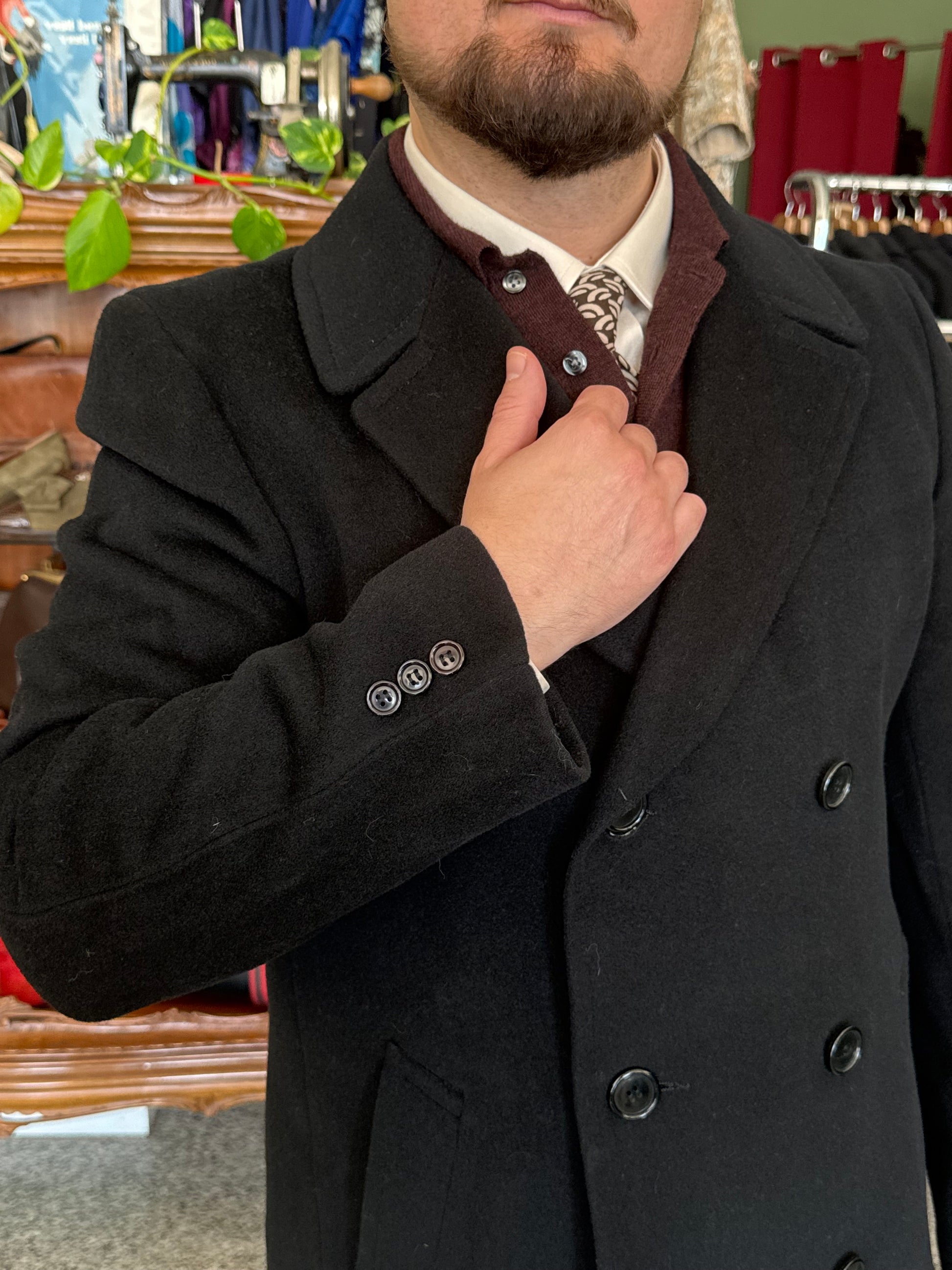 Cappotto anni ‘80 in 100% pura lana colore nero.