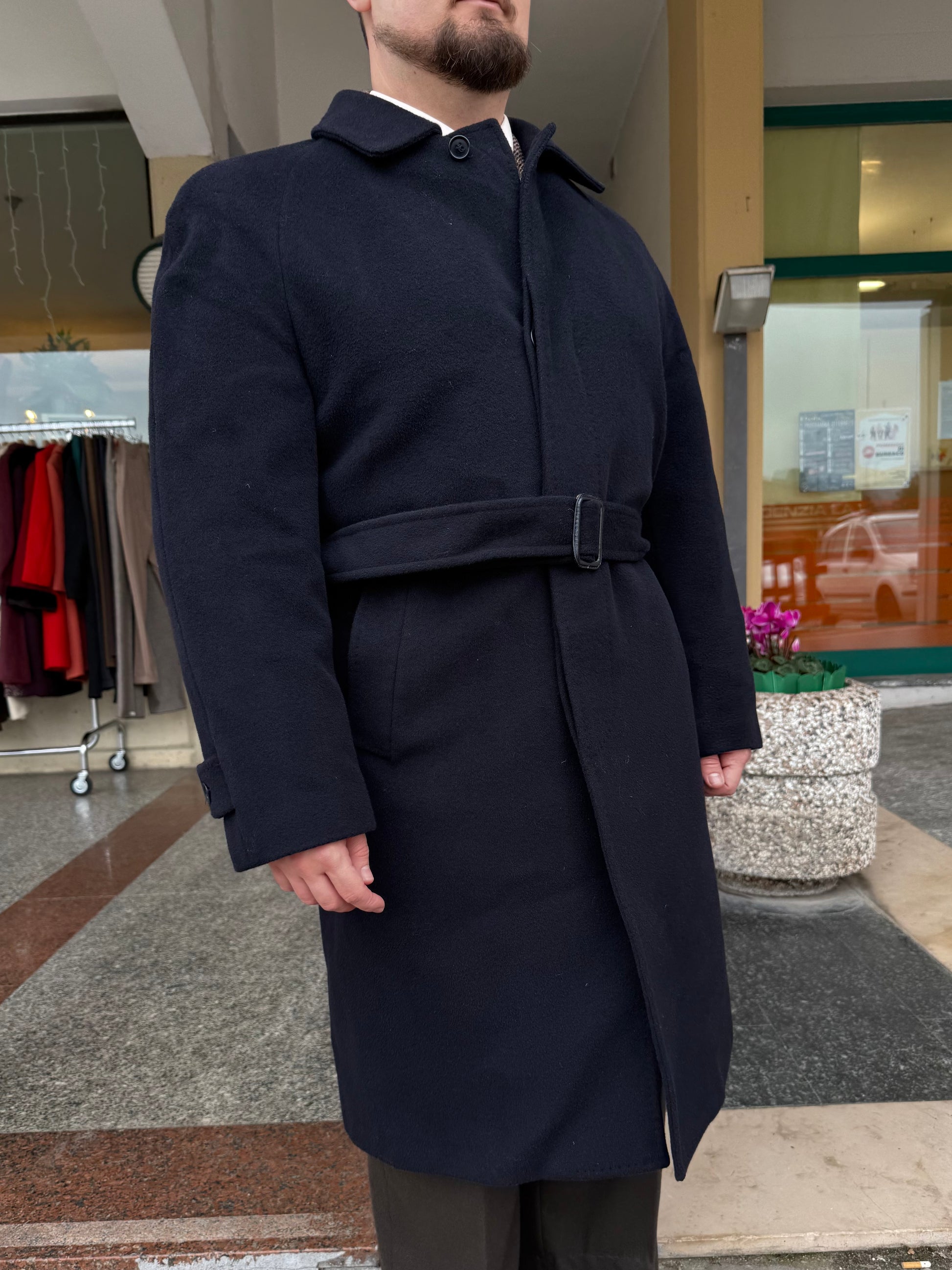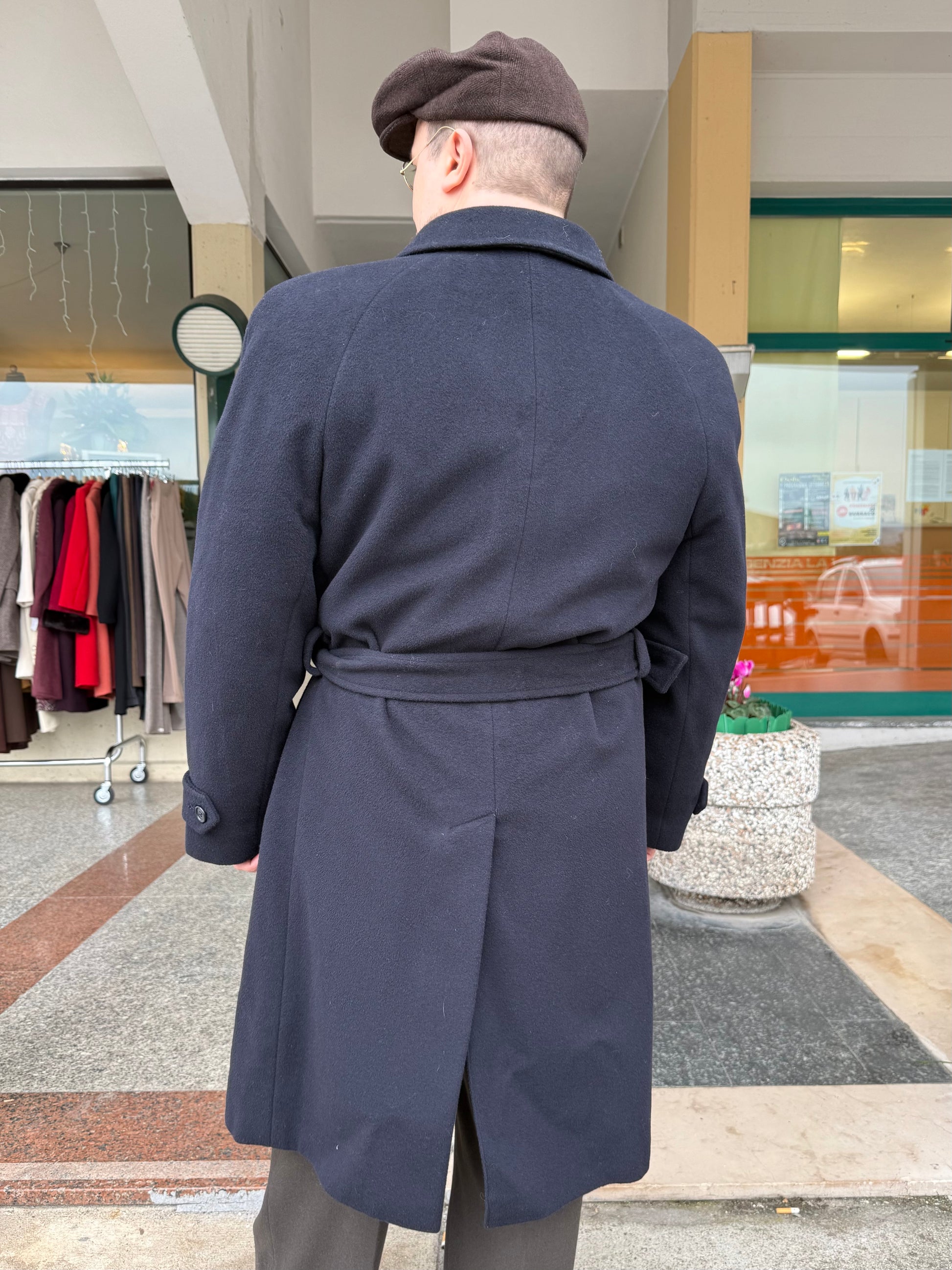 Cappotto anni ‘80 in lana e cashmere color blu notte.