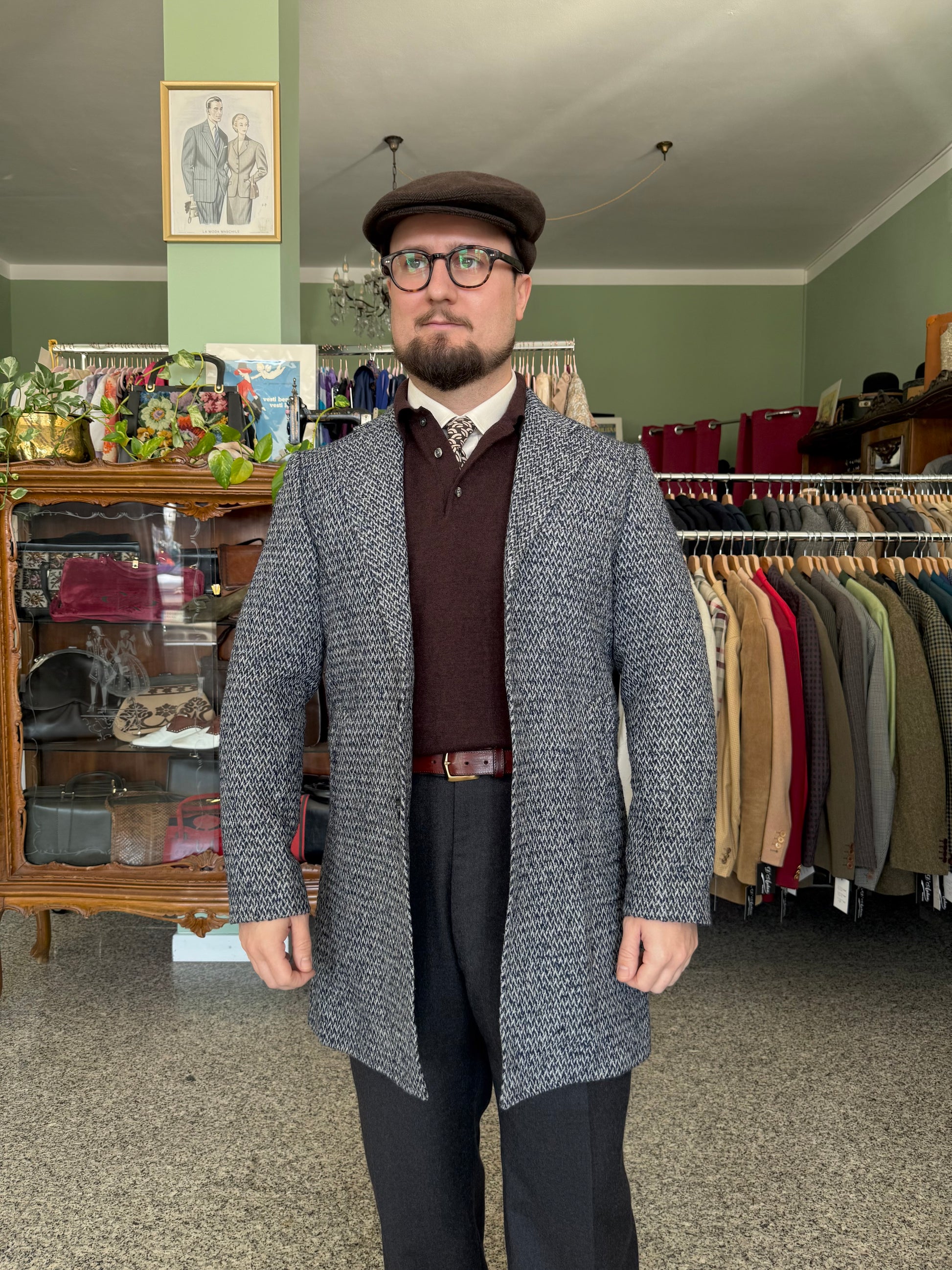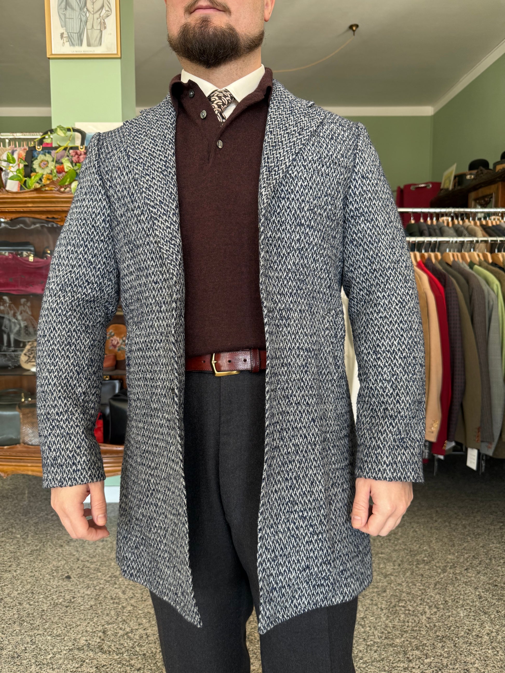 Cappotto anni ‘90 in 100% pura lana color grigio e blu.