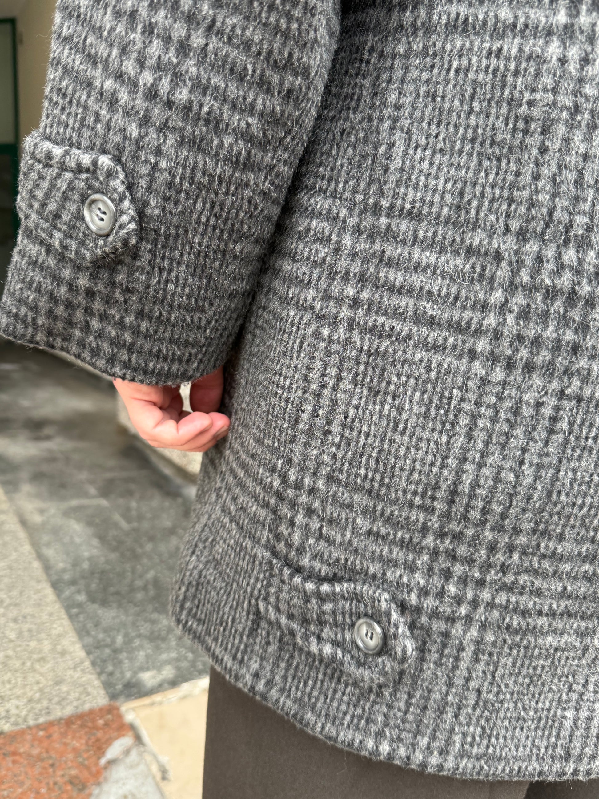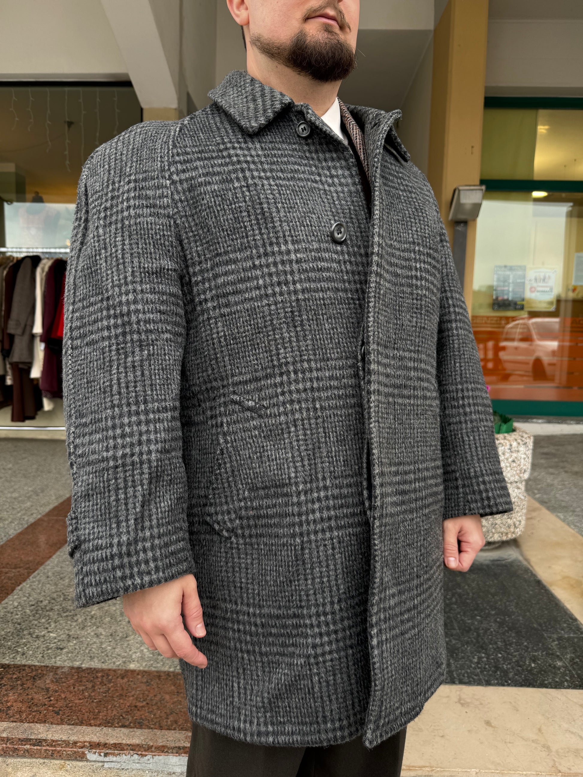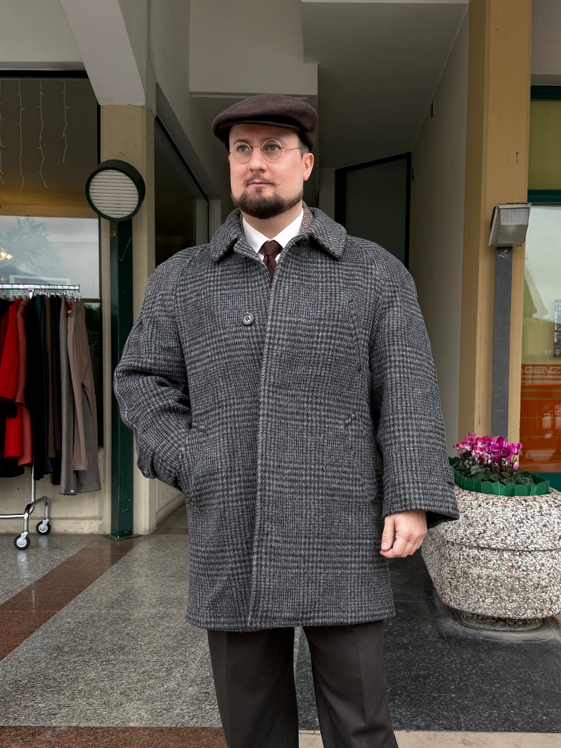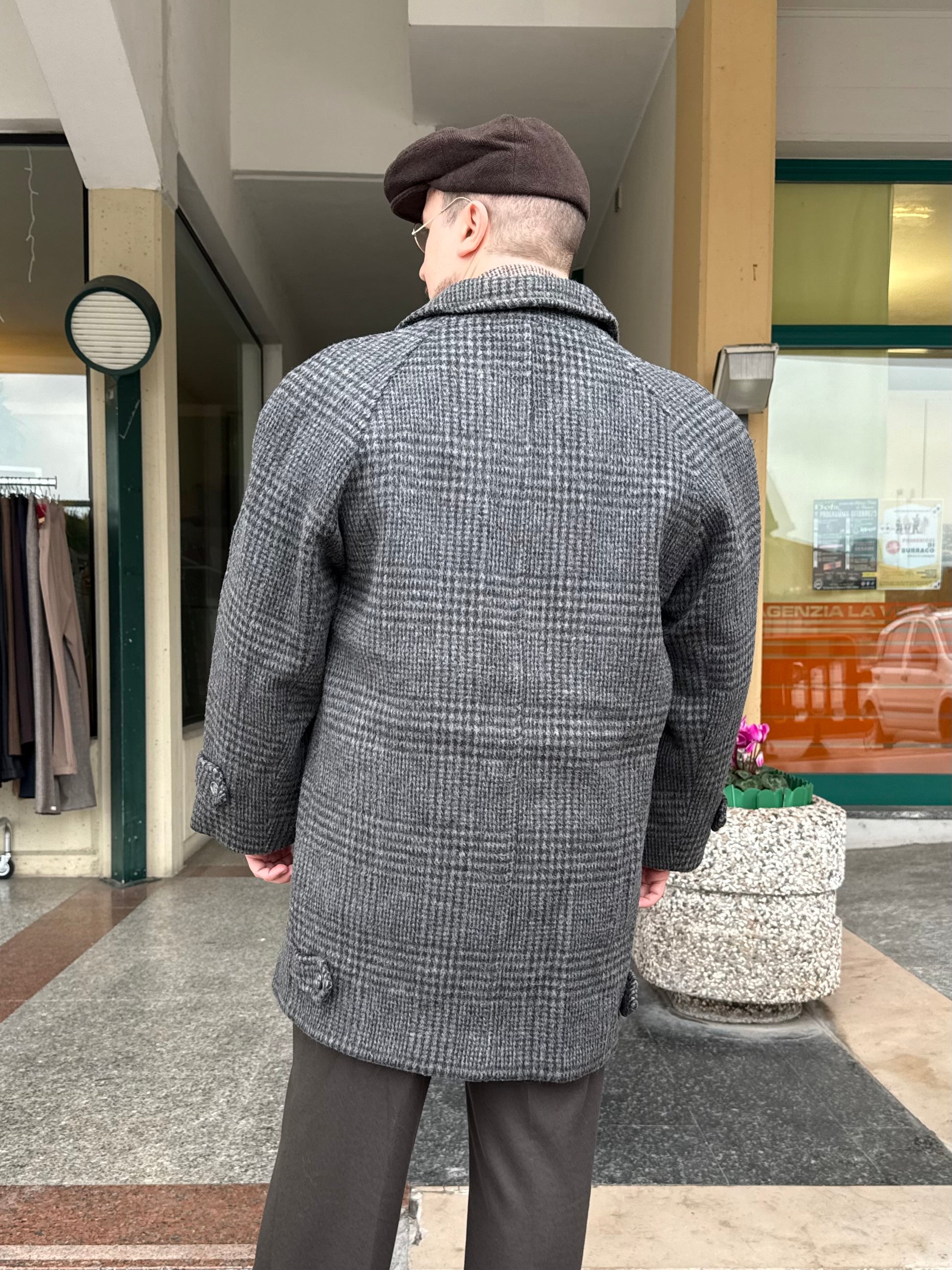 Cappotto anni ‘80 in lana colore grigio e fantasia a quadri.