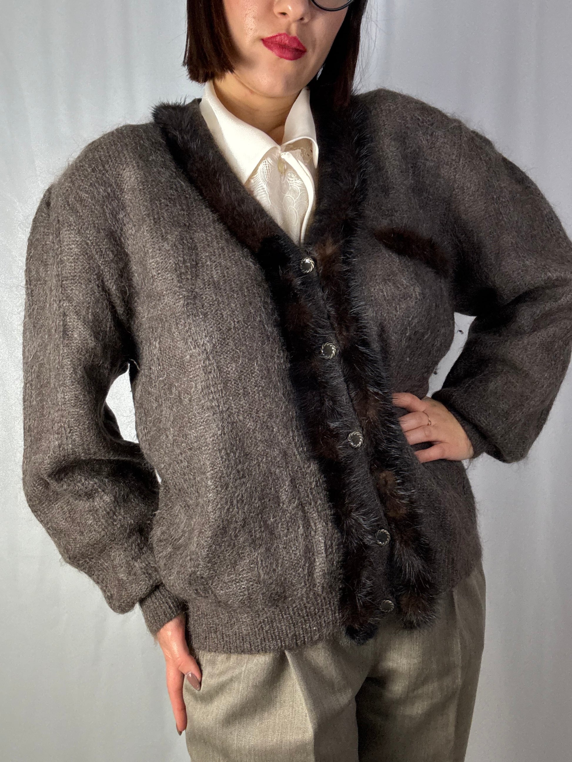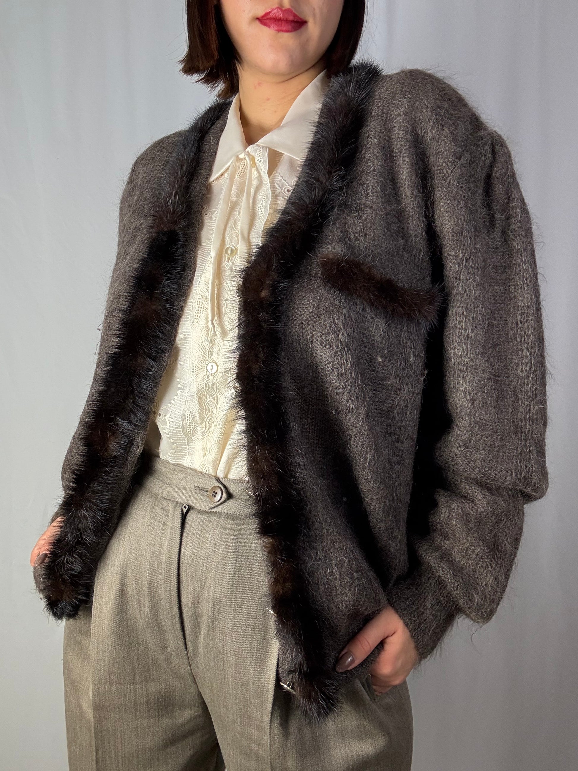 Cardigan Vintage in Mohair con Bordo in Visone – Eleganza Anni ’80 - TG. 48/50