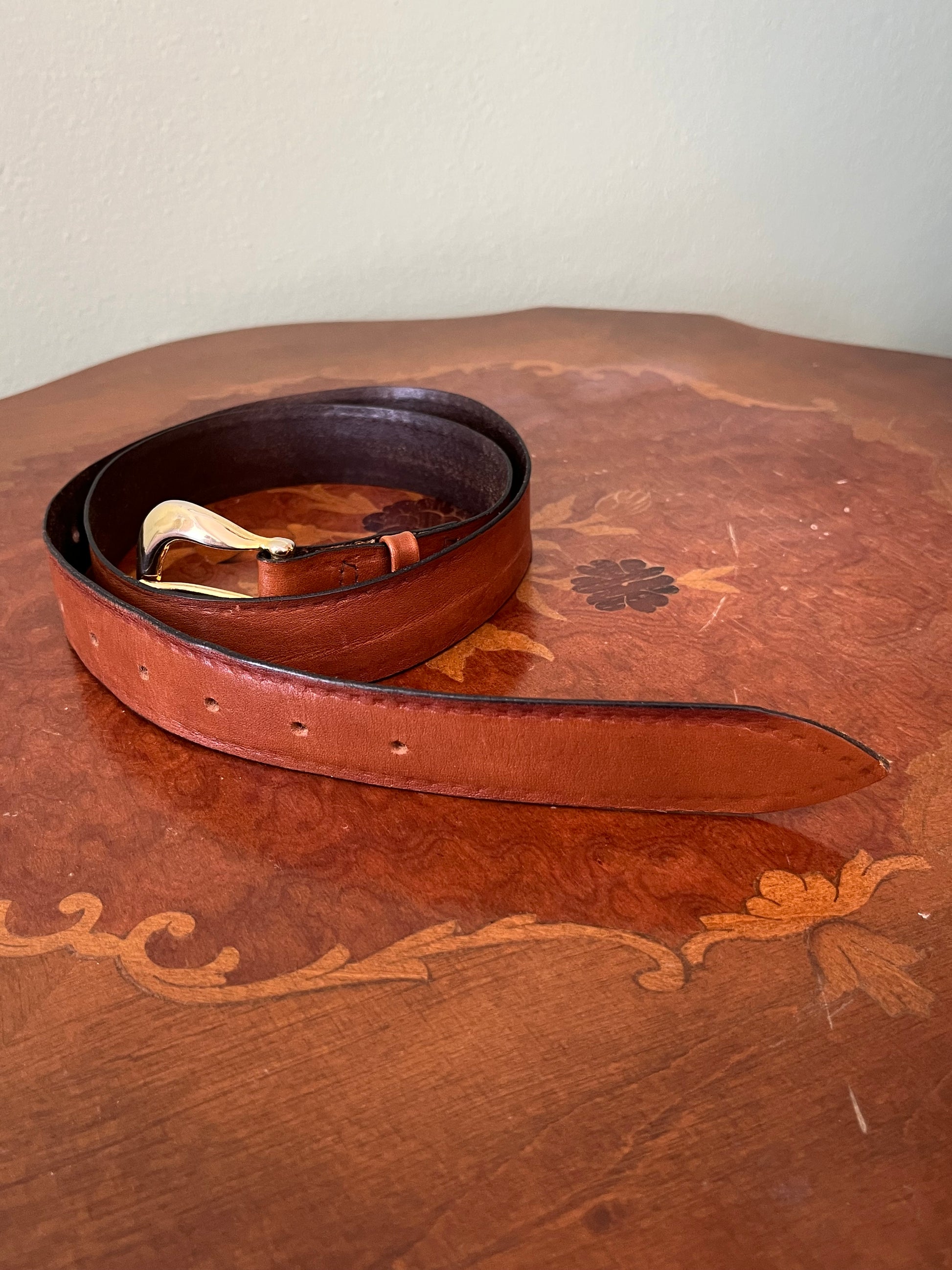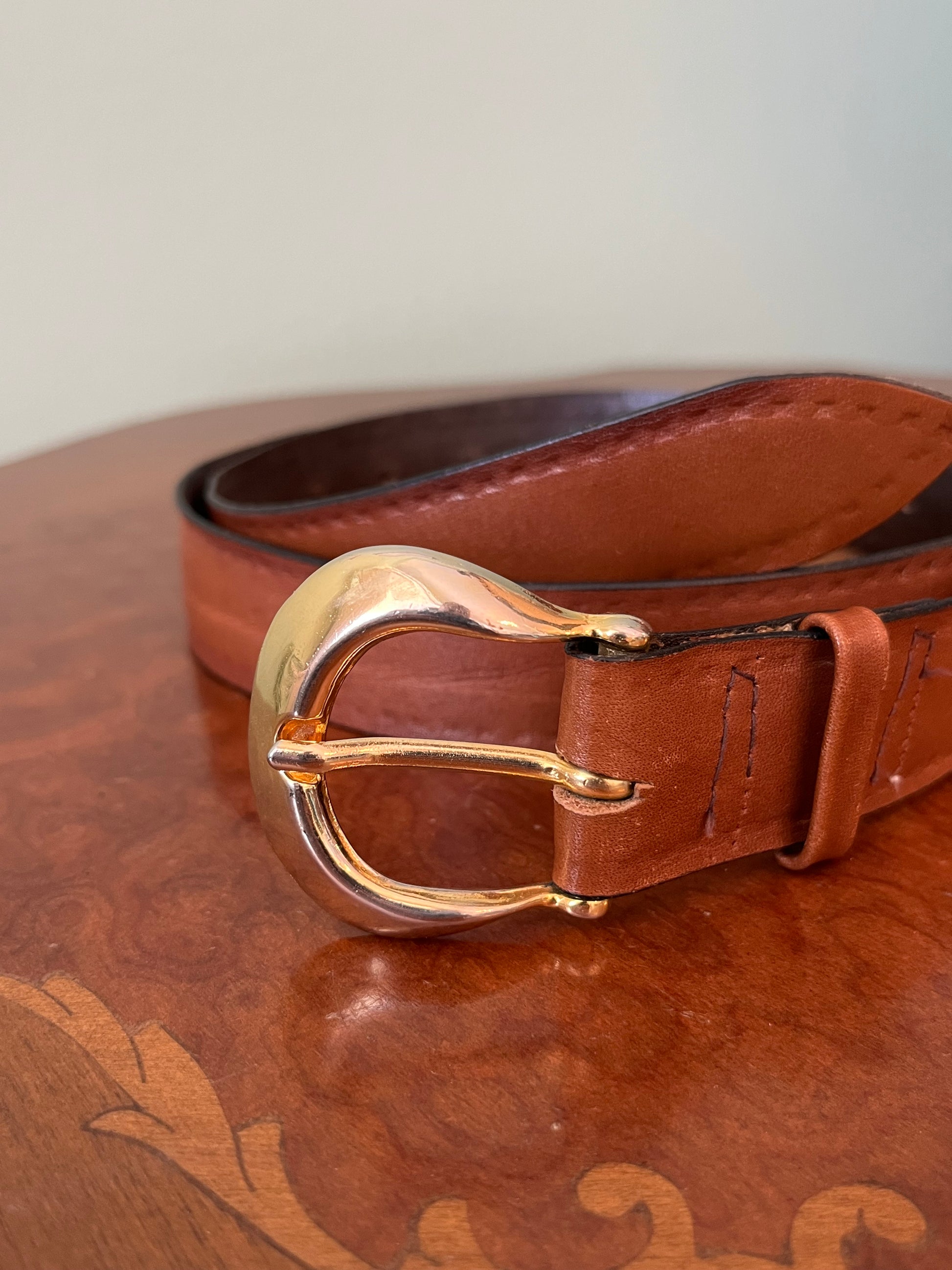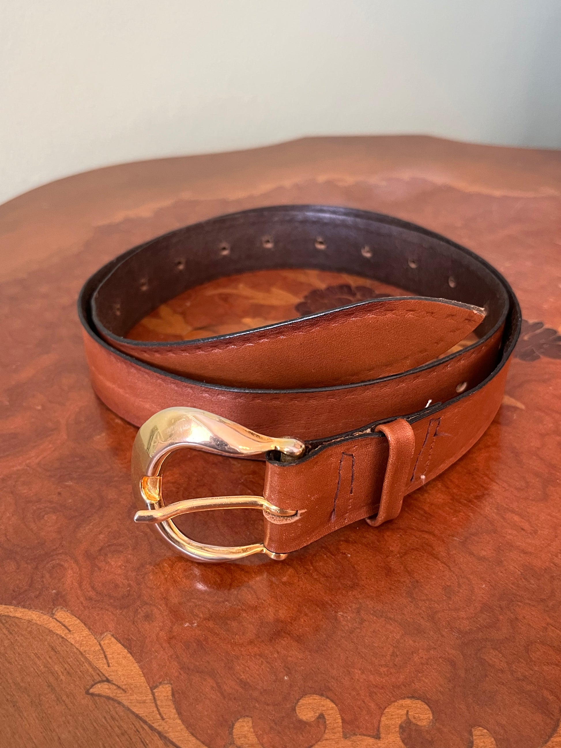 Cintura in vera pelle, colore marrone, con fibbia di colore oro.