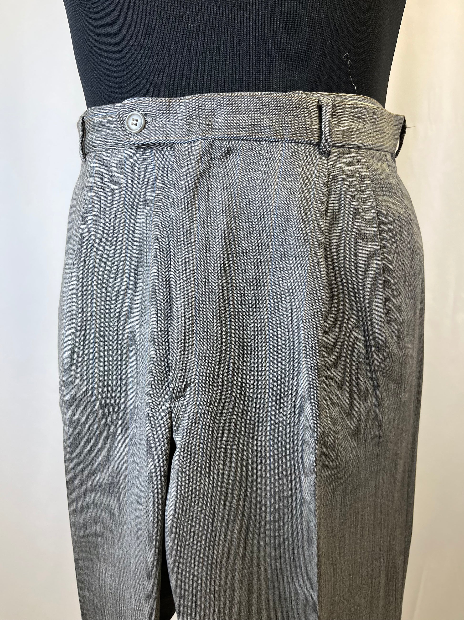 I calzoni hanno un taglio classico, con vita alta, doppia piega in vita ed un taglio dritto.