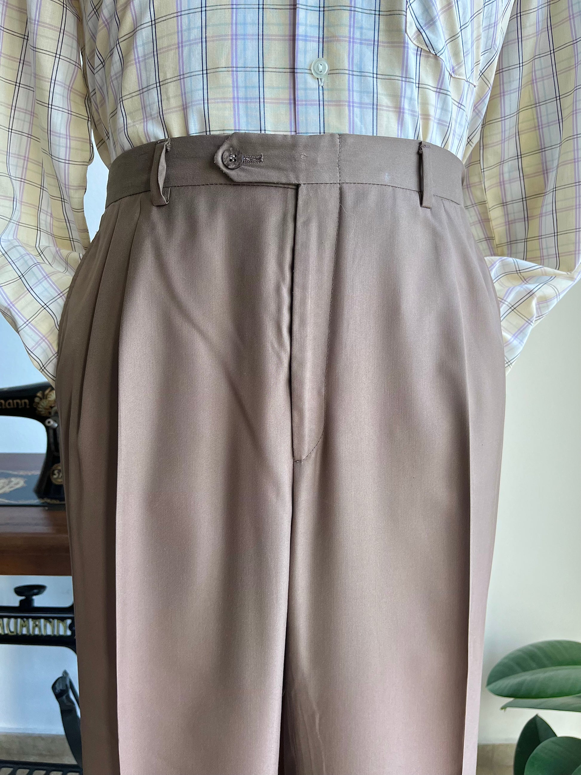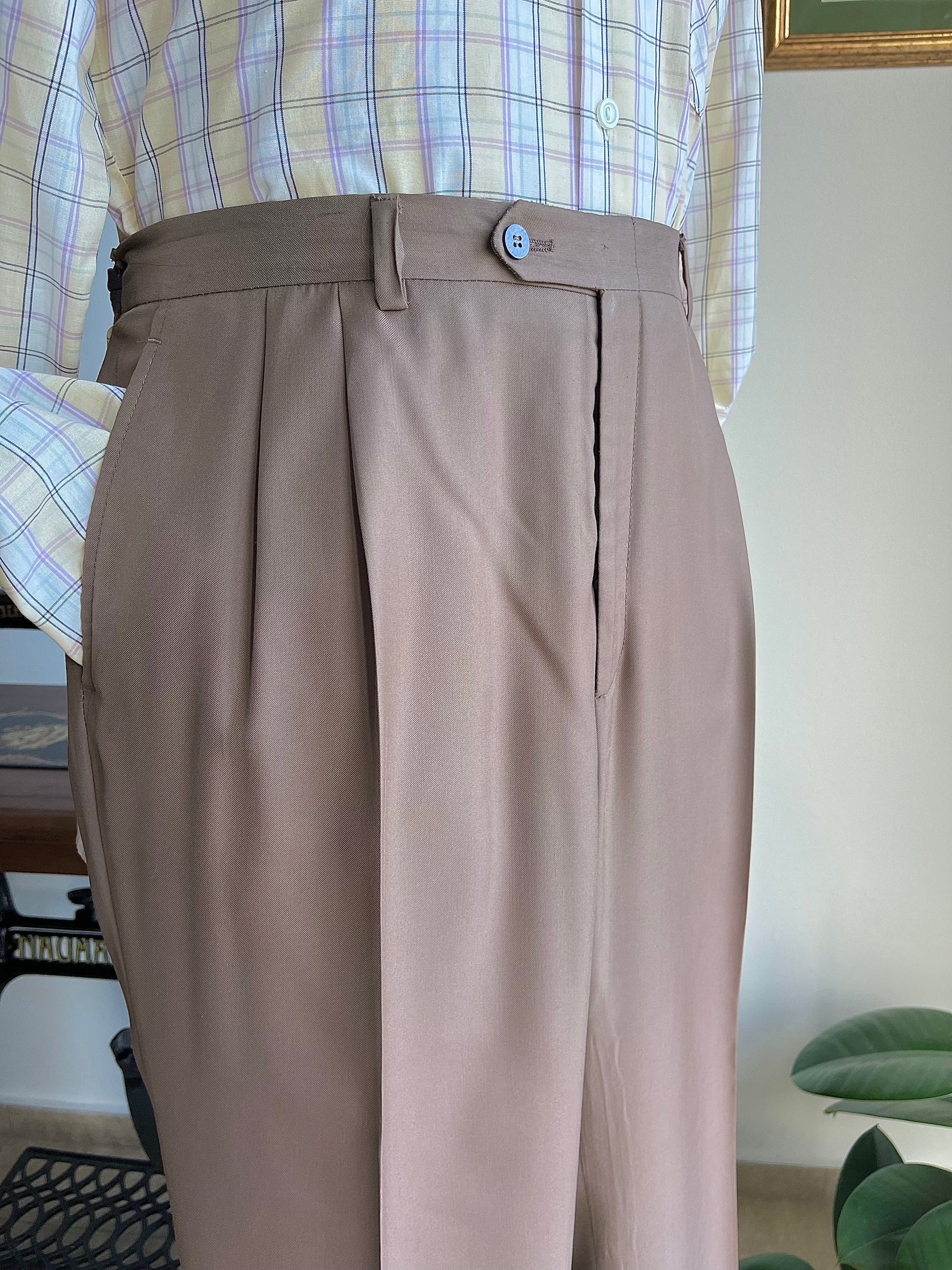 I calzoni hanno un taglio classico, con vita alta, doppia piega in vita ed un taglio dritto.