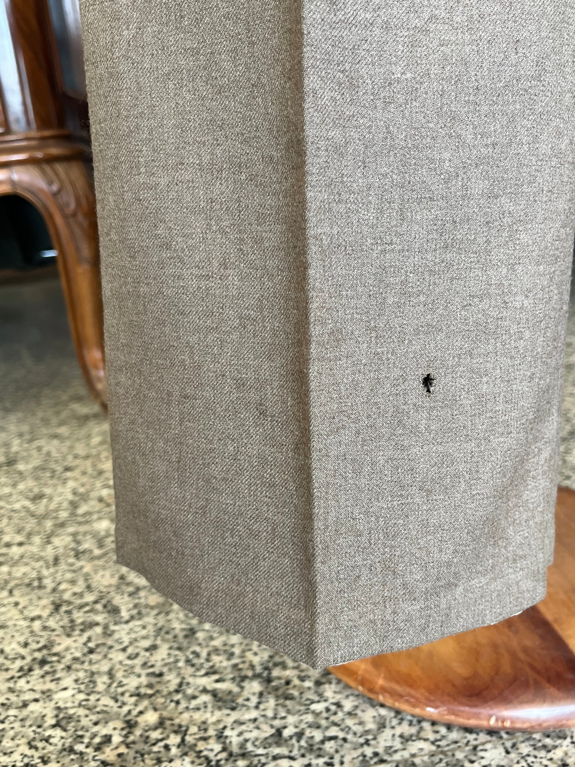 I calzoni del completo presentano un piccolo buco a circa 10 cm dal fondo, facilmente riparabile o nascondibile facendo l’orlo più corto (il prezzo ne tiene conto).