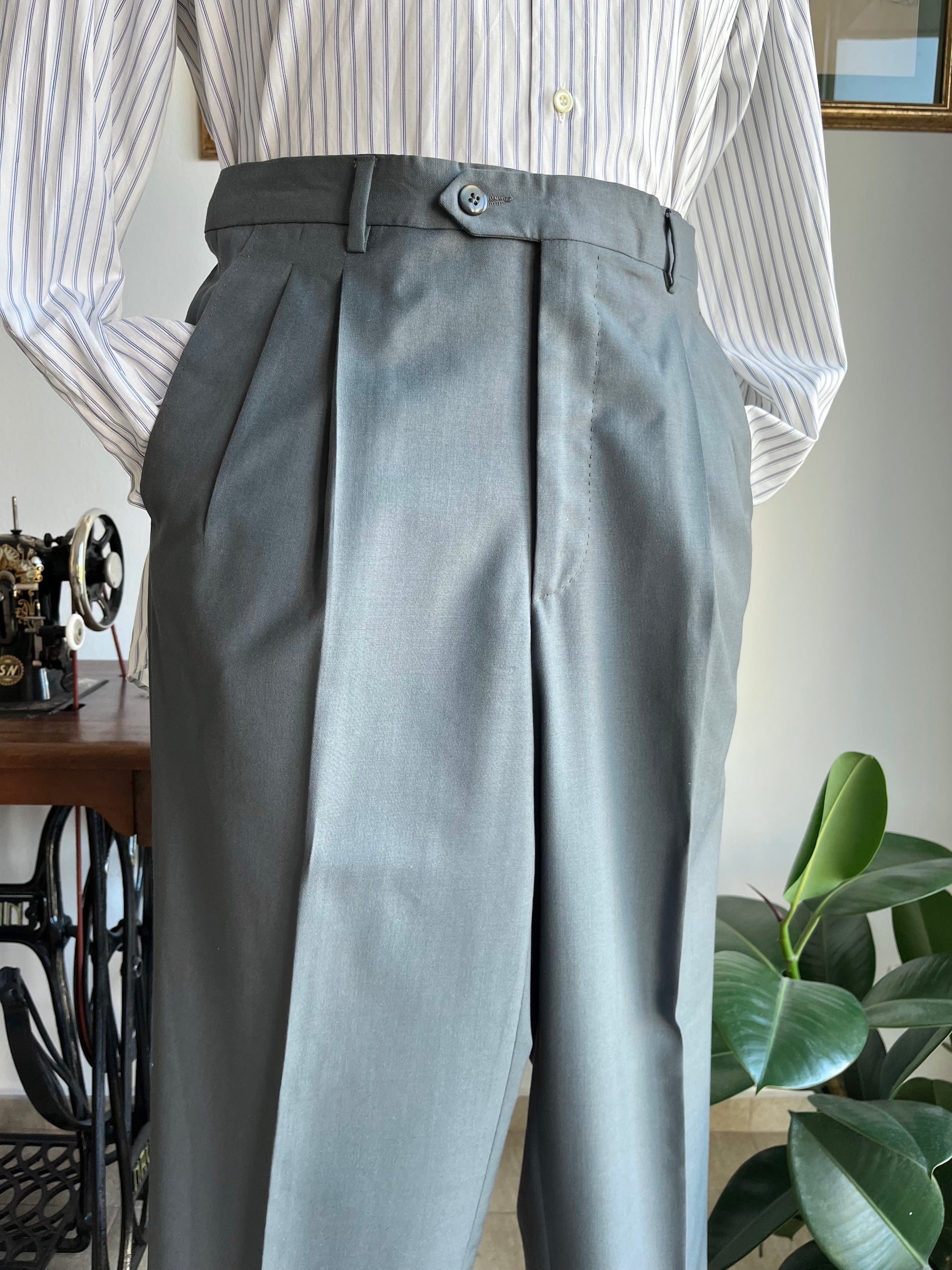 I calzoni hanno un taglio classico, con vita alta, doppia piega in vita ed un taglio dritto.