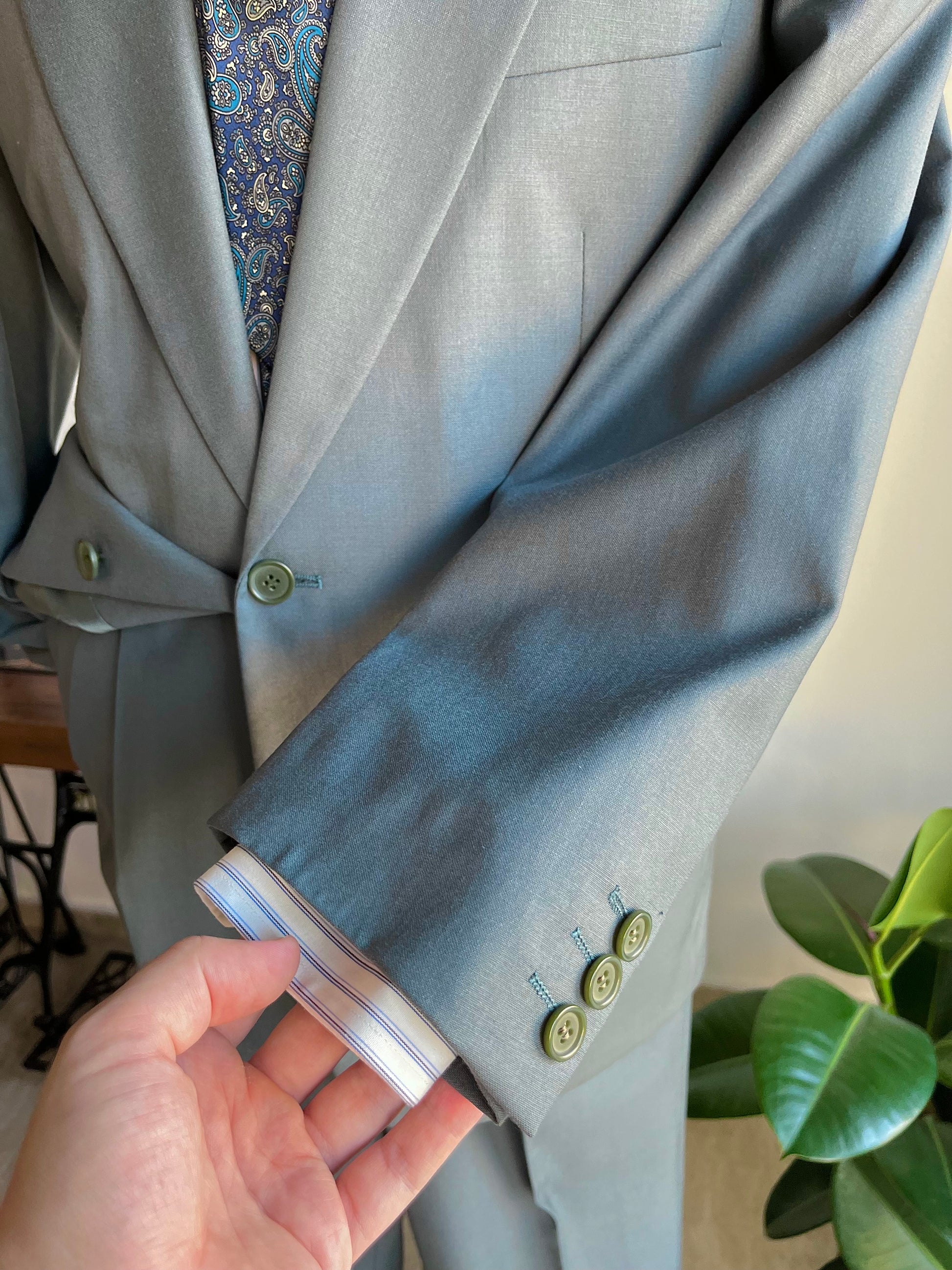 Completo anni ‘80 in puro fresco di lana, color azzurro Tiffany.