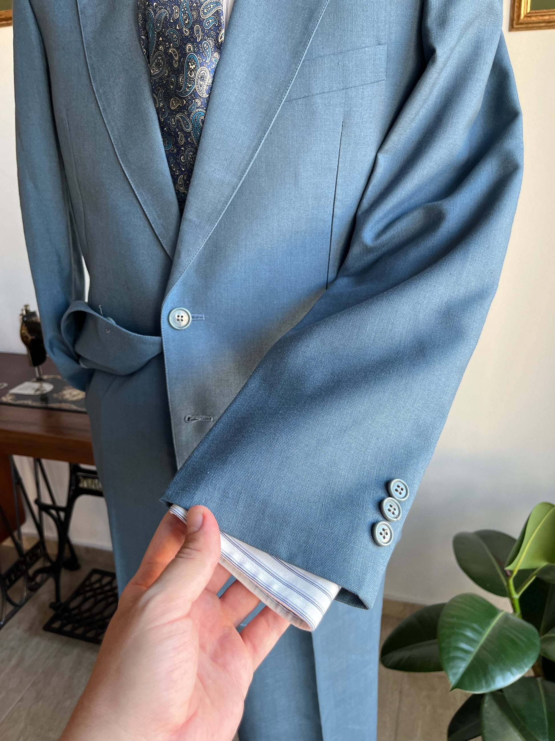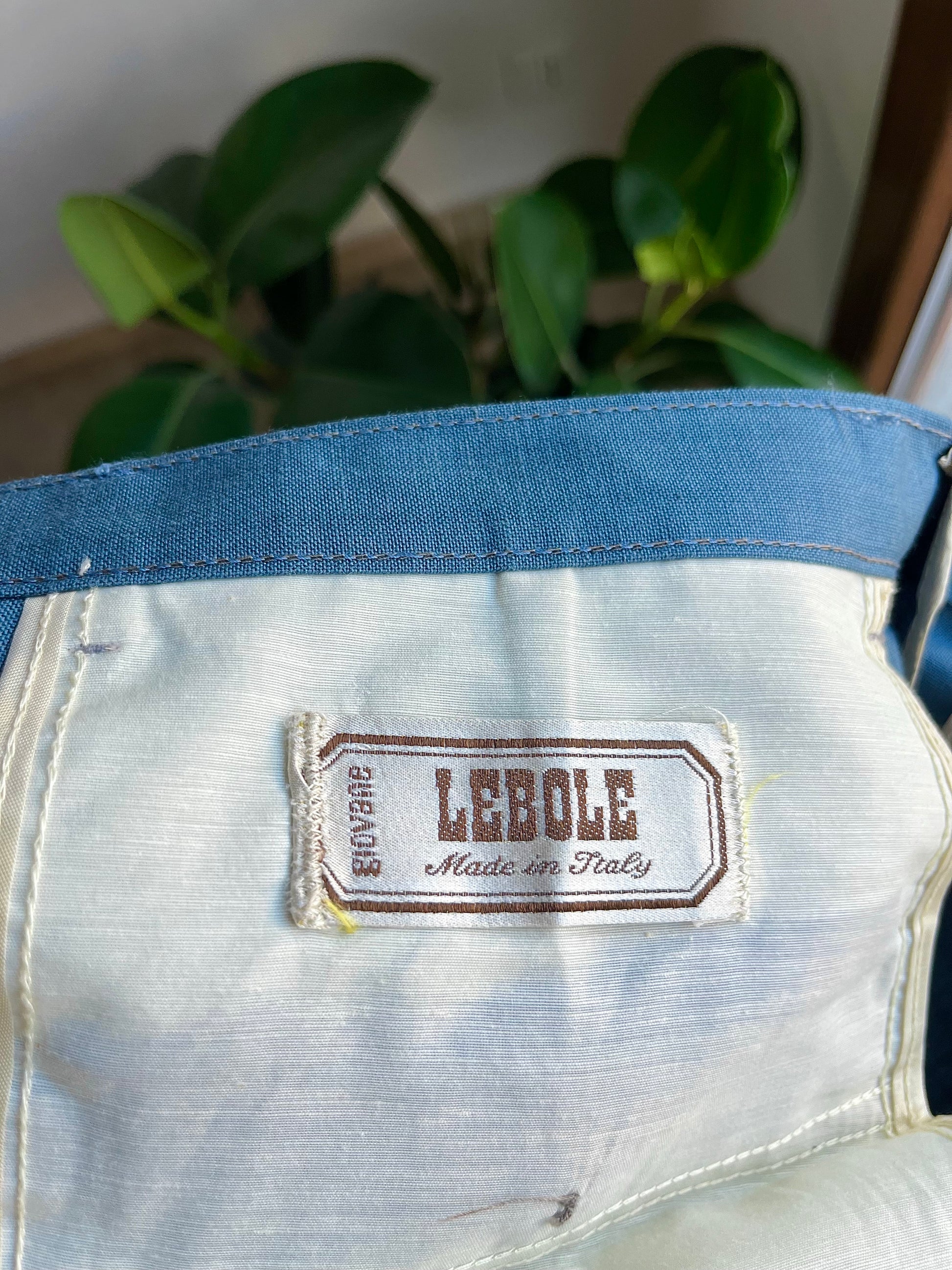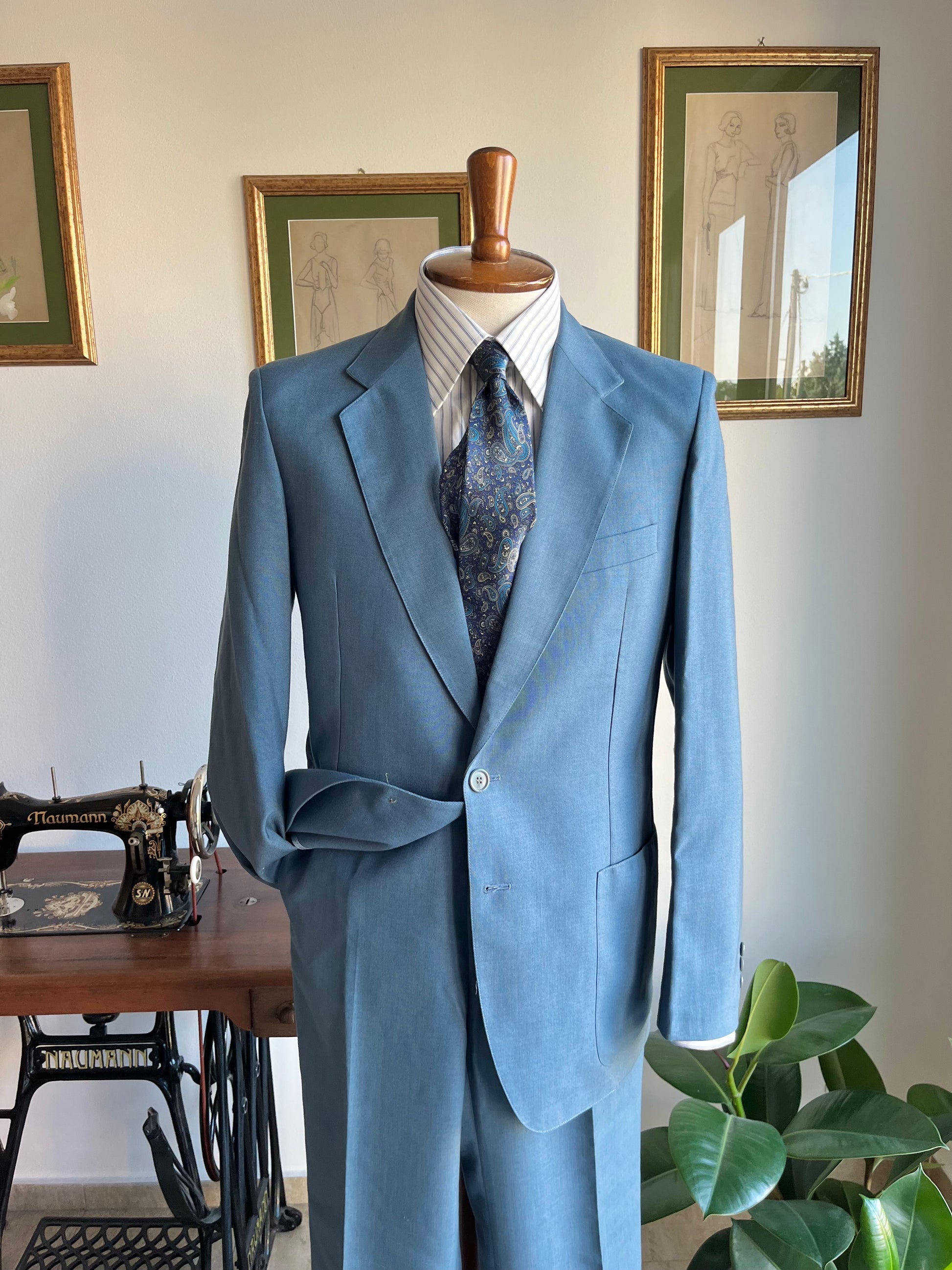 Completo Lebole primi anni ‘80 in puro lino, color azzurro vivace.