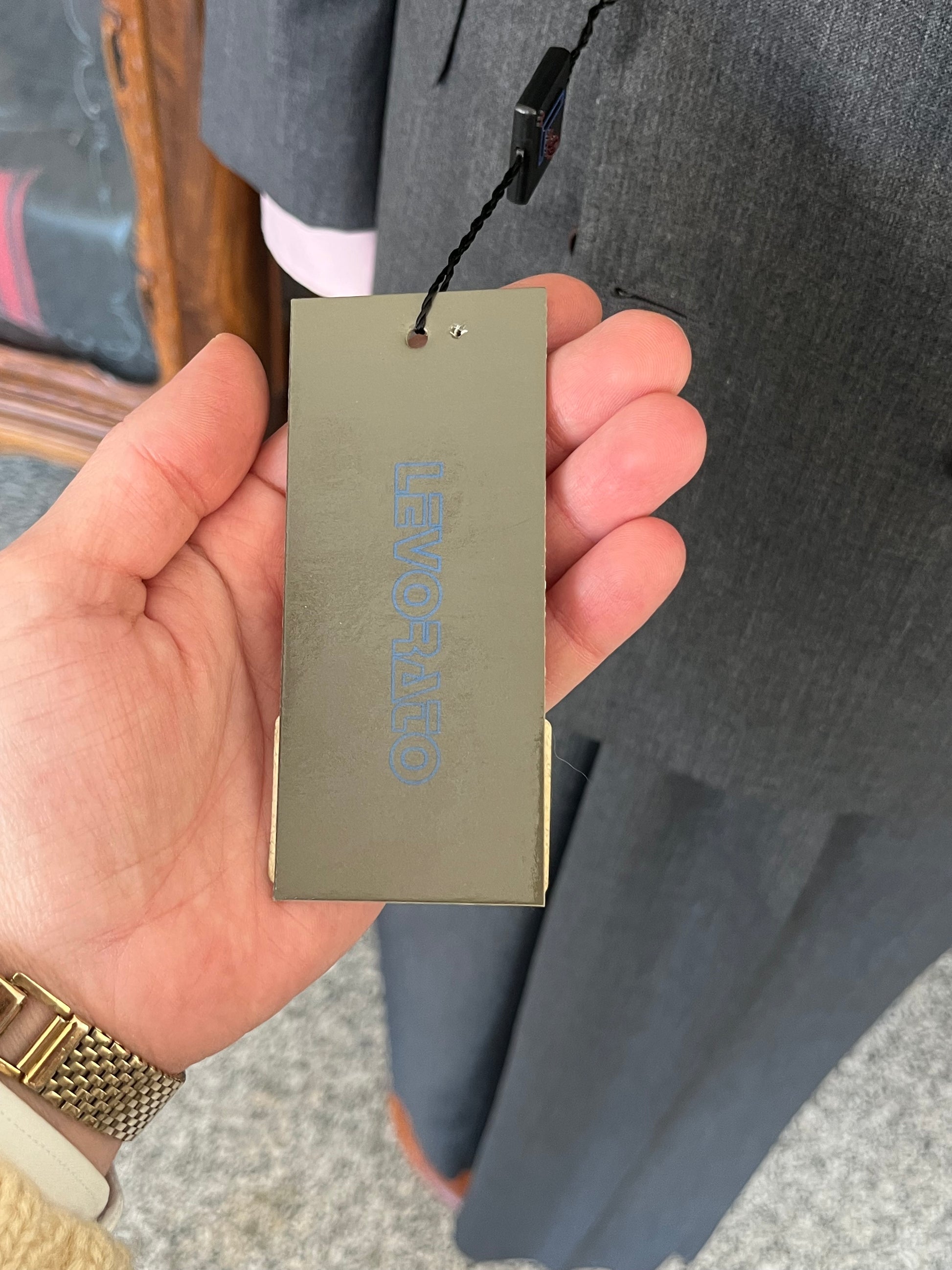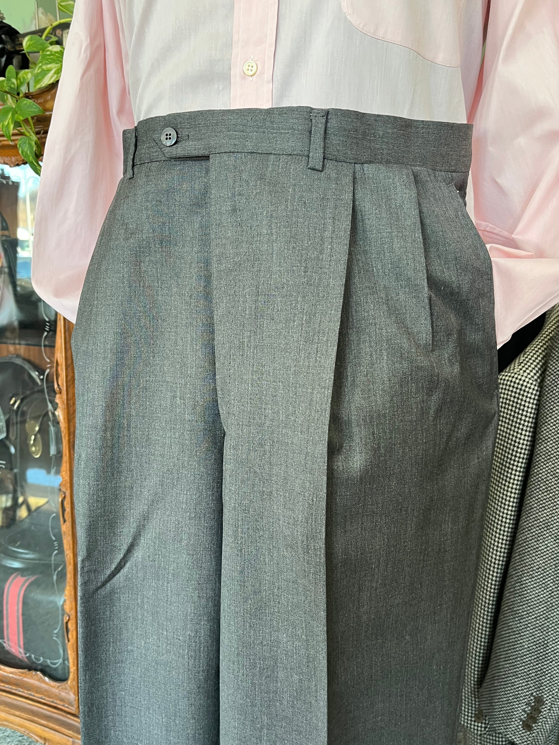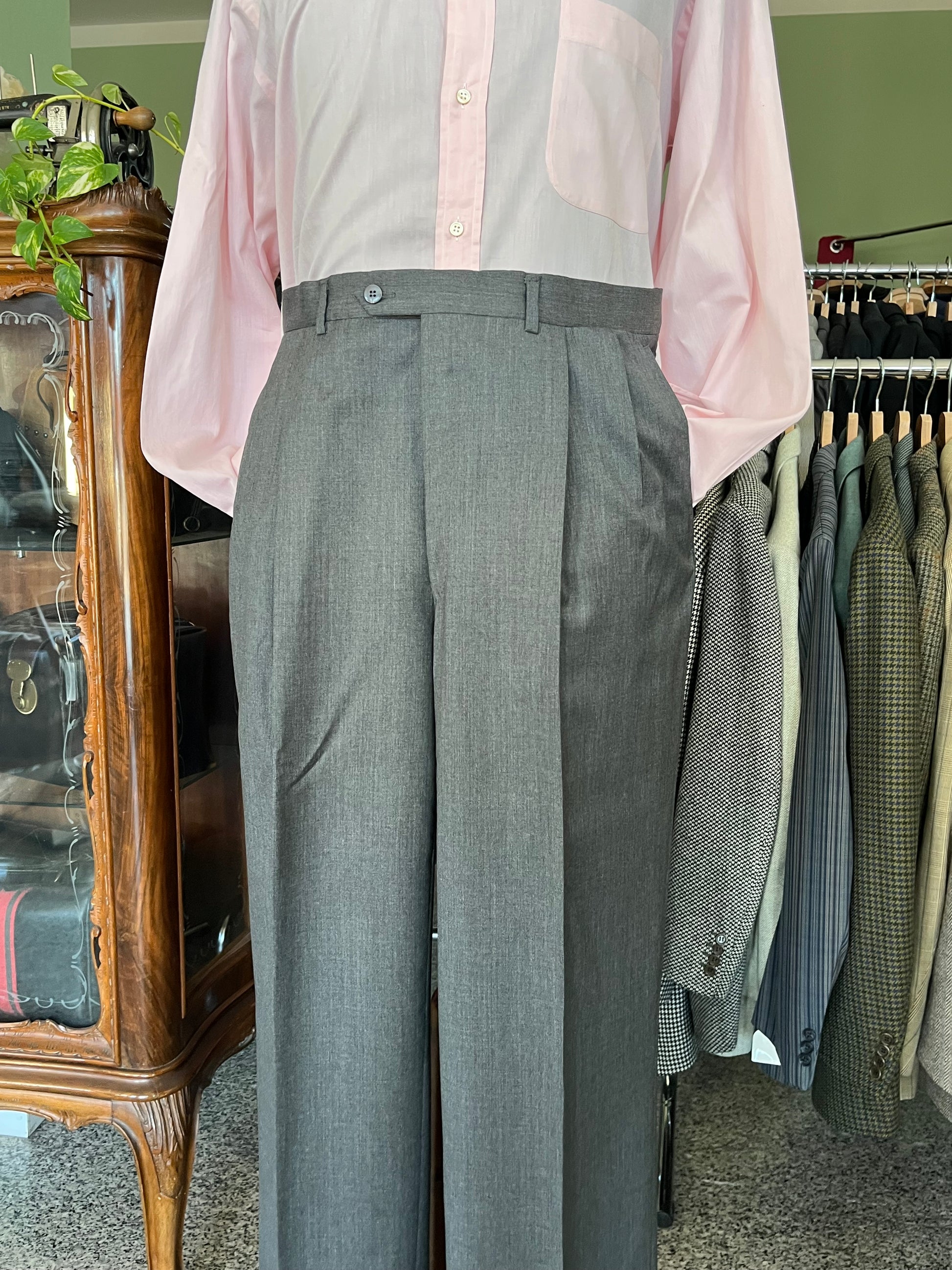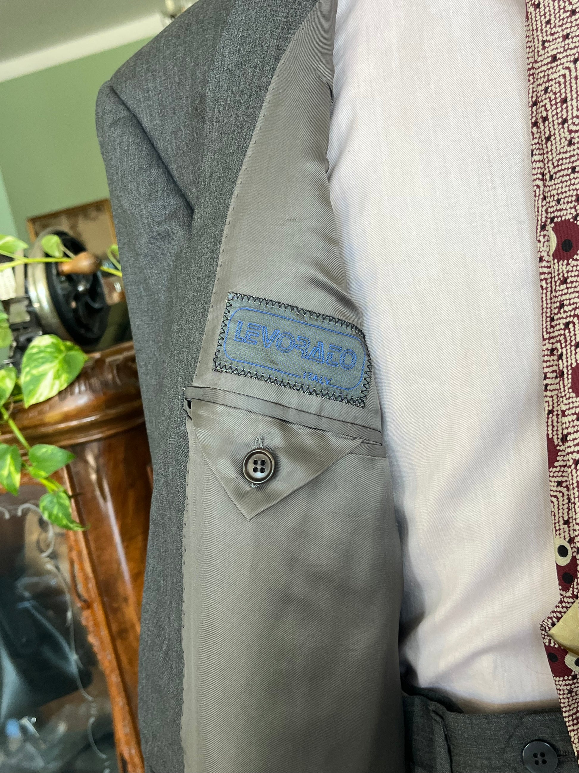 Completo doppiopetto anni ‘80, in pura lana vergine, color grigio medio.