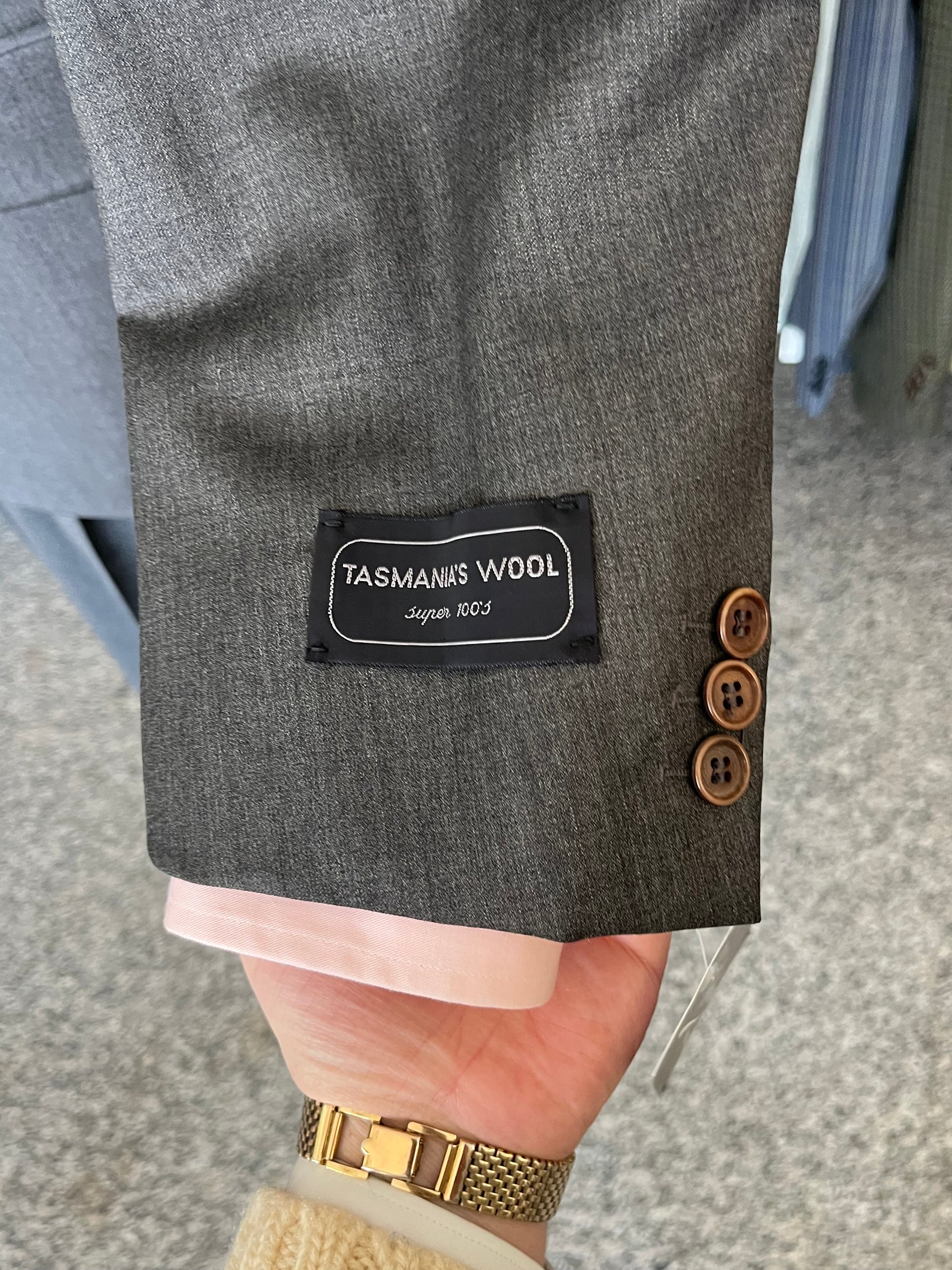 Il tessuto è 100% pura lana Tasmania Super 100’s.