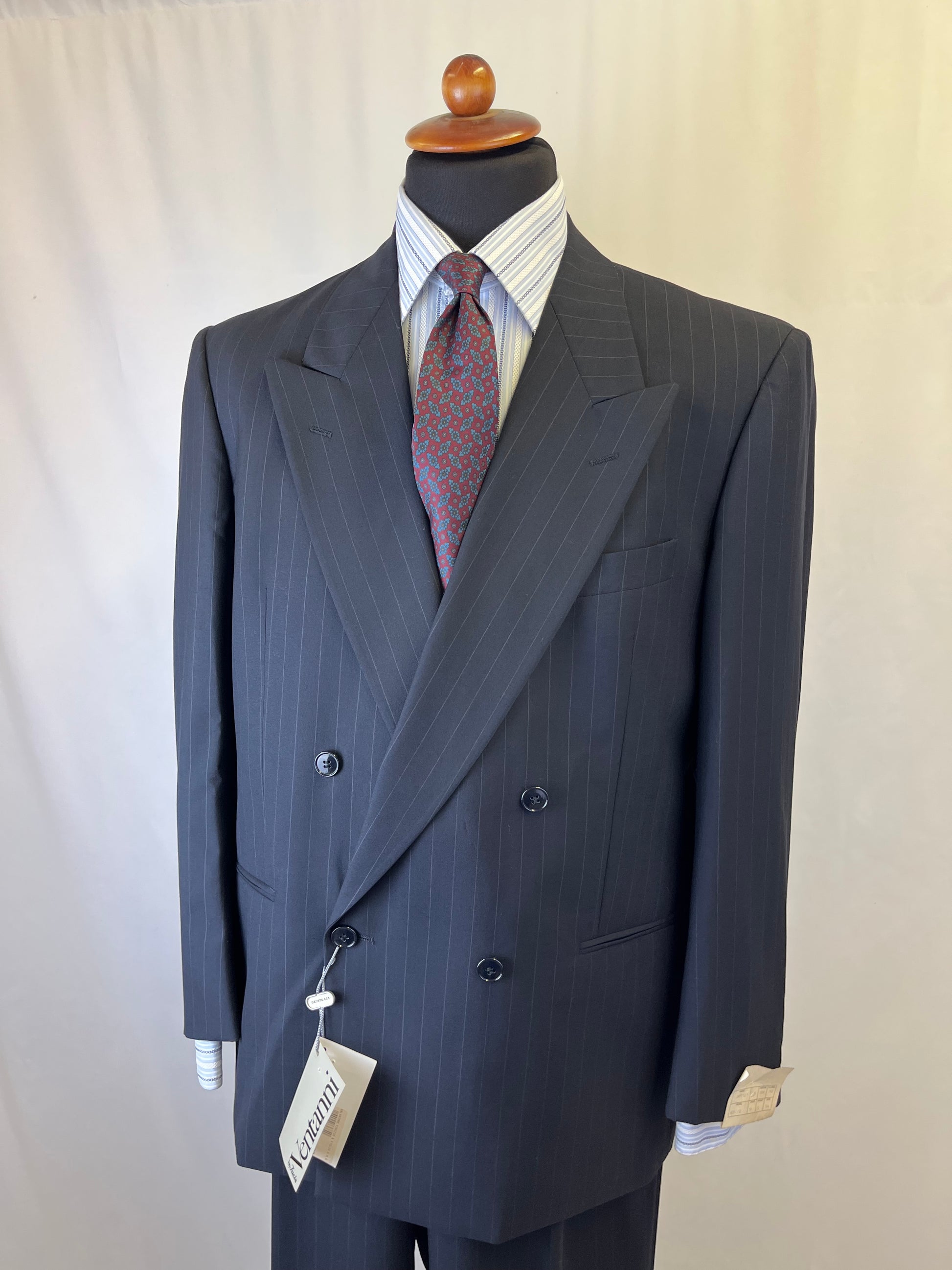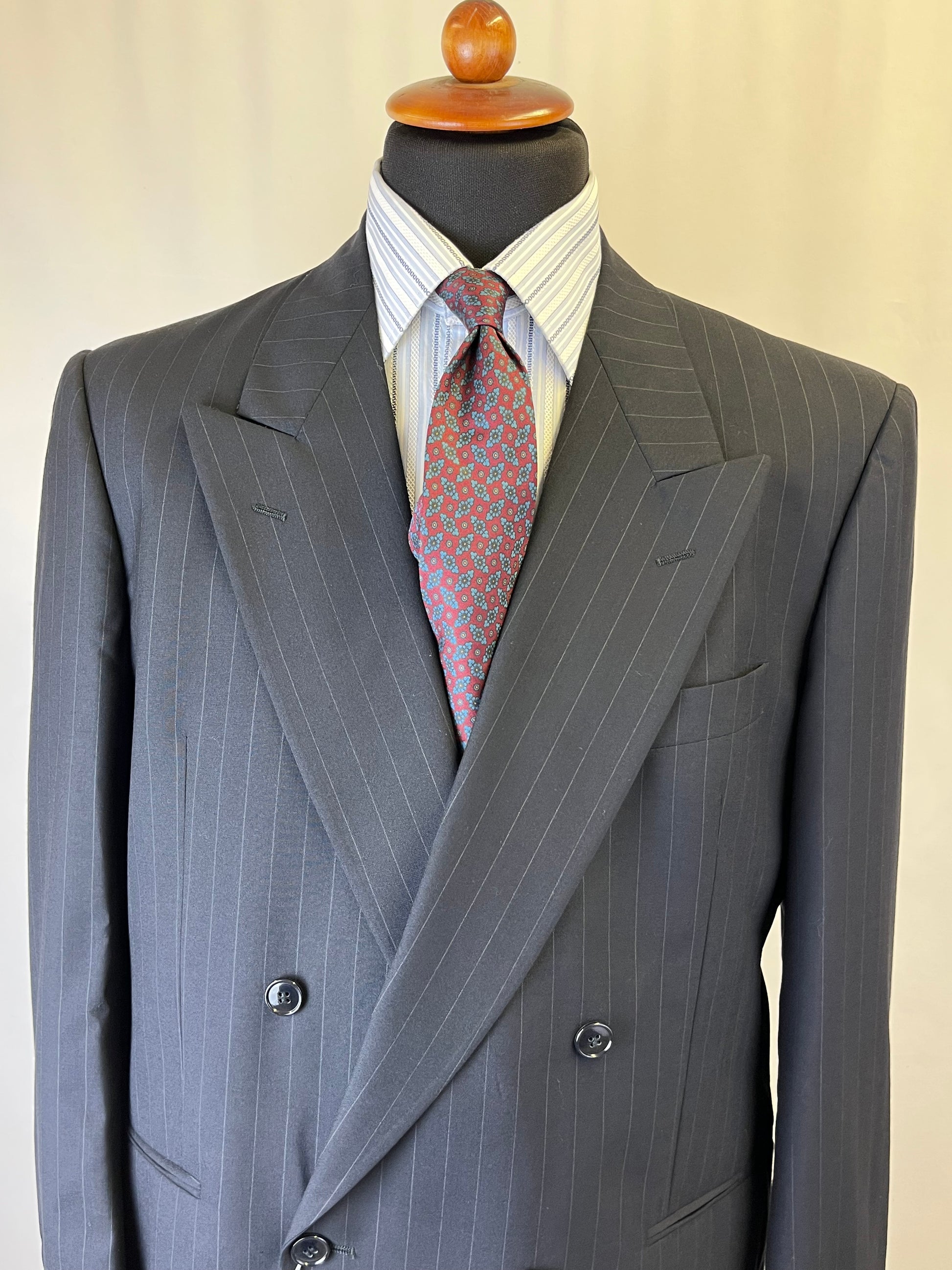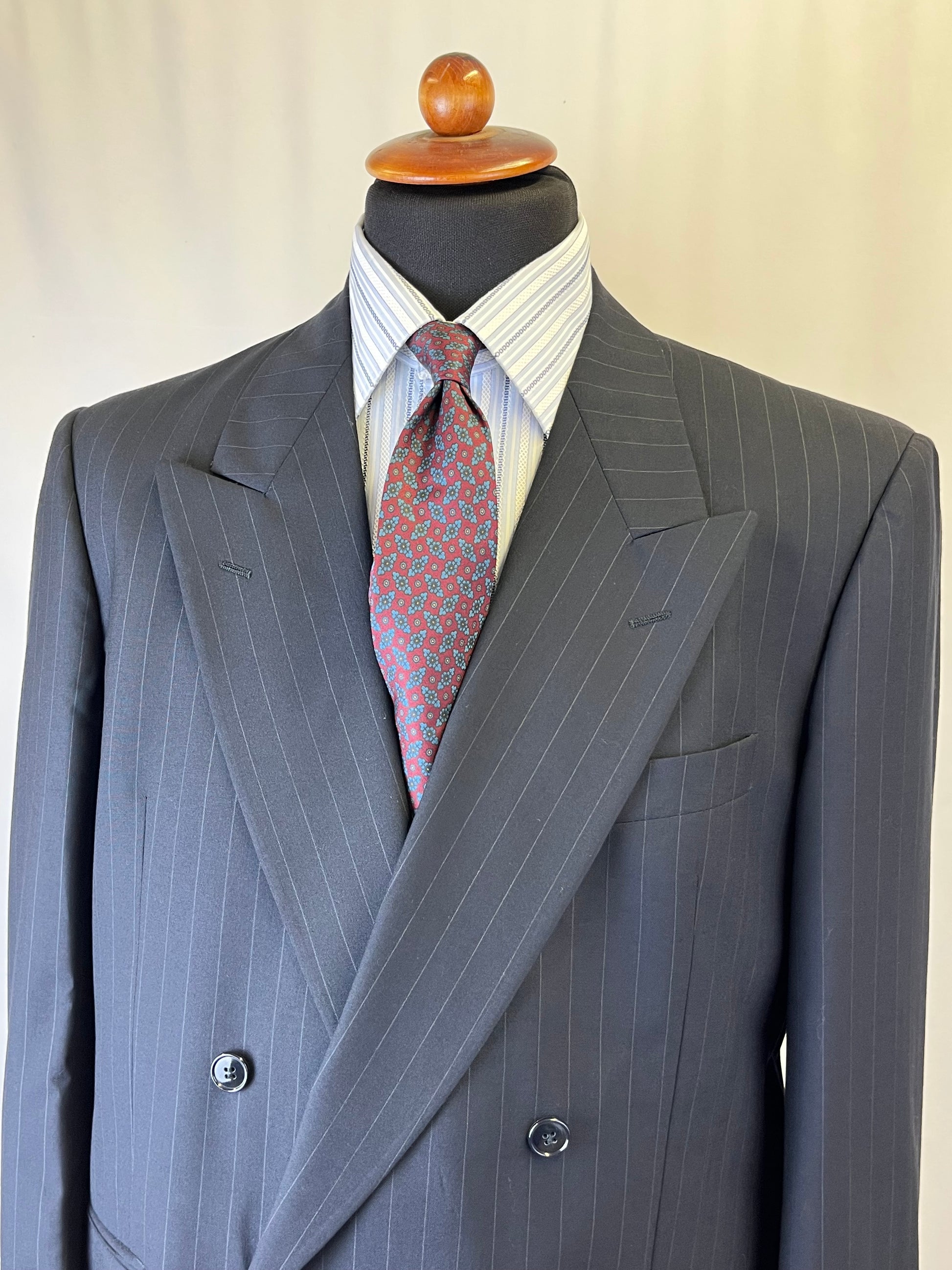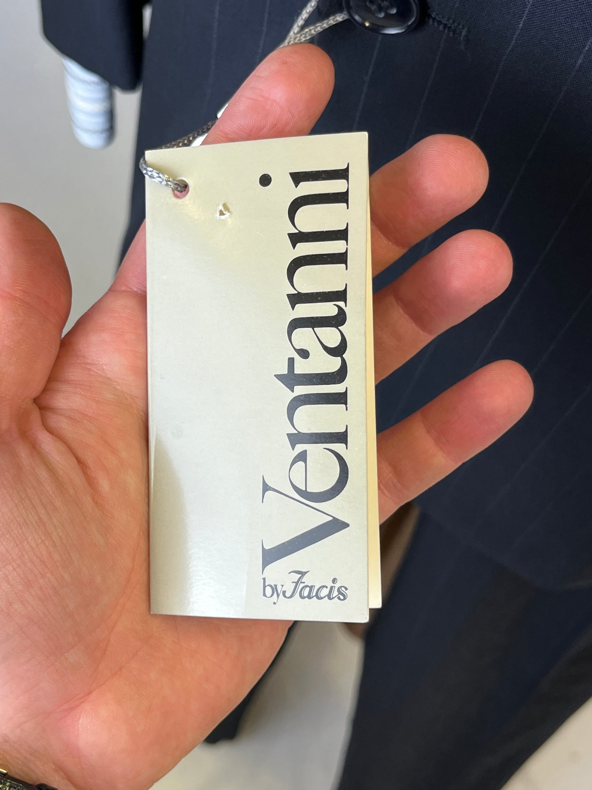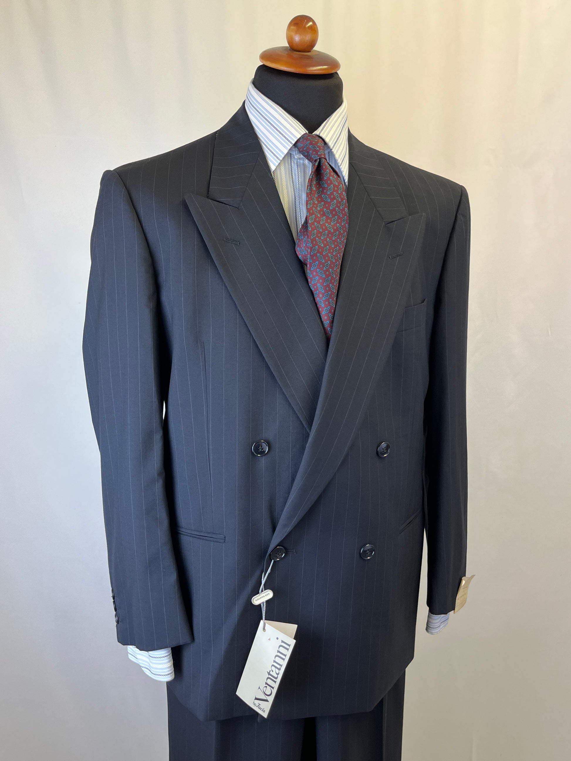 Completo anni ‘80 Facis, linea Ventanni, in pura lana vergine, blu notte gessato.