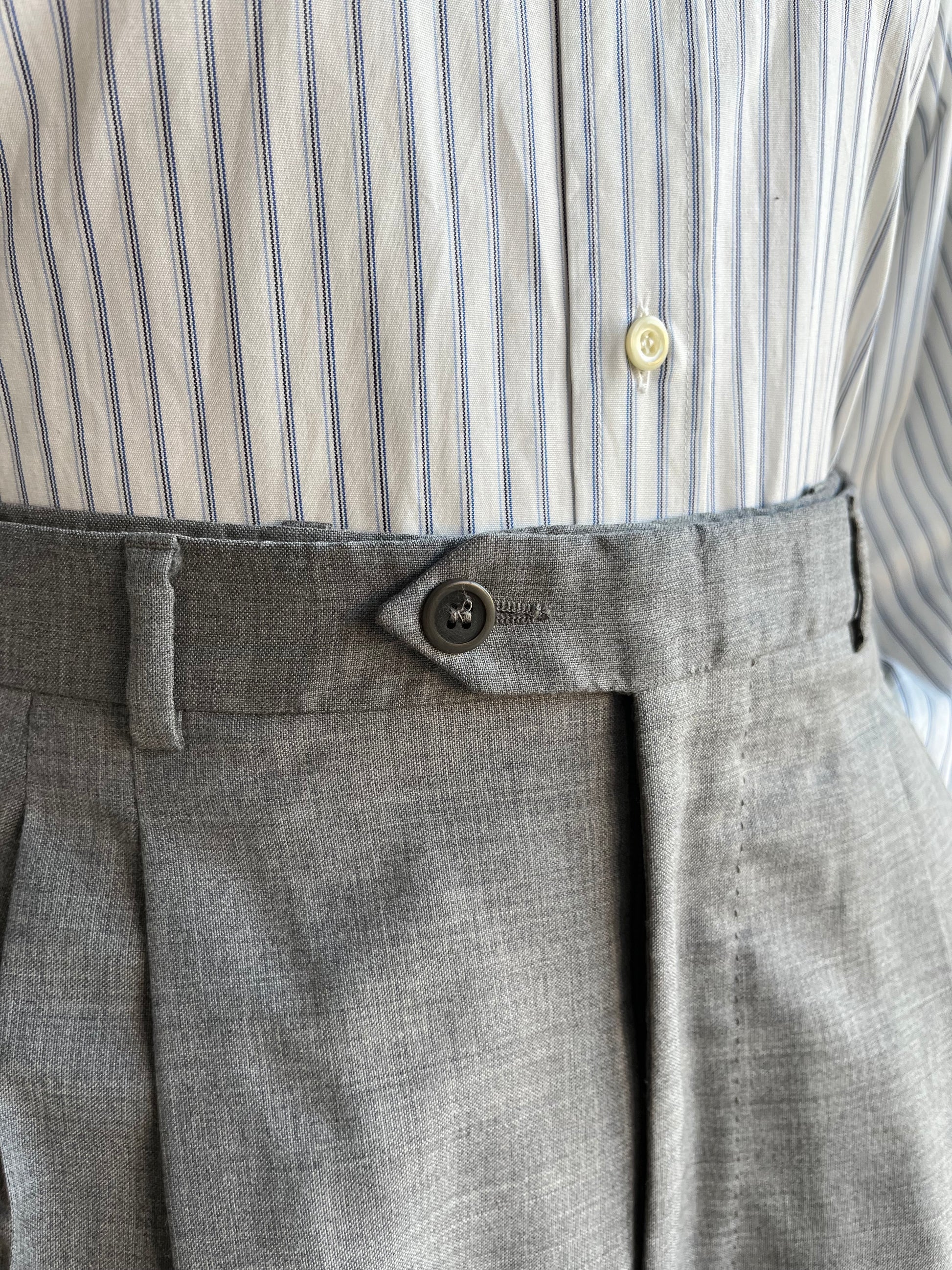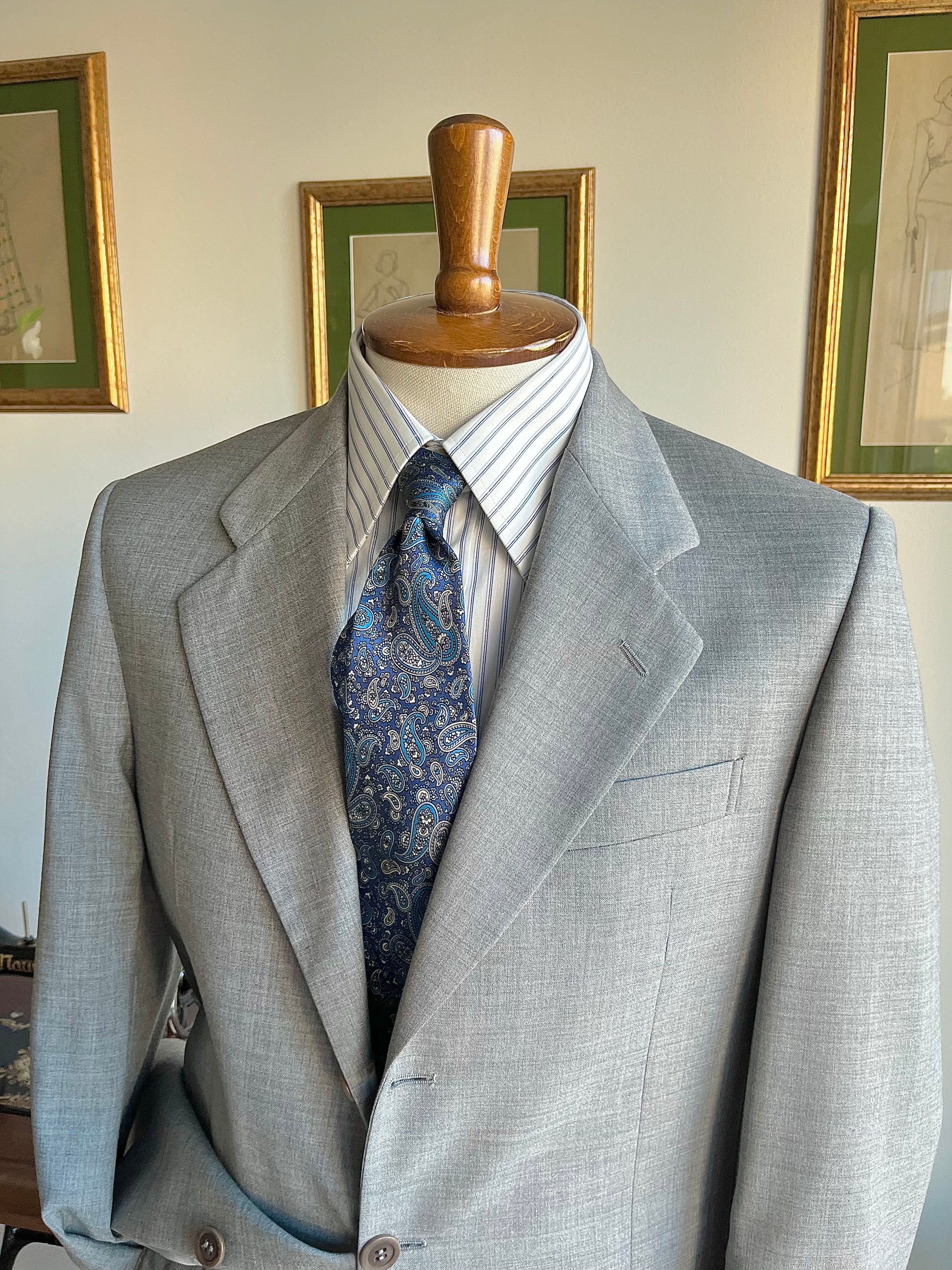 Completo anni ‘80 in puro fresco di lana, colore grigio chiaro.