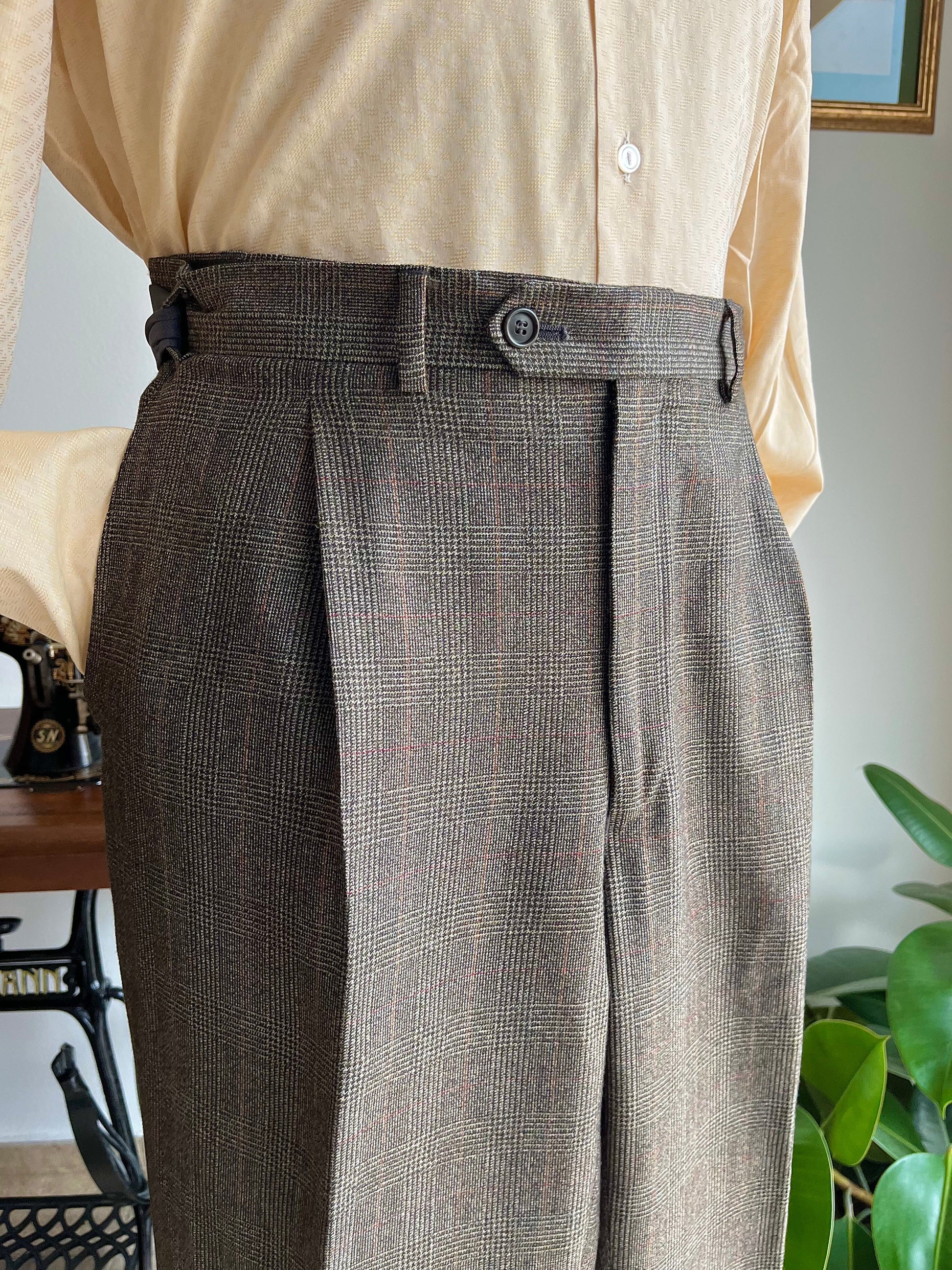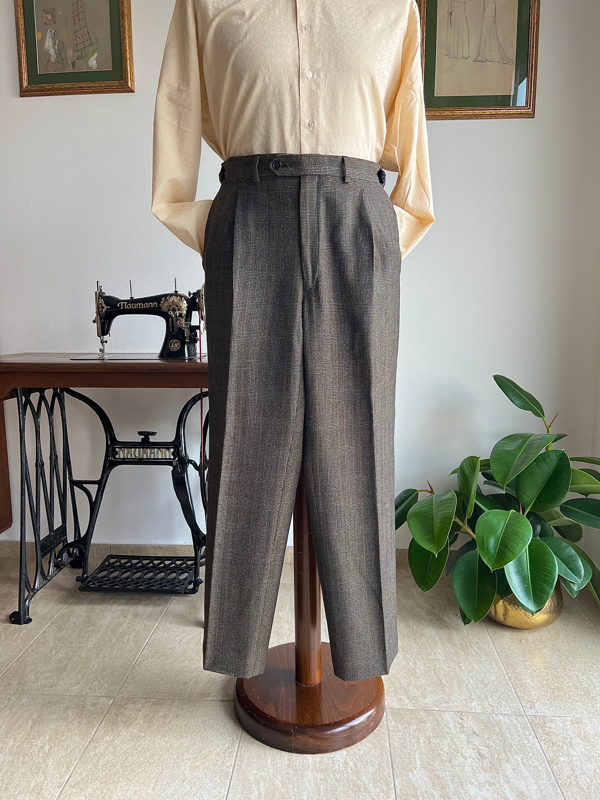 I calzoni hanno un taglio classico, con vita alta, doppia piega in vita ed un taglio dritto.