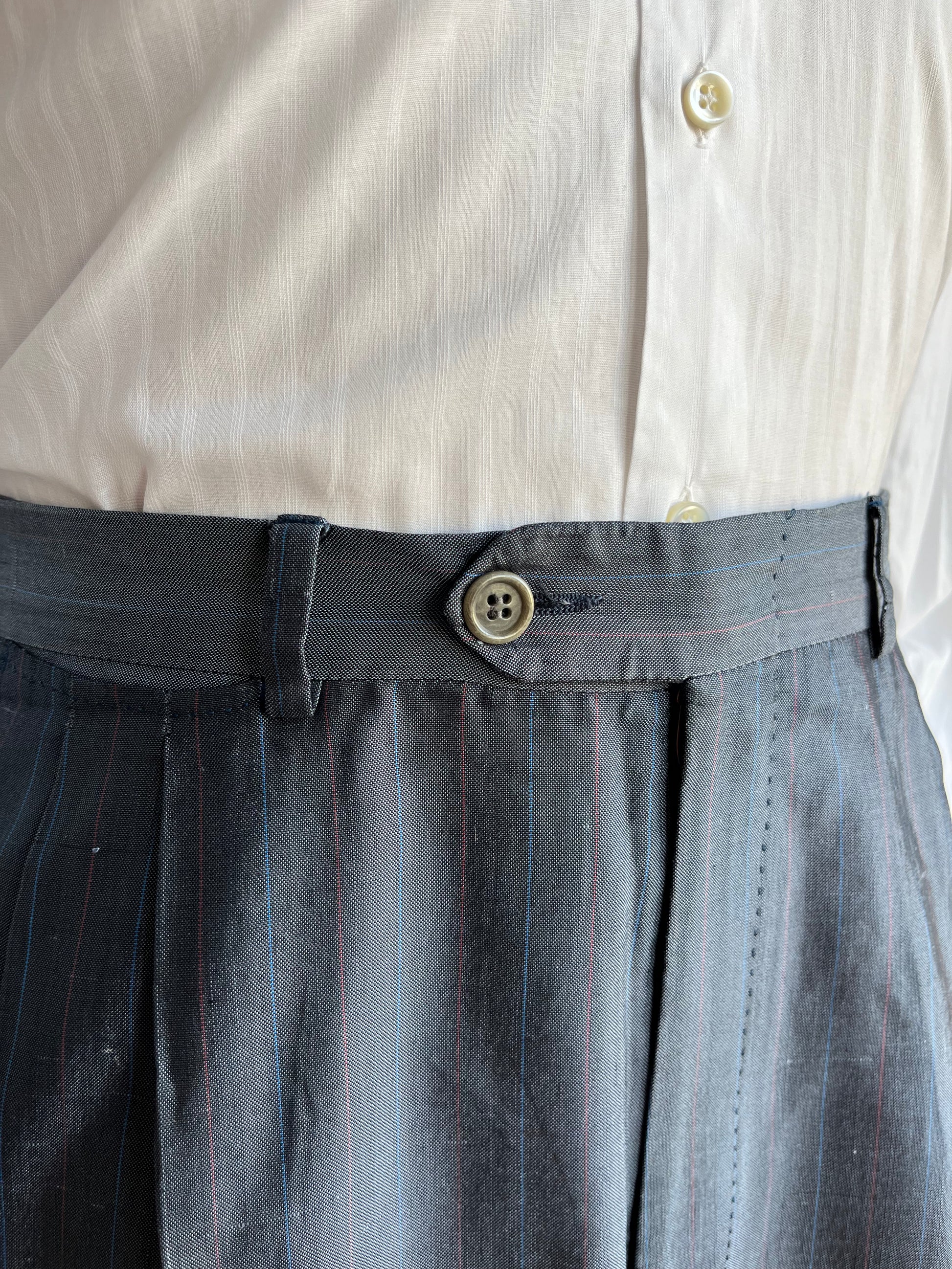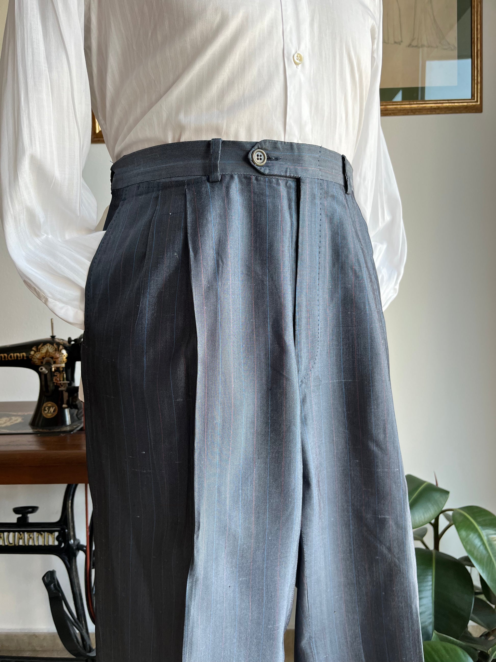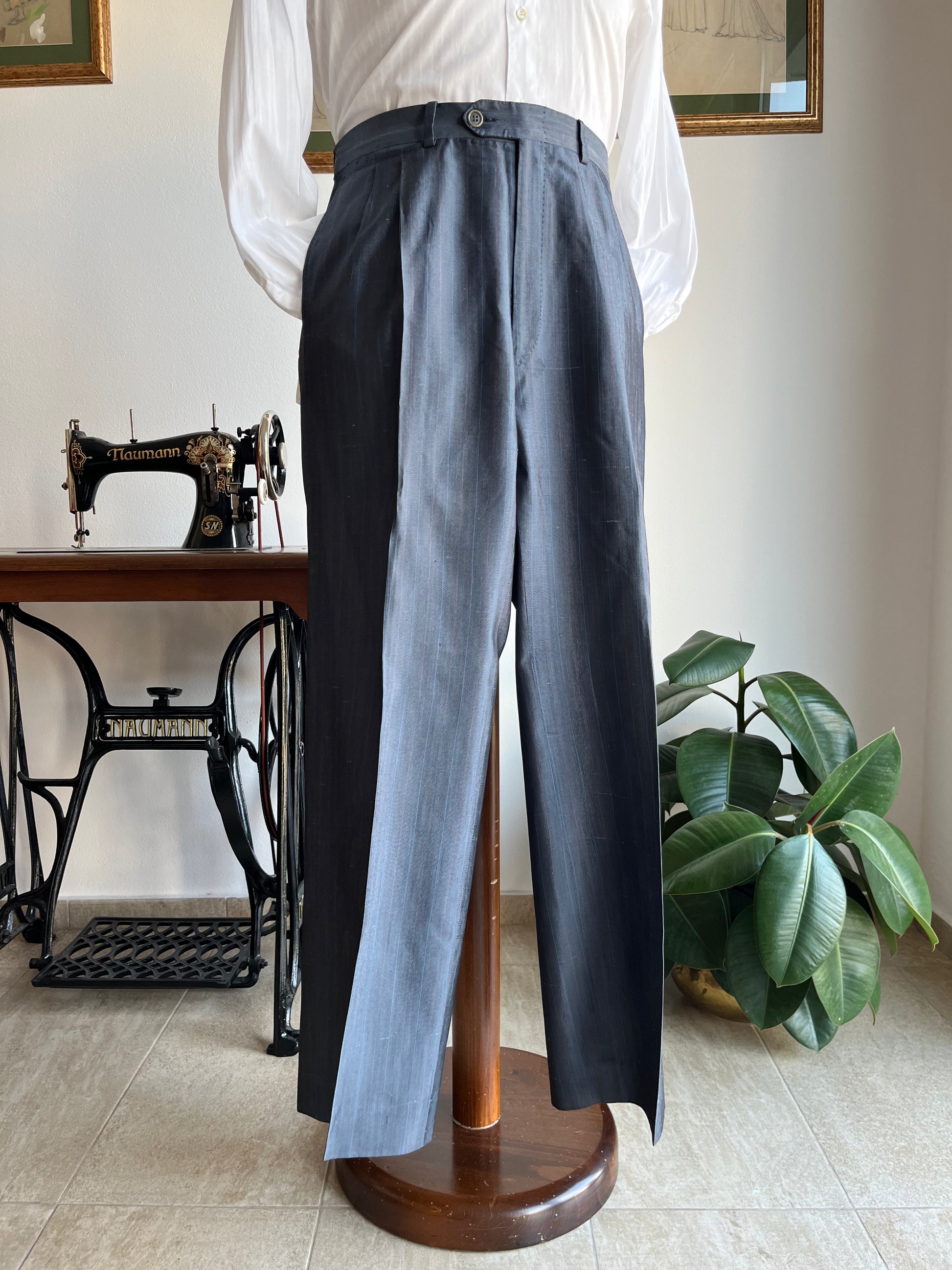 I calzoni hanno un taglio classico, con vita alta, doppia piega in vita ed un taglio dritto.
