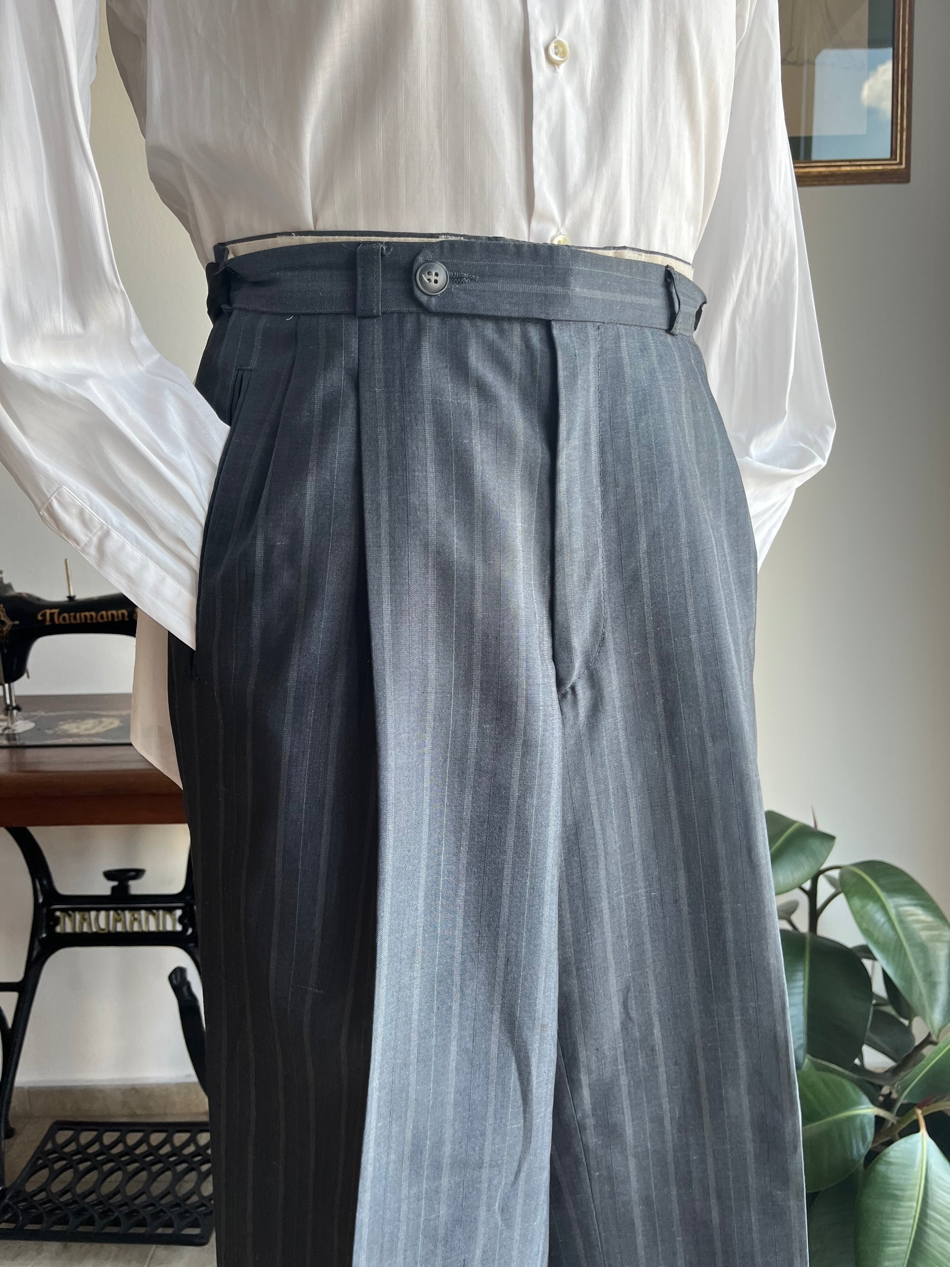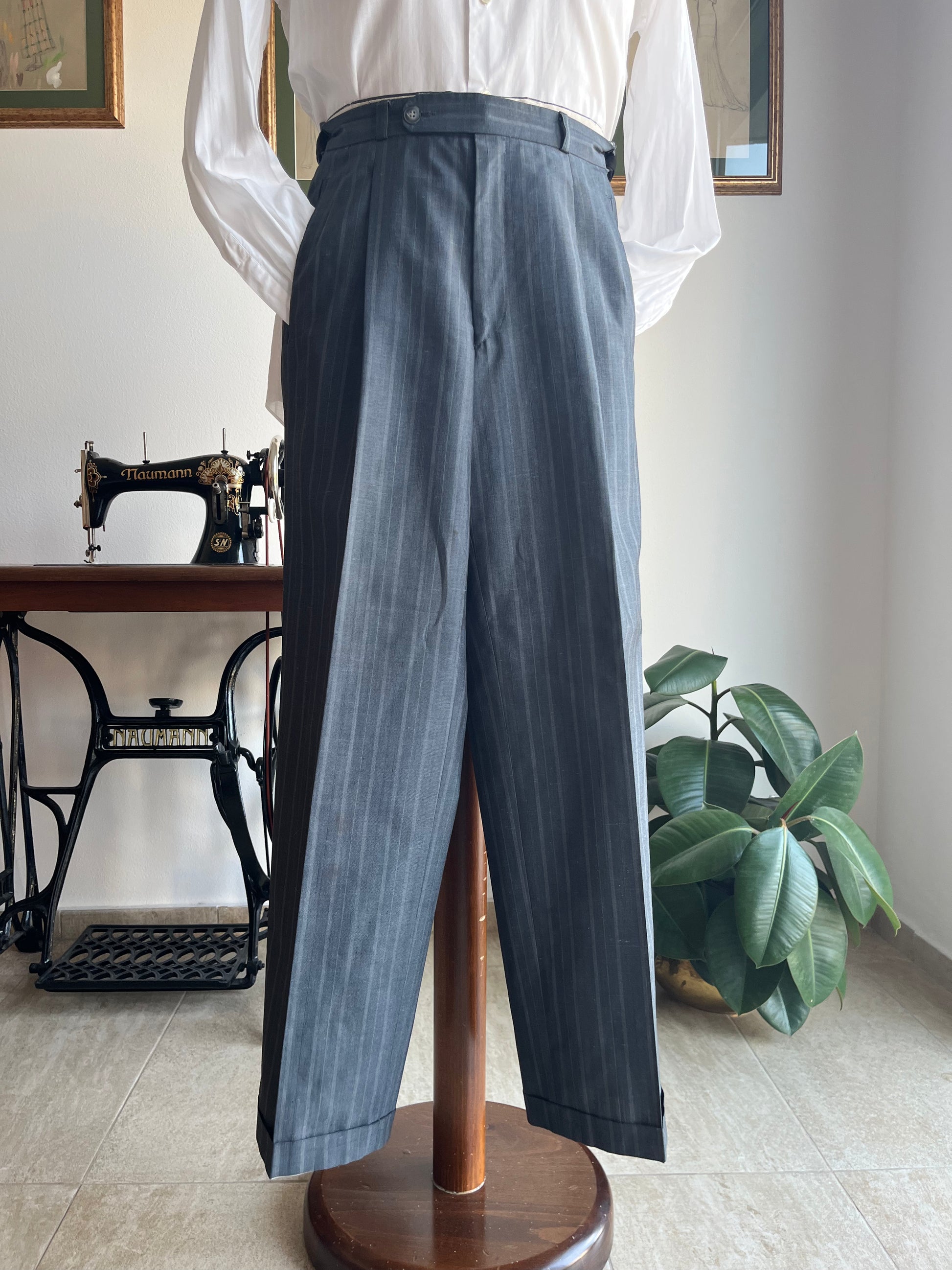 I calzoni hanno un taglio classico, con vita alta, doppia piega in vita ed un taglio dritto.