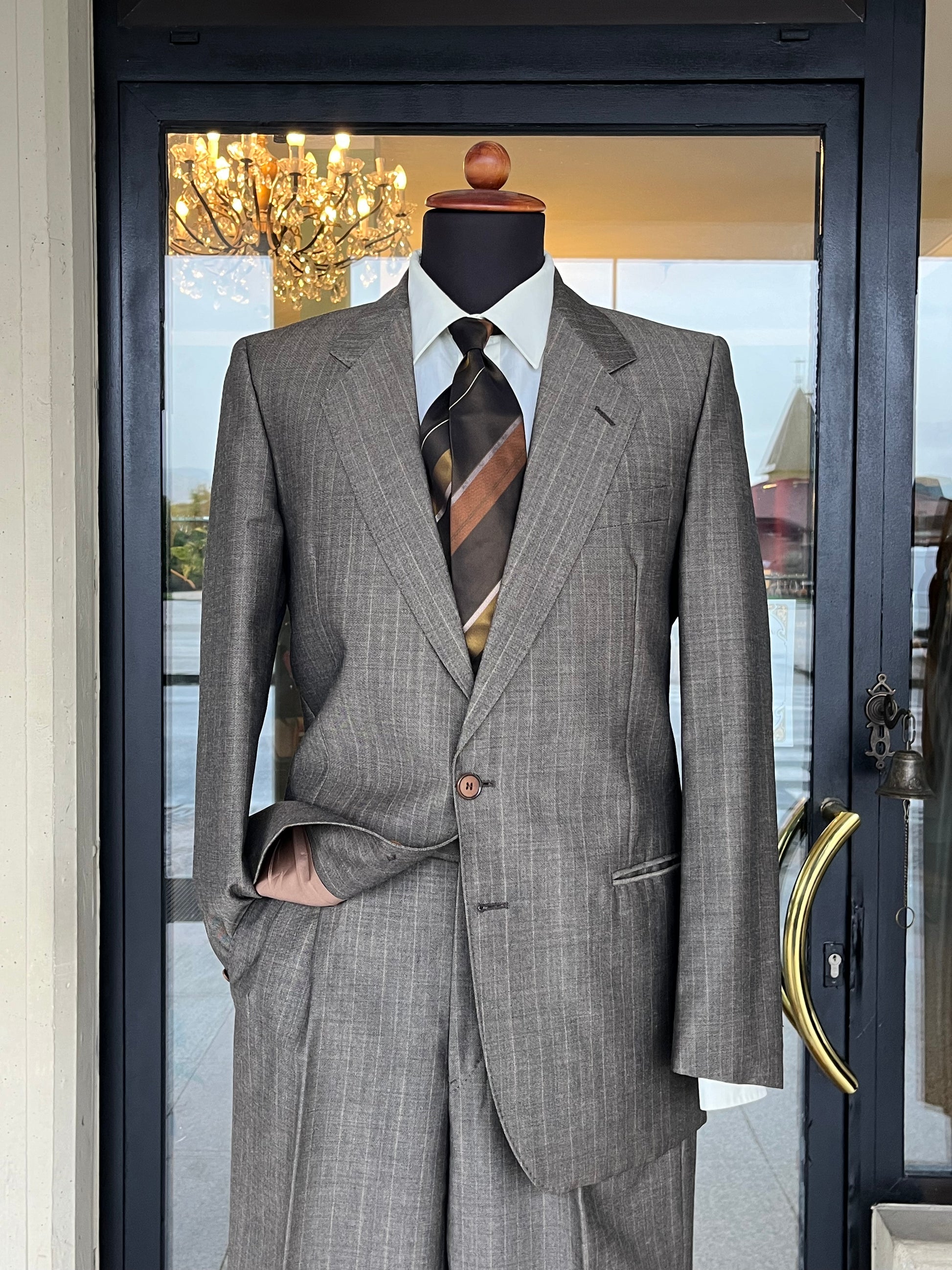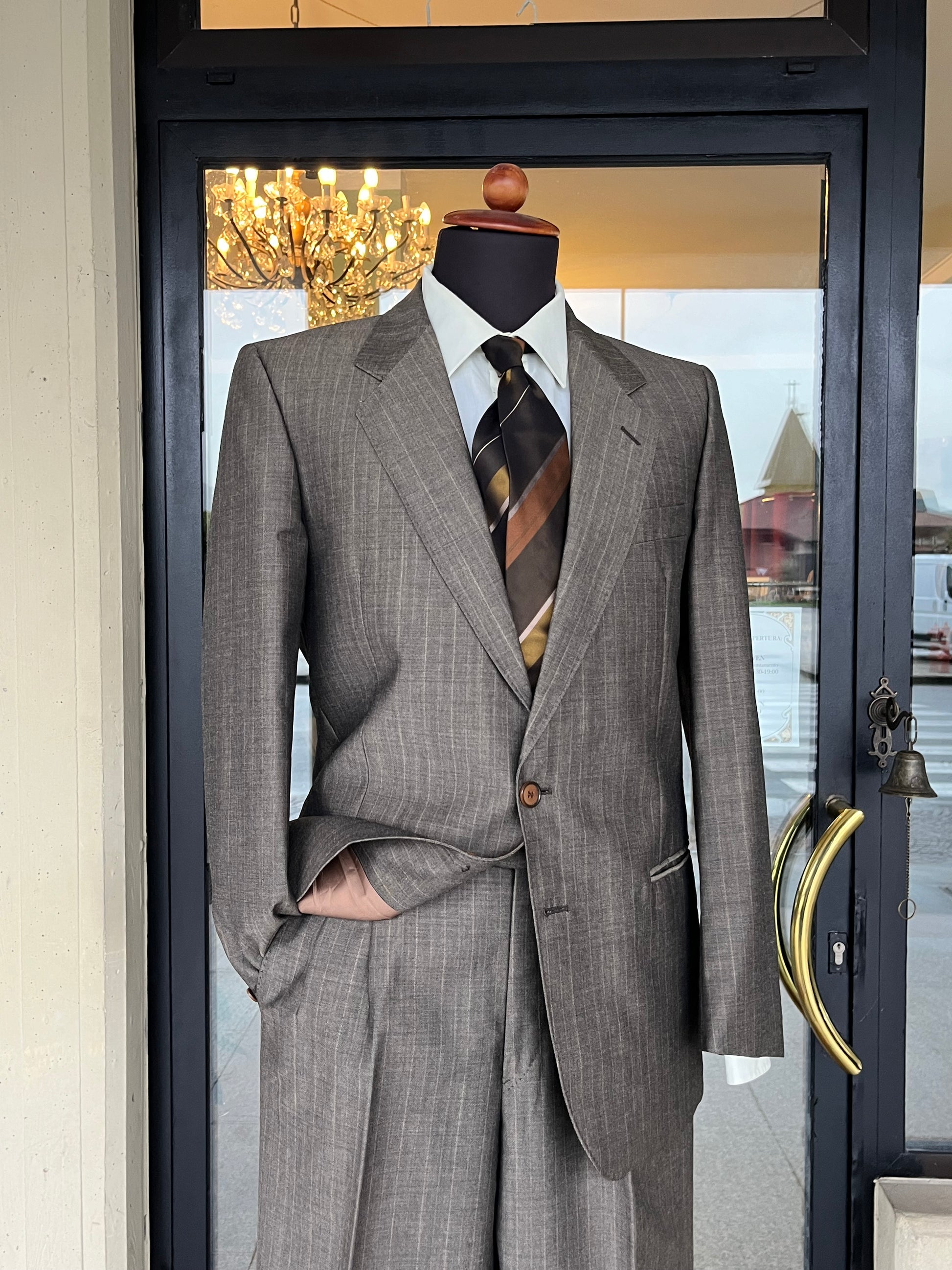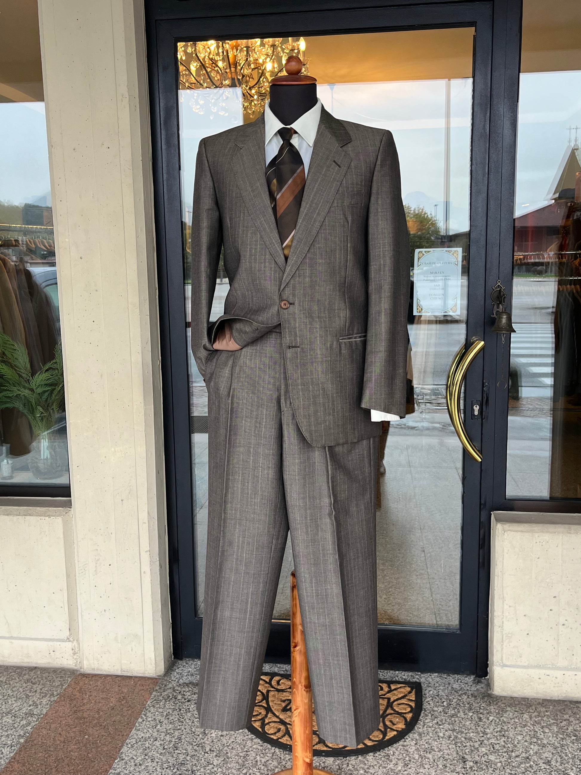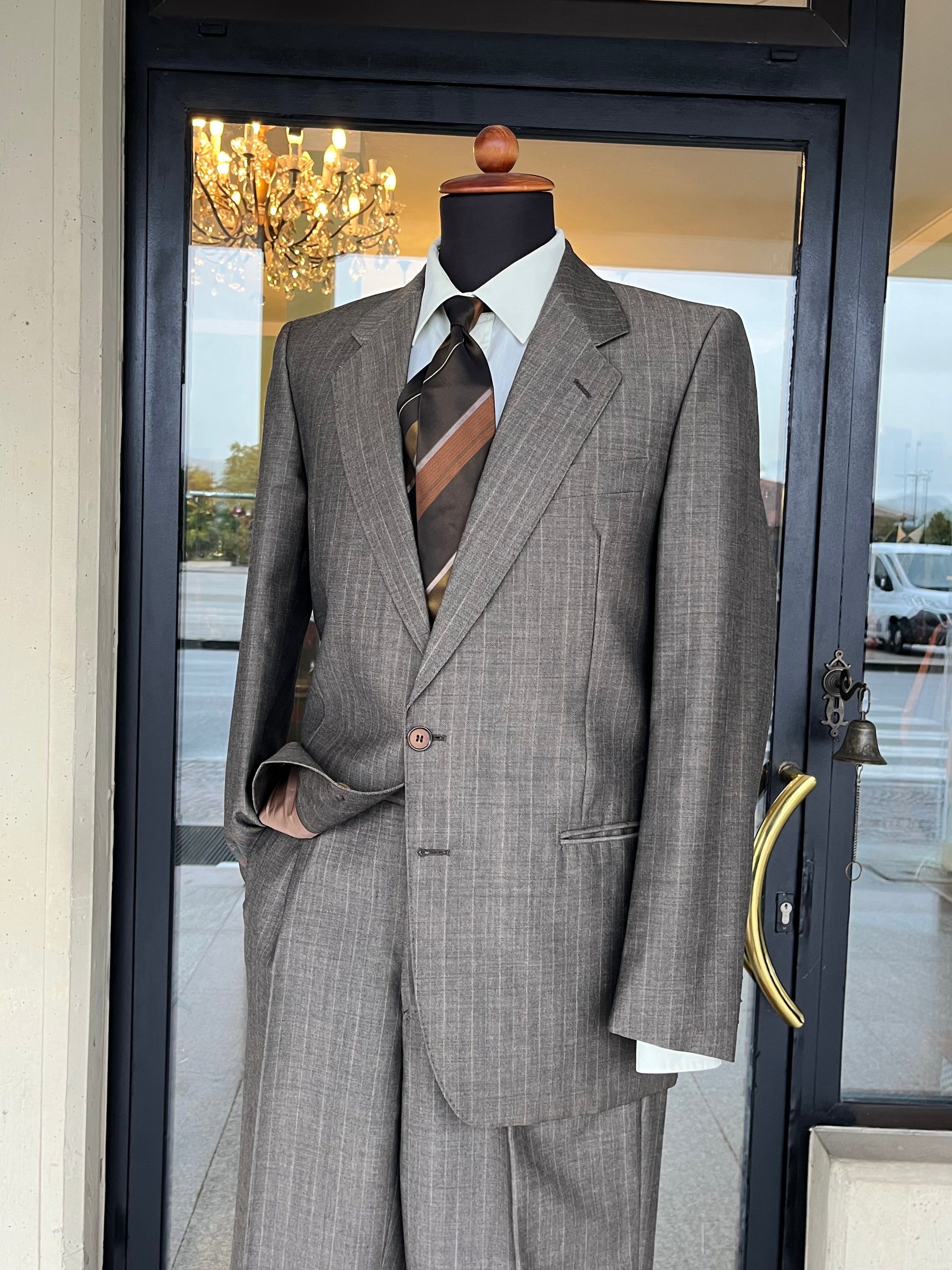 Completo primo anni ‘80 in 100% pura lana, color tortora gessato.